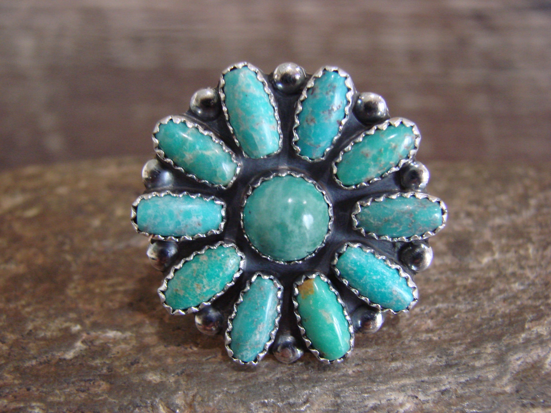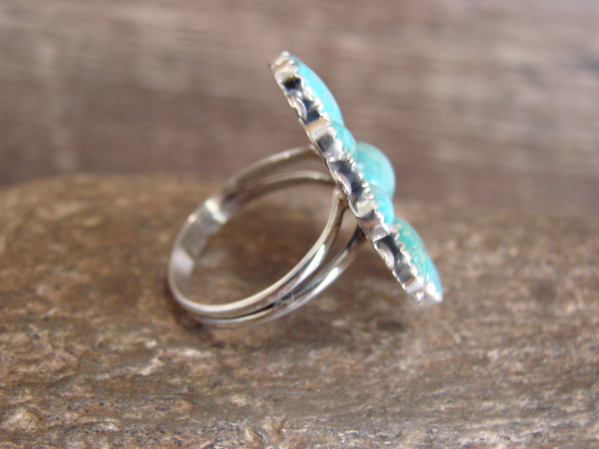Native American Sterling Silver Turquoise Cluster Ring - Perry - Size 9.5