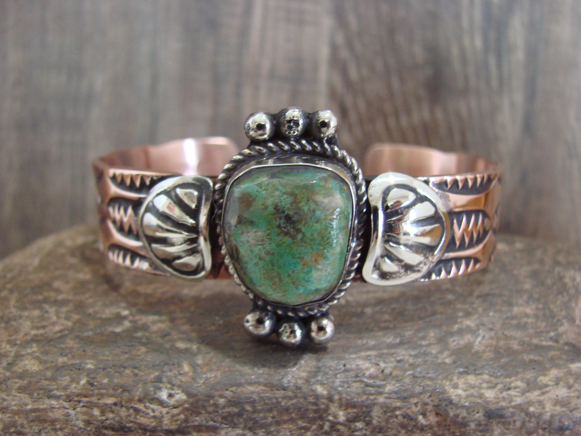 Native American Copper & Turquoise Bracelet by Cleveland
