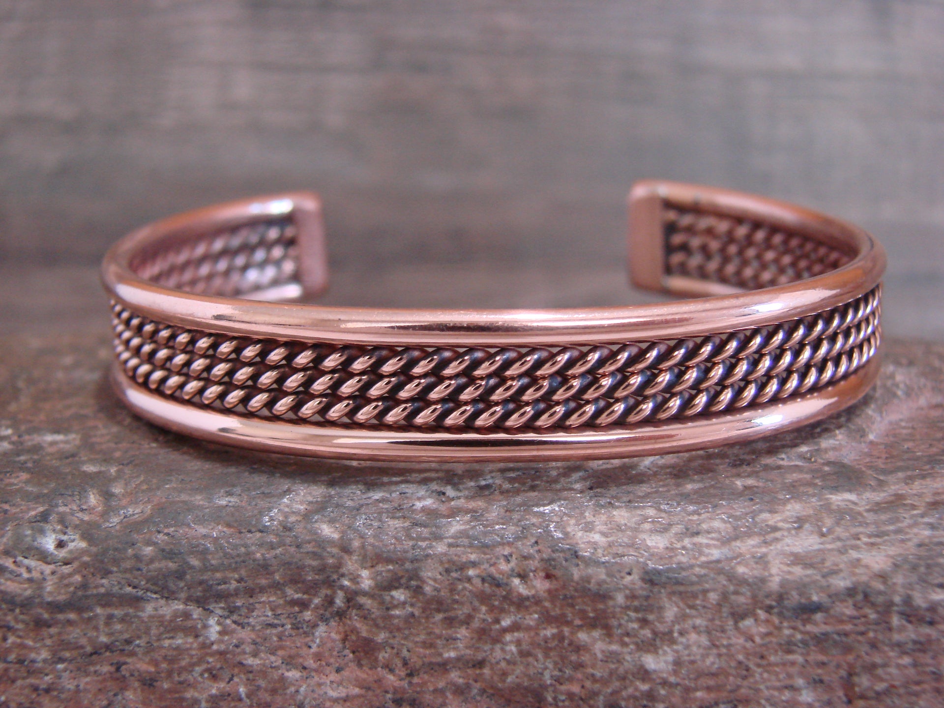 Native American Navajo Indian Copper Cuff Bracelet from Western New Mexico. This Stunning bracelet features Smooth Twisted Copper throughout. Nicely polished, this bracelet has a great look! Navajo Indian handmade by Elaine Tahe. Unsigned. Free gift box and shipping included!