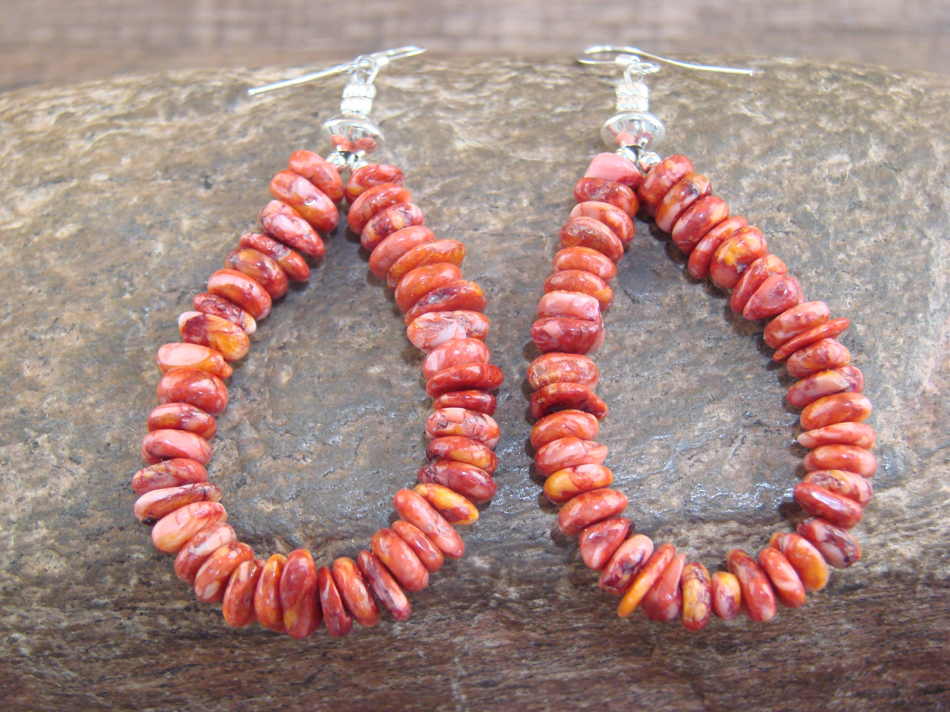 Genuine Native American Navajo Indian Hand Strung Coral Stone Dangle Earrings from Western New Mexico. These earrings feature beautiful hand strung genuine Coral stones throughout. The hand strung Turquoise stones have a great look! Navajo Indian Hand Strung by Louise Joe. Unsigned. Free Shipping and Gift box included!