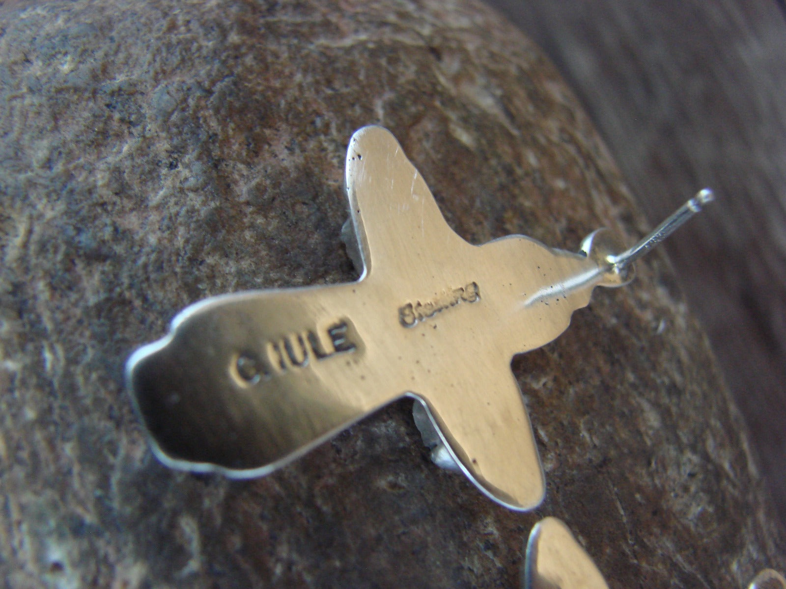 Native American Zuni Indian Silver & Turquoise Cross Post Earrings from Western New Mexico. These post Cross Earrings feature 5 beautiful genuine Turquoise stones each set into sterling silver bezel settings. This Cross design features stunning traditional hand stamping throughout. Hand made by Zuni Silversmith C. Iule. Stamped "C. Iule" and "Sterling" on the back. Free Shipping with a gift box included!