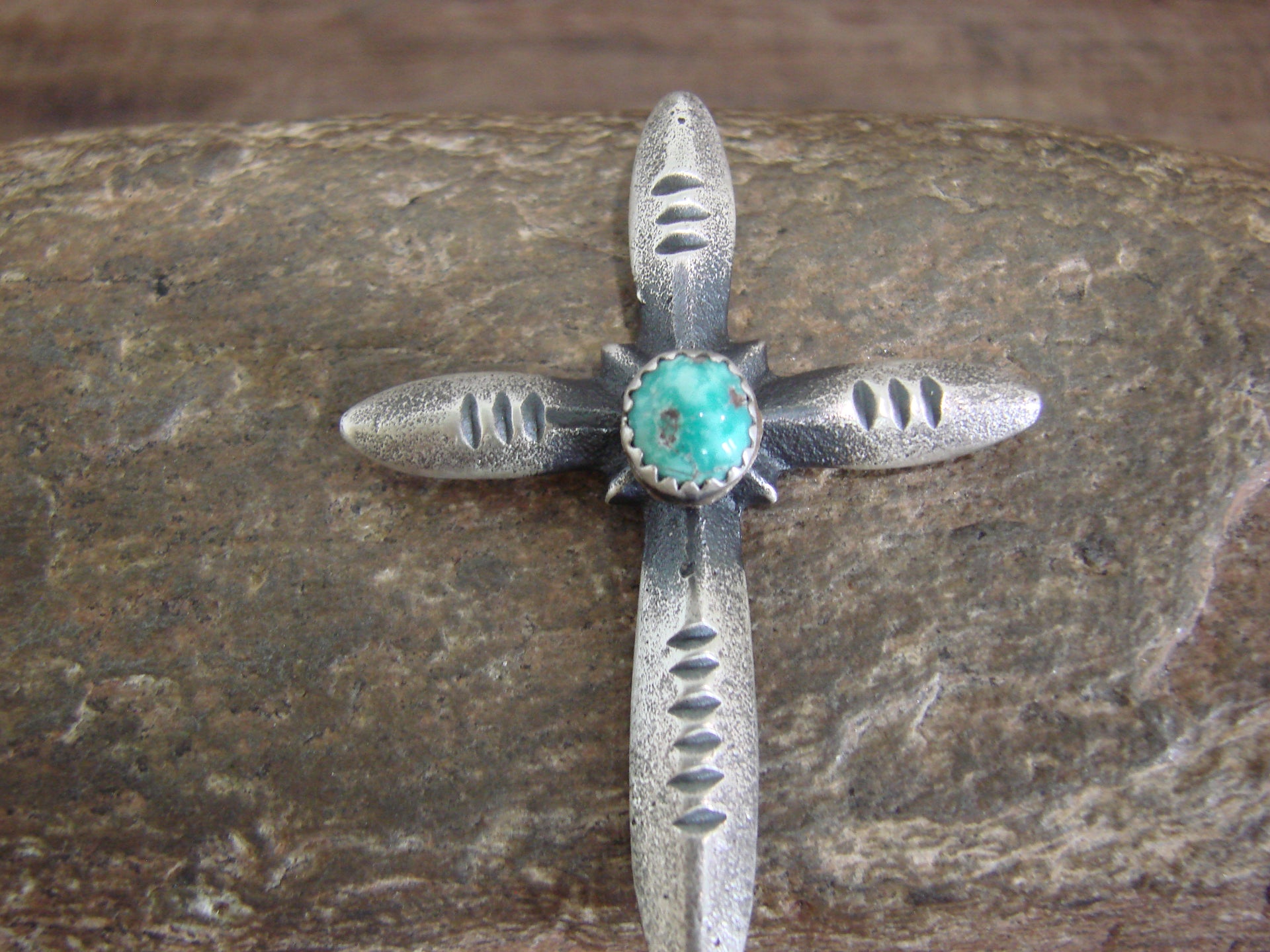 Native American Sterling Silver & Turquoise Cross Pendant Signed Cayatineto