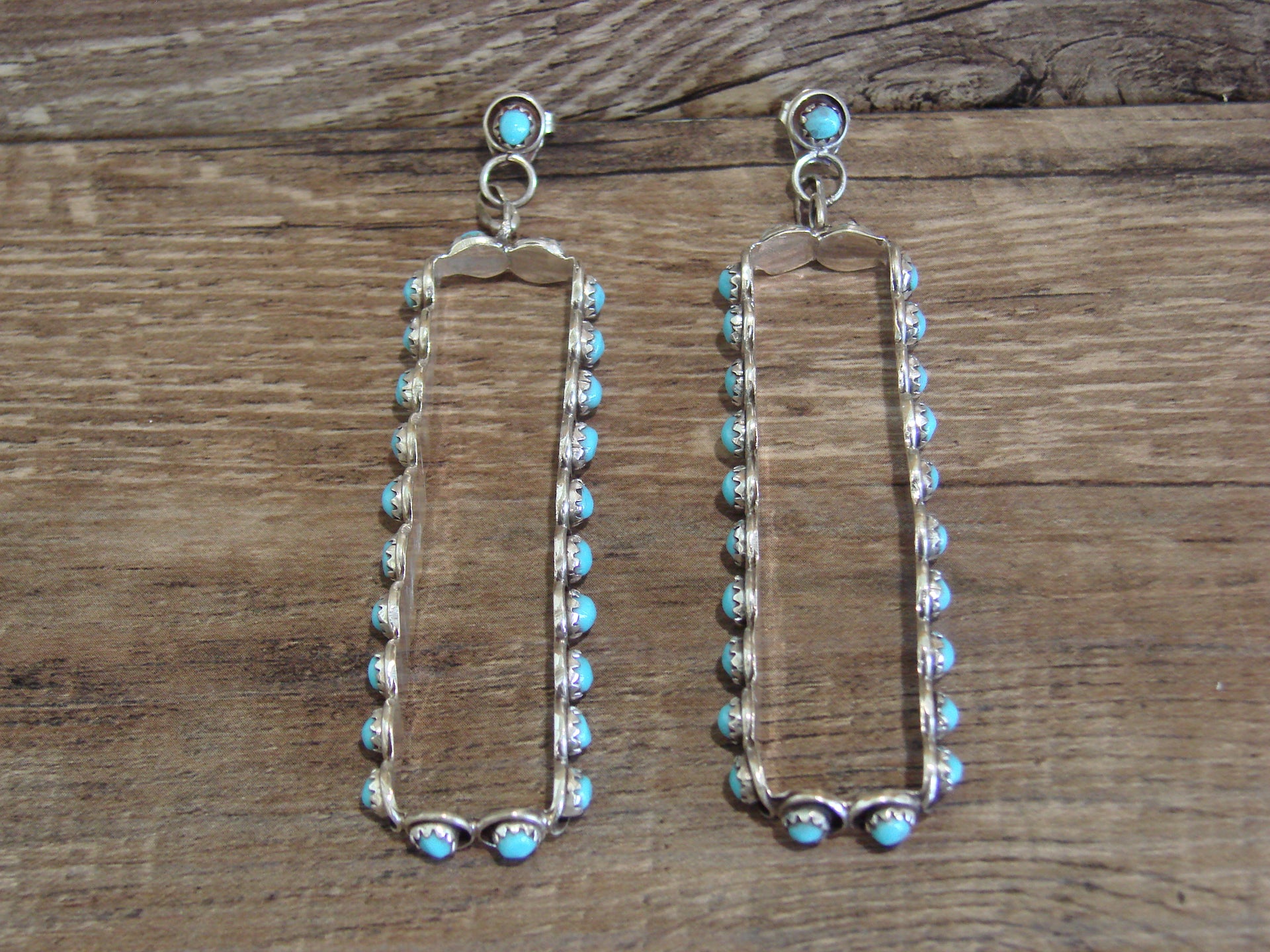 - Large Zuni Indian Sterling Silver & Turquoise Post Earrings - Quam