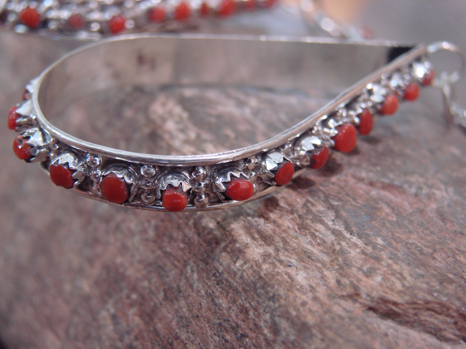 Genuine Native American Zuni Indian Sterling Silver & Coral Triangular Post Earrings from Western New Mexico. These post style earrings feature genuine Coral stones beautifully set into shadowbox crown sterling silver bezel settings. This is a very nice pair of earrings! Zuni Indian handmade by Joanne Cheama. Unsigned. Free shipping with a gift box included!