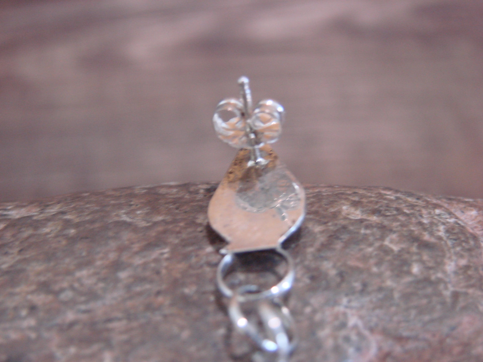 - Large Zuni Sterling Silver & Coral Post Dangle Earrings - Cheama