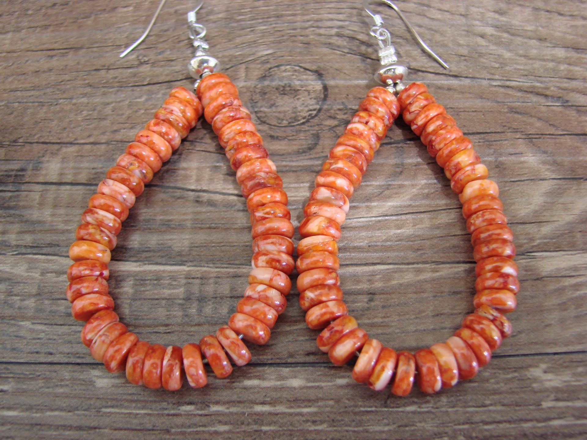 Genuine Native American Navajo Indian Hand Strung Spiny Oyster Stone Dangle Earrings from Western New Mexico. These earrings feature beautiful hand strung genuine Spiny Oyster stones throughout. These are Gorgeous Earrings! Navajo Indian Hand Strung by Louise Joe. Unsigned. Free Shipping and Gift box included!