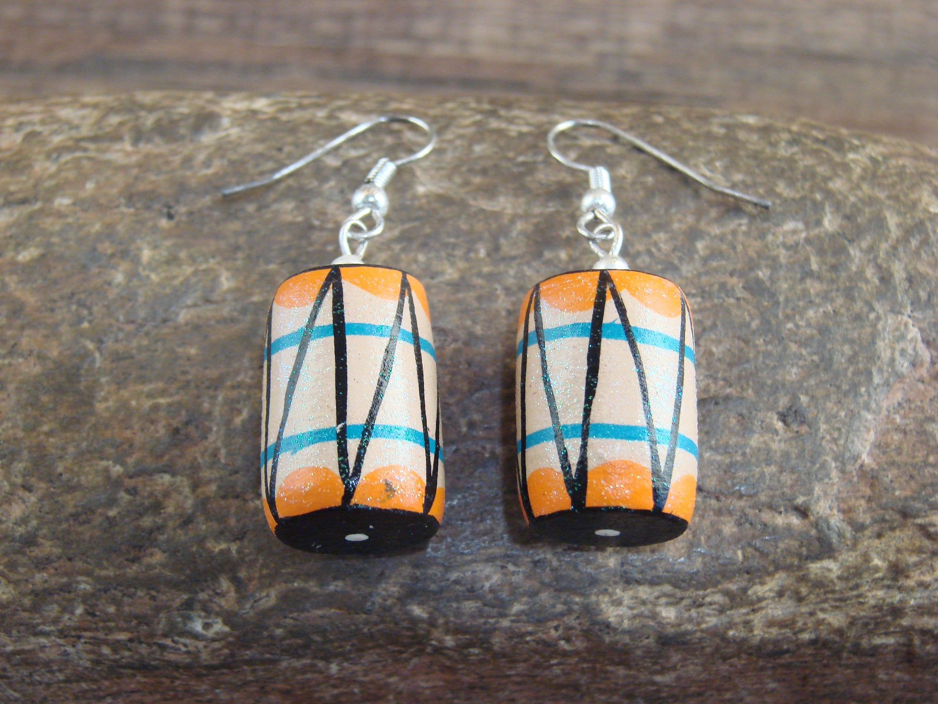 - Native American Handmade & Handpainted Drum Clay Earrings by Chinana