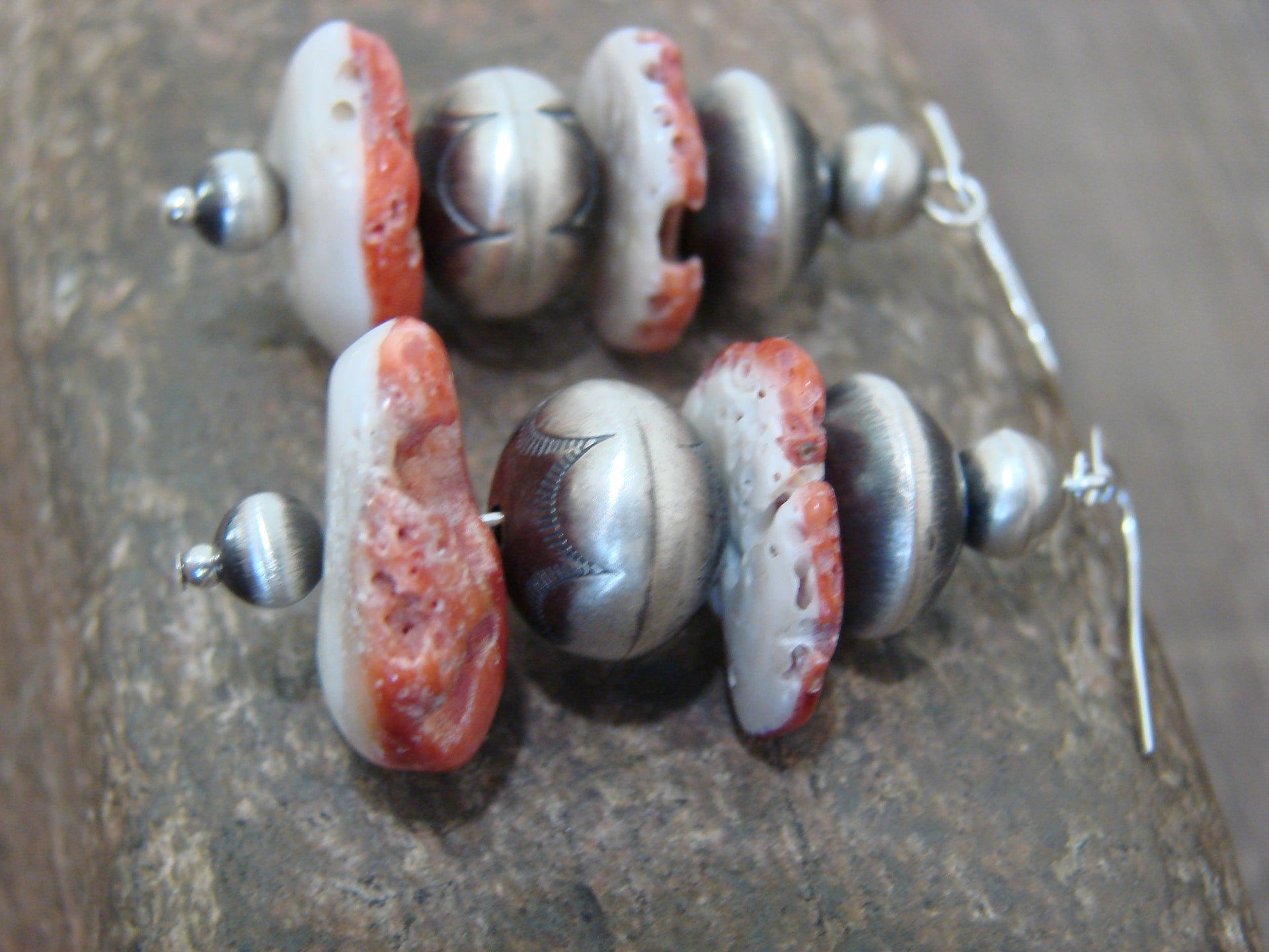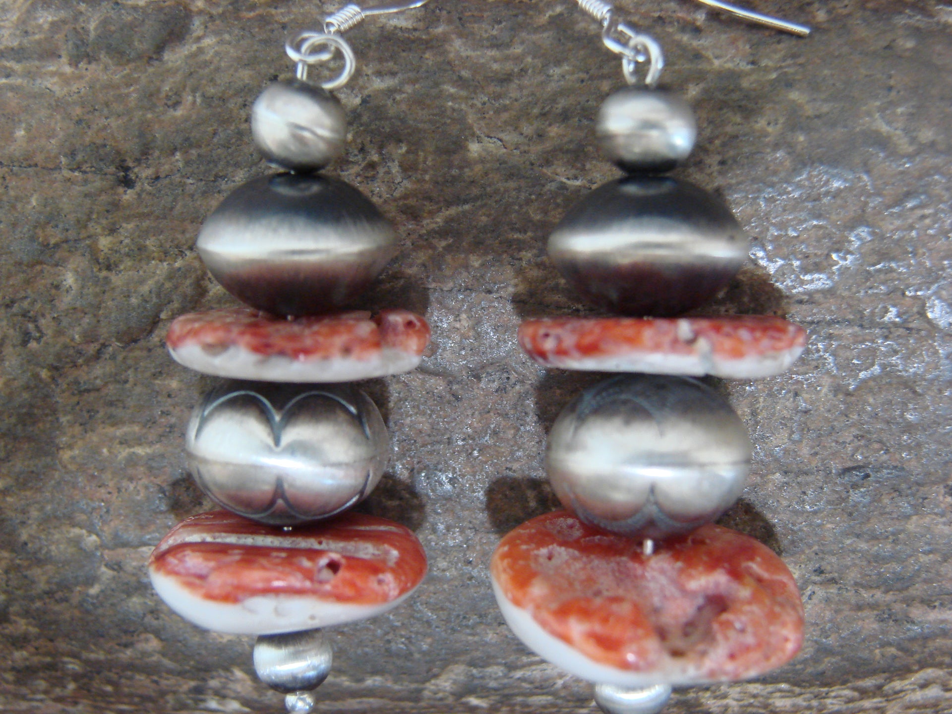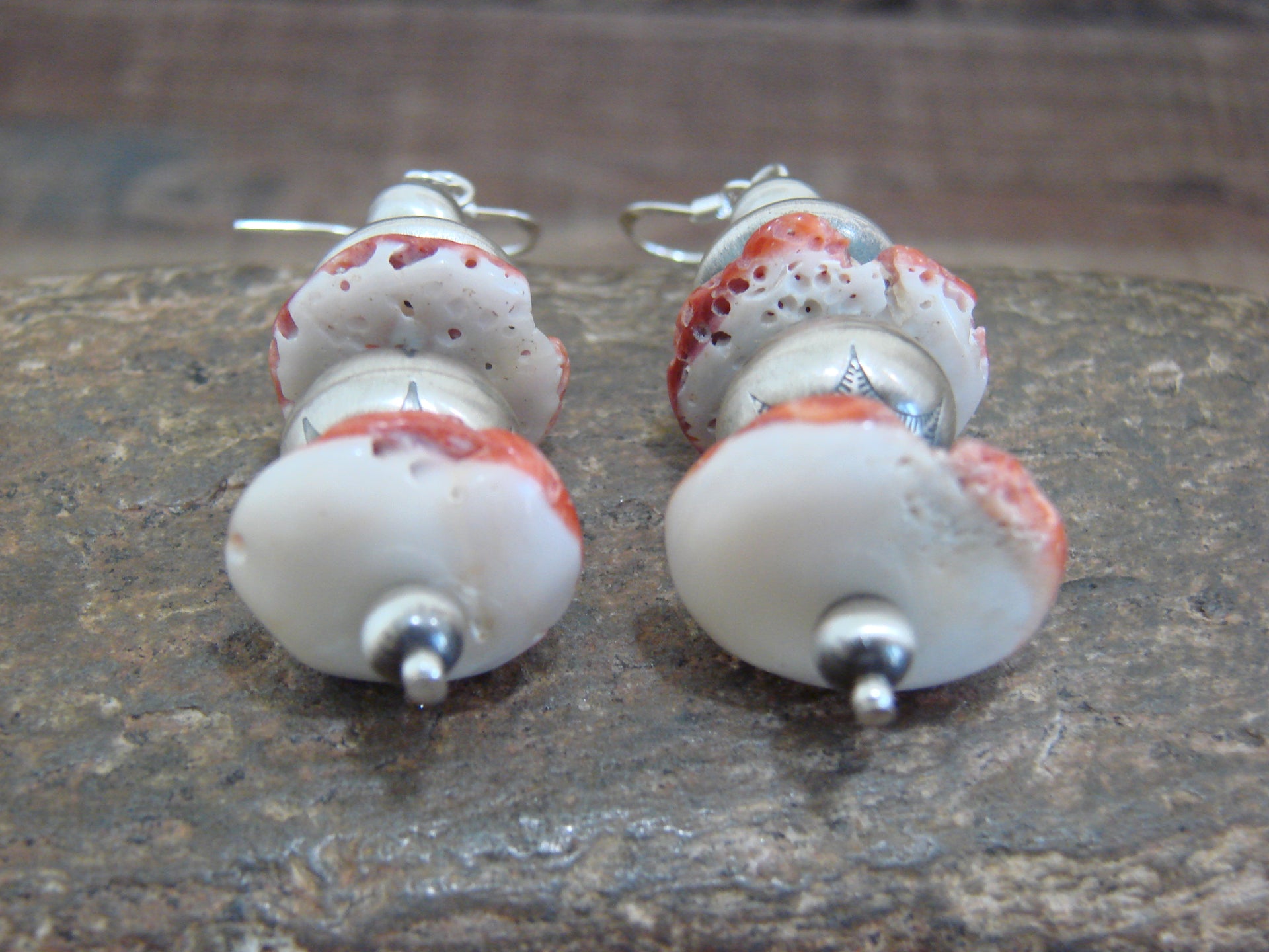 Native American Navajo Pearl & Spiny Oyster Dangle Earrings by Coriz