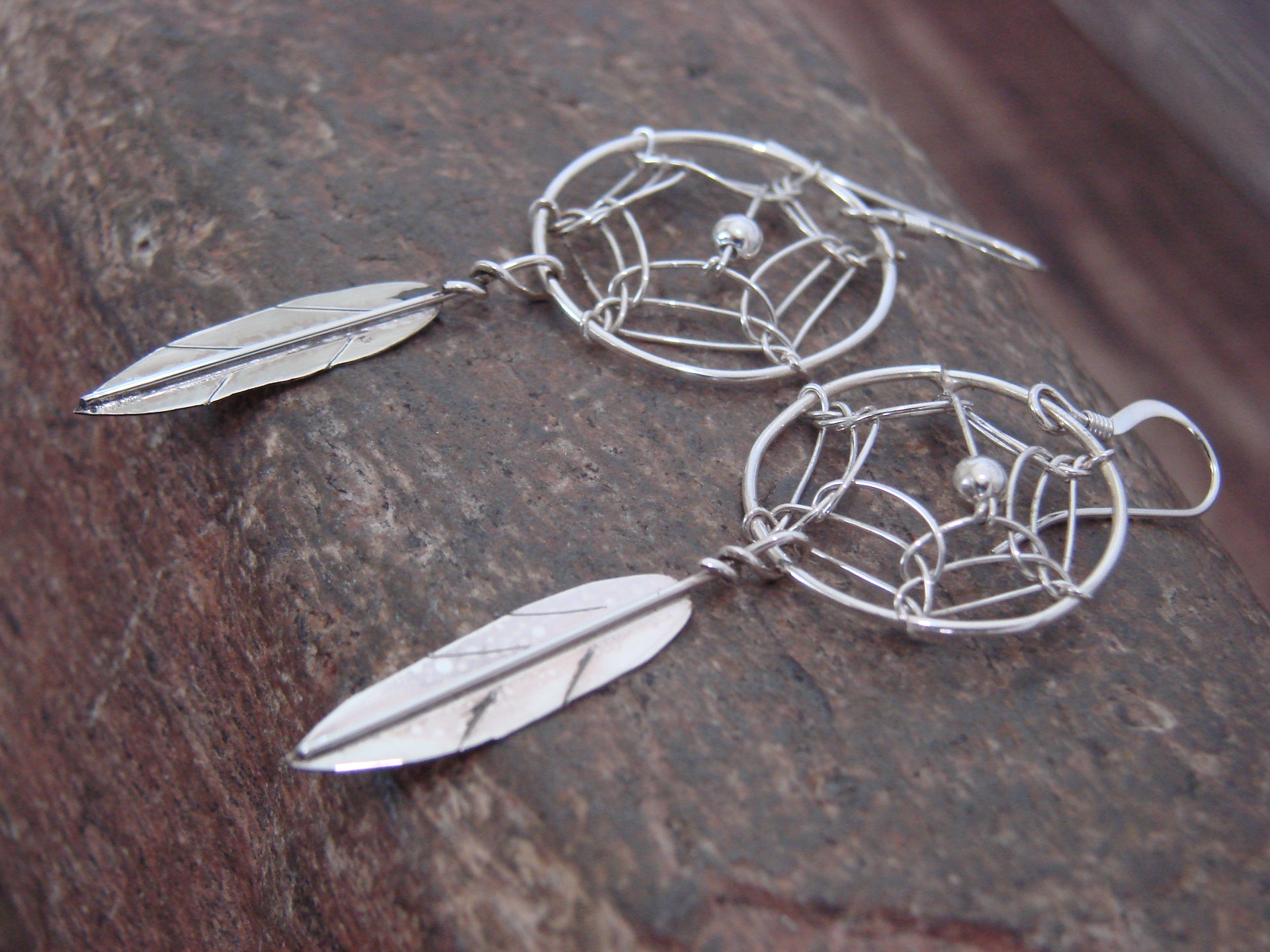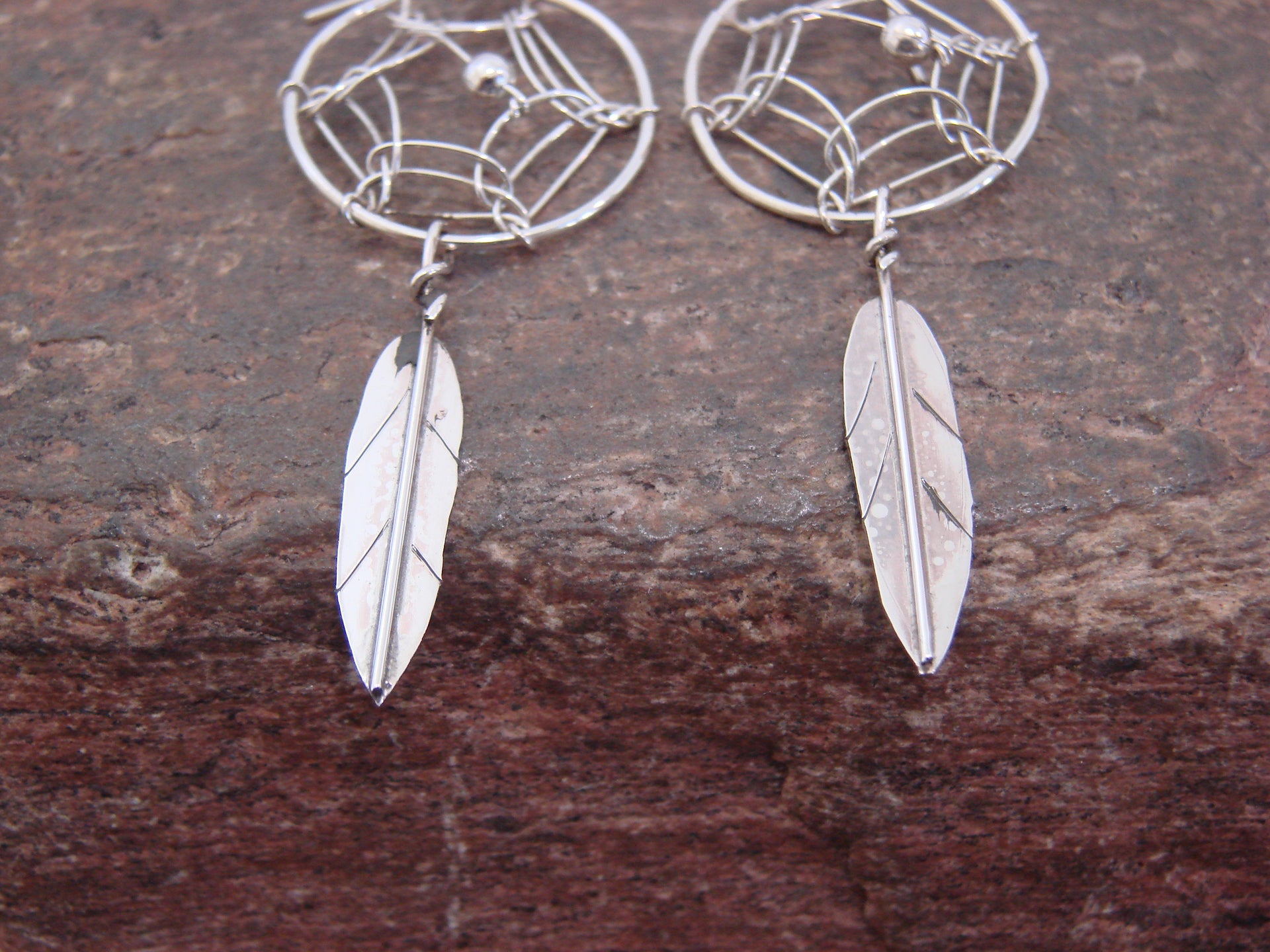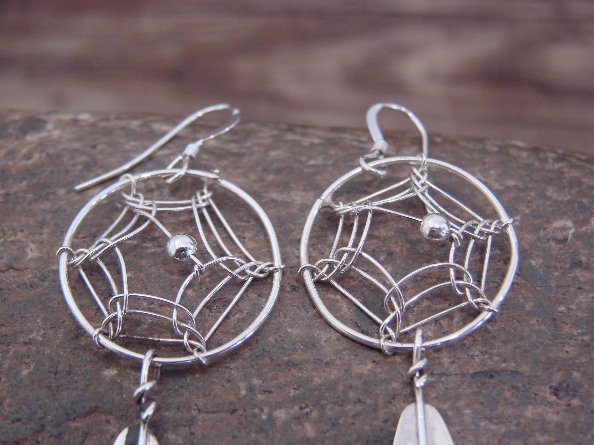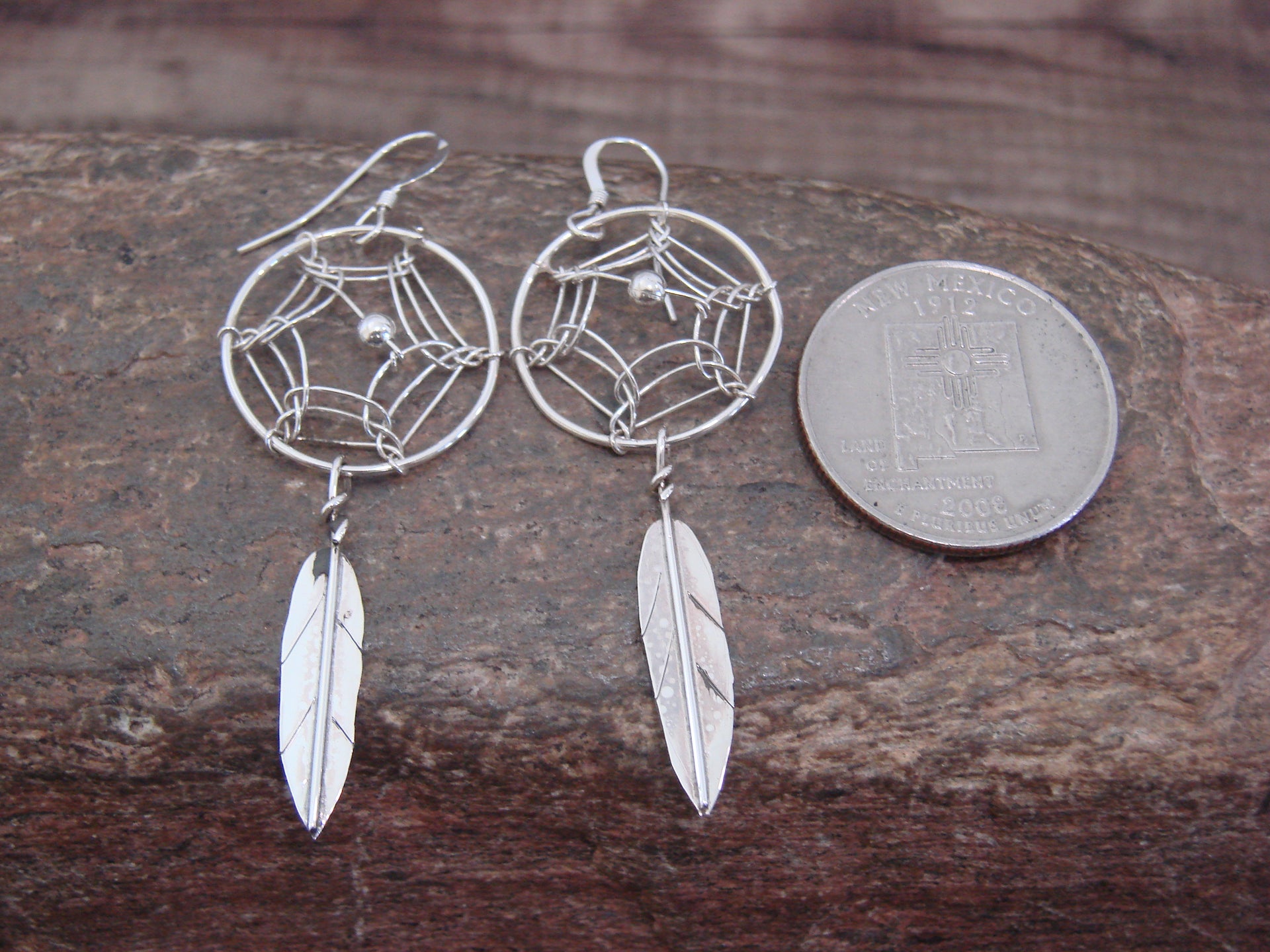 - Native American Sterling Silver Dream Catcher Dangle Earrings by Arviso