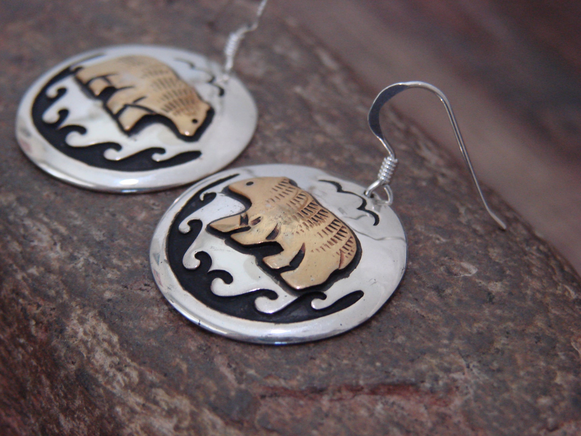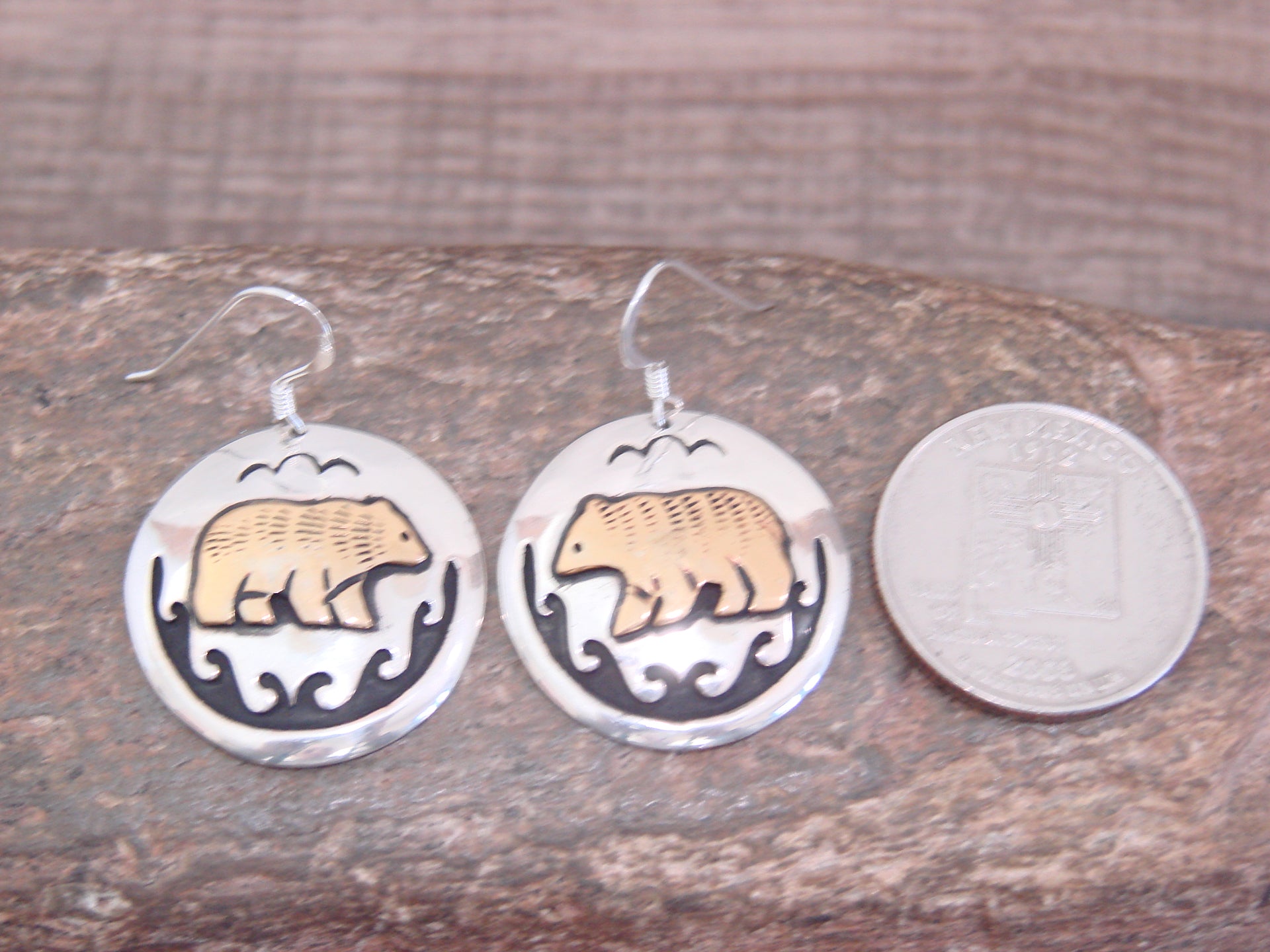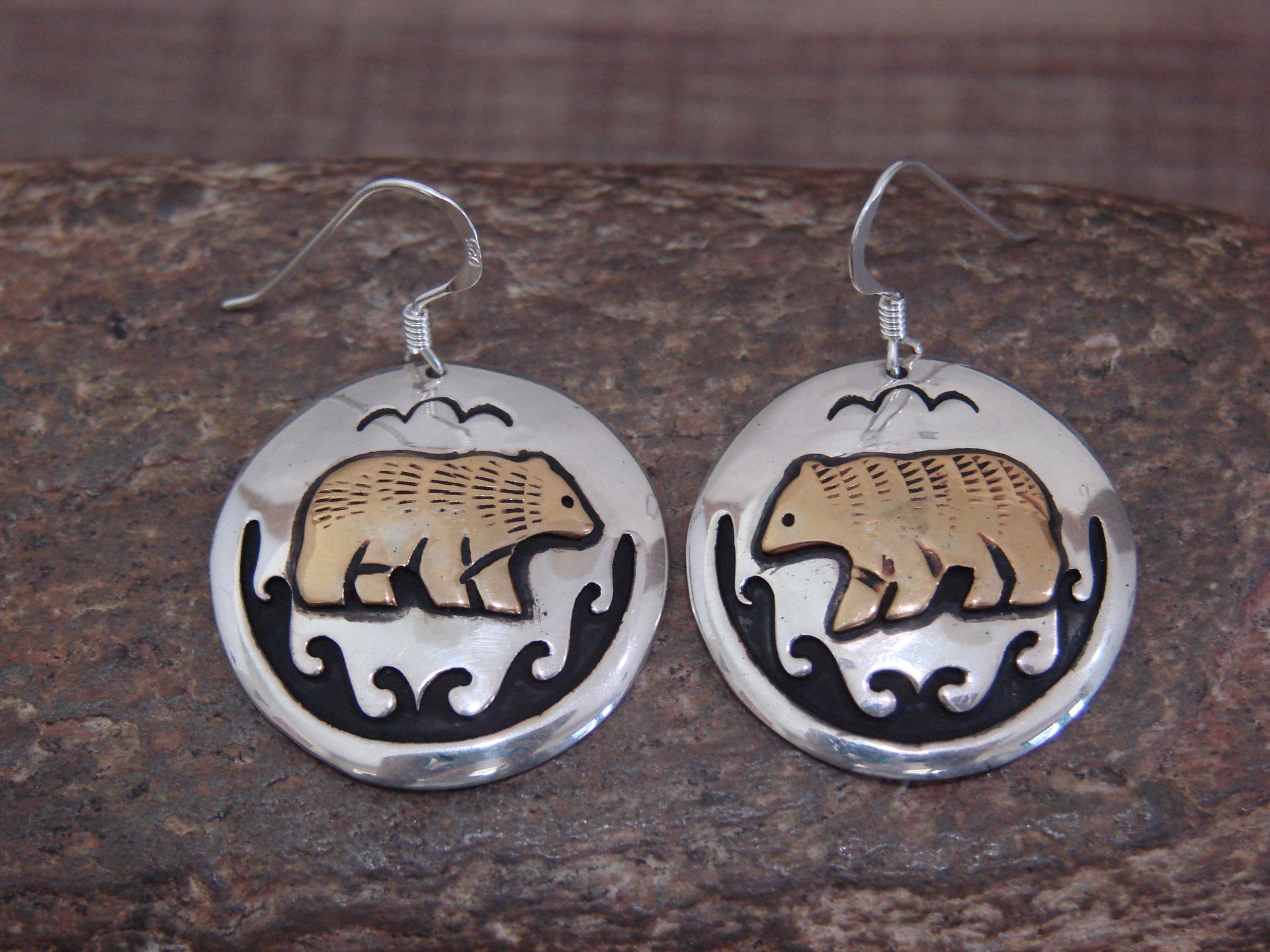 Native American Sterling Silver & Gold Fill Bear Dangle Earrings - Singer