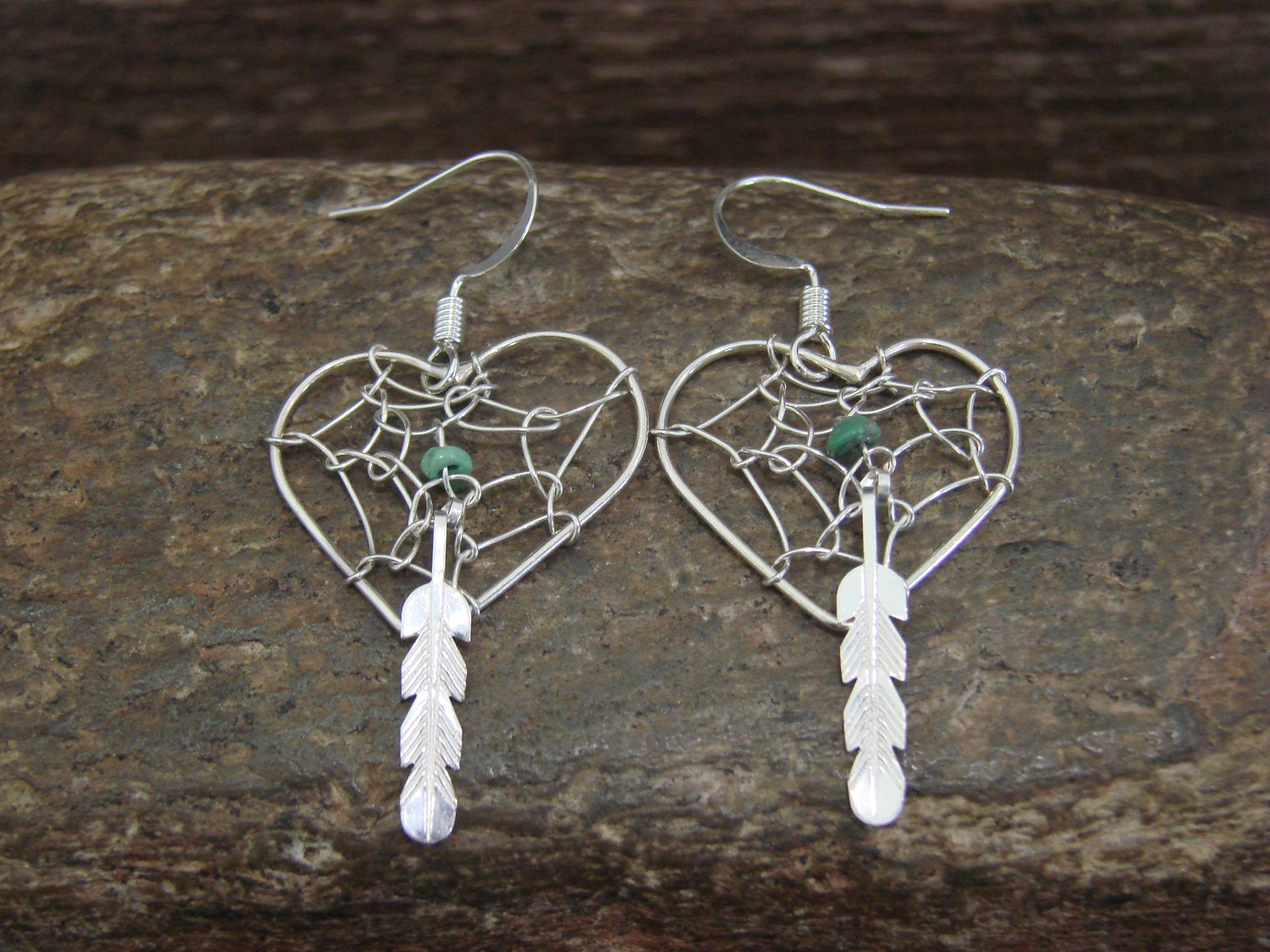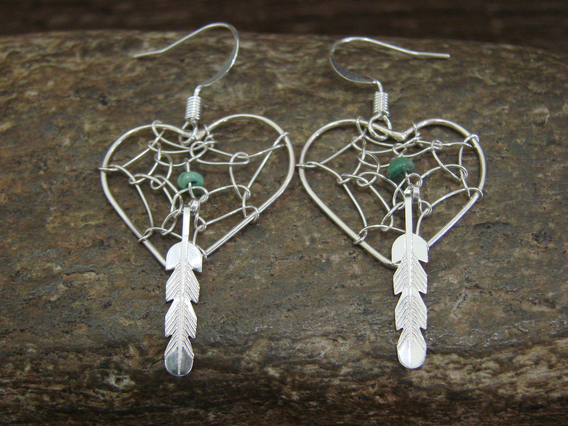- Native American Sterling Silver Heart Dream Catcher Dangle Earrings by Yazzie