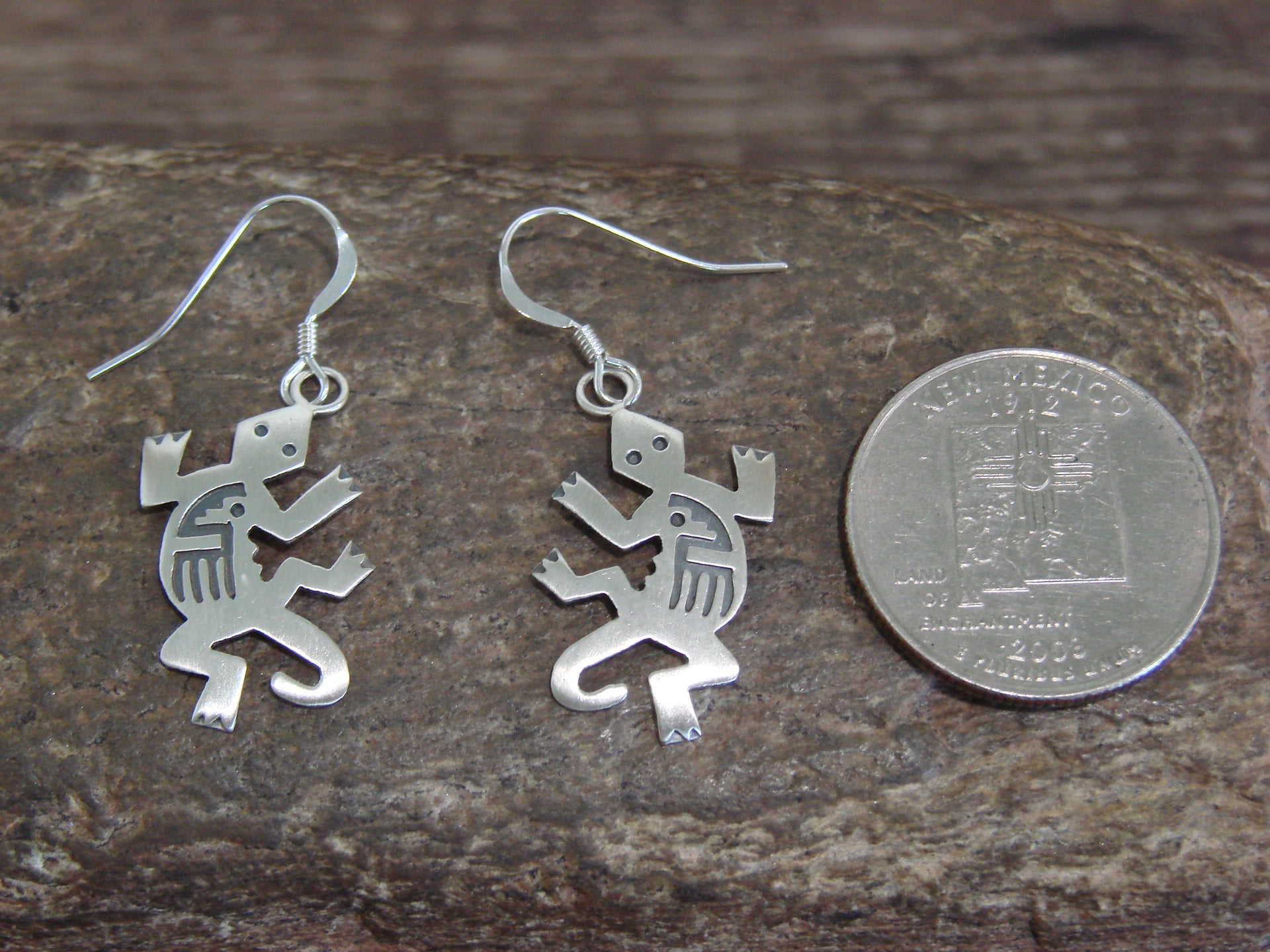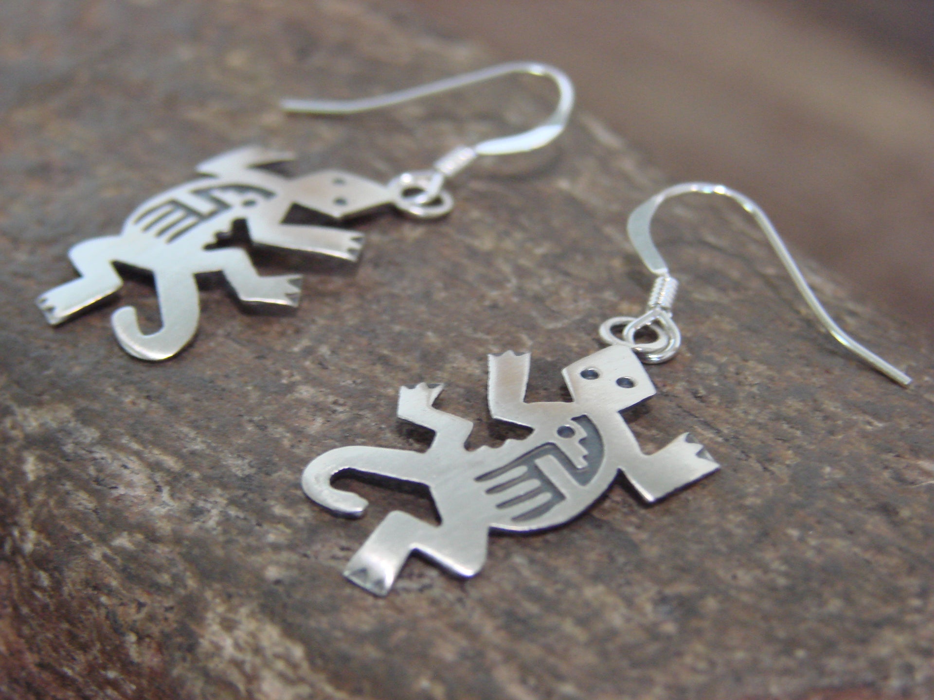 - Native American Sterling Silver Lizard Dangle Earrings by Gene