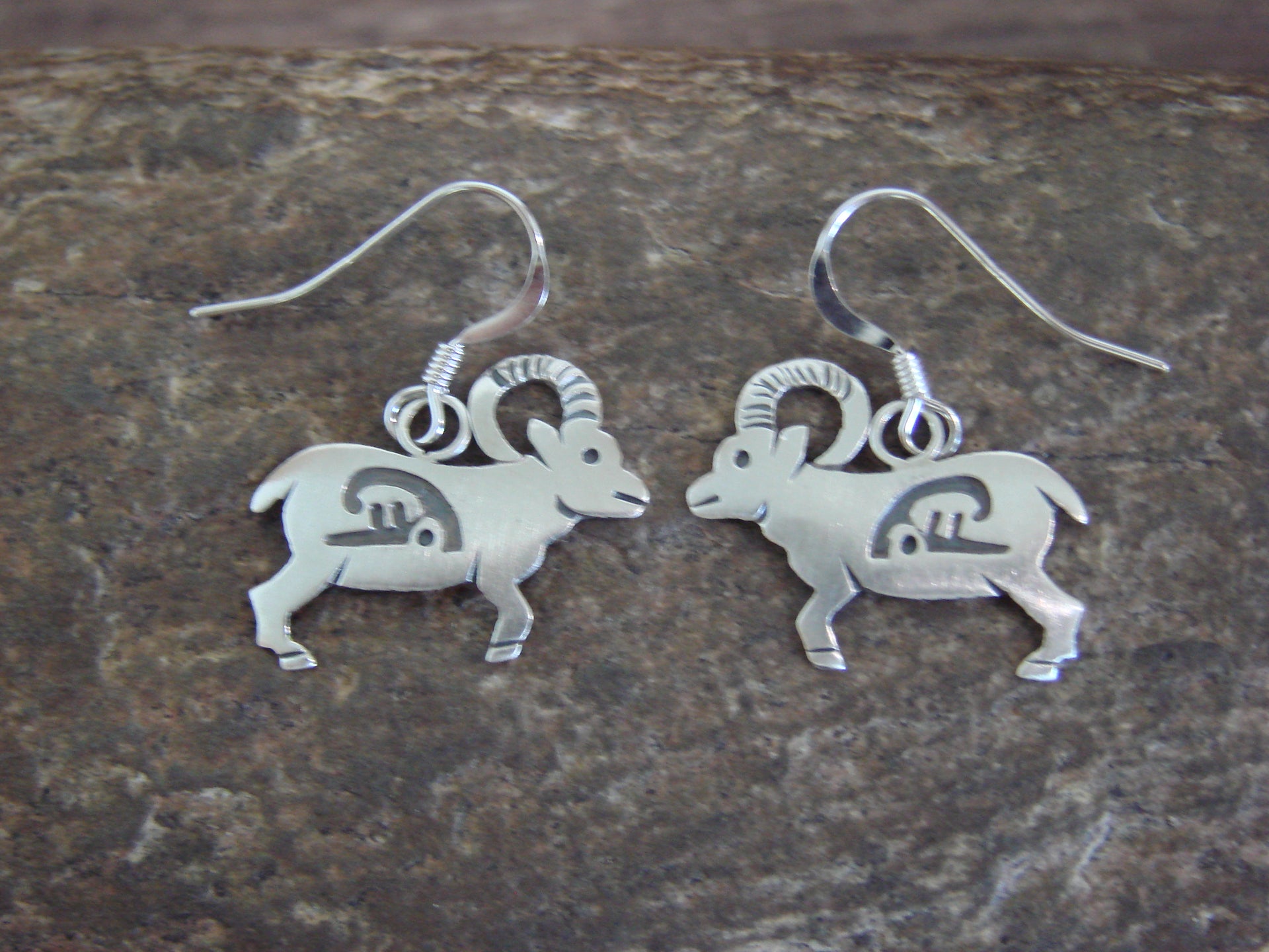 - Native American Sterling Silver Ram Dangle Earrings by Gene