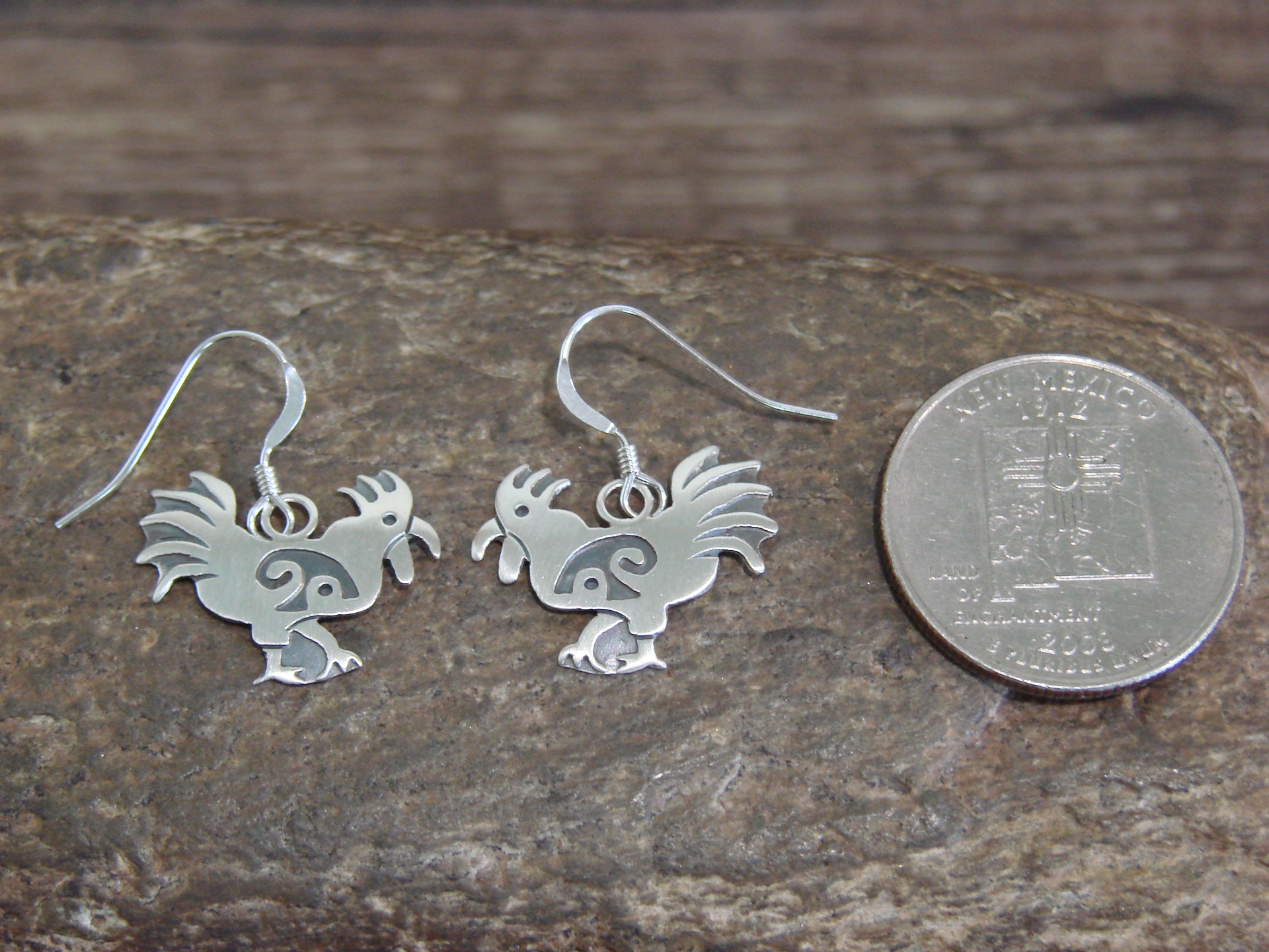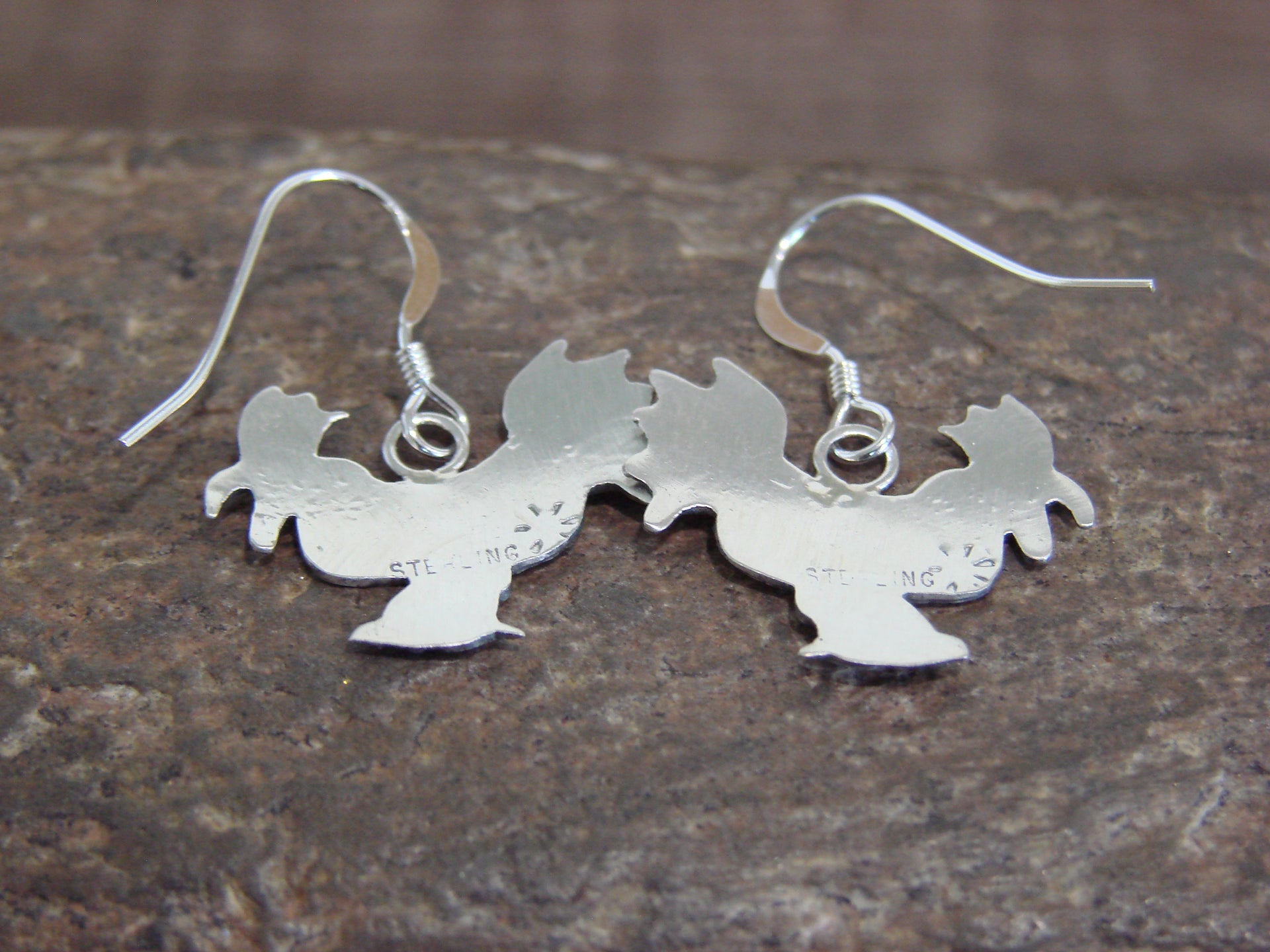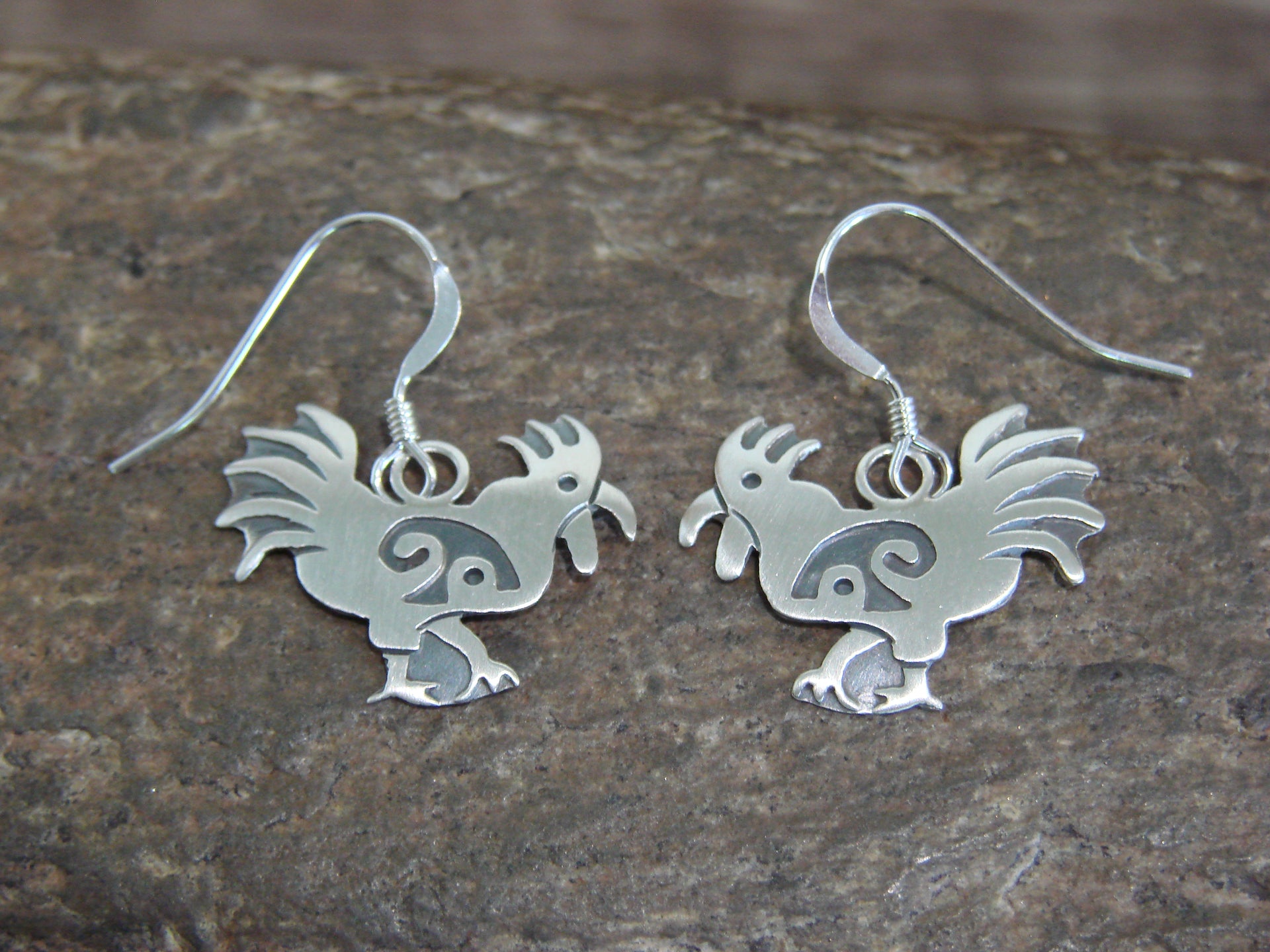 - Native American Sterling Silver Rooster Dangle Earrings by Gene