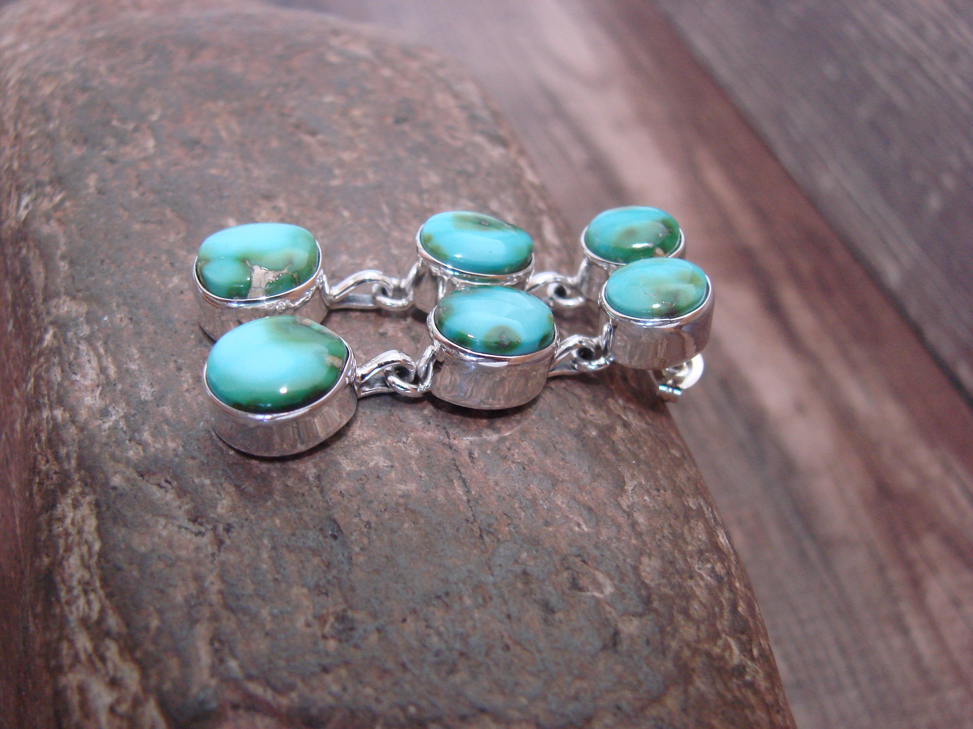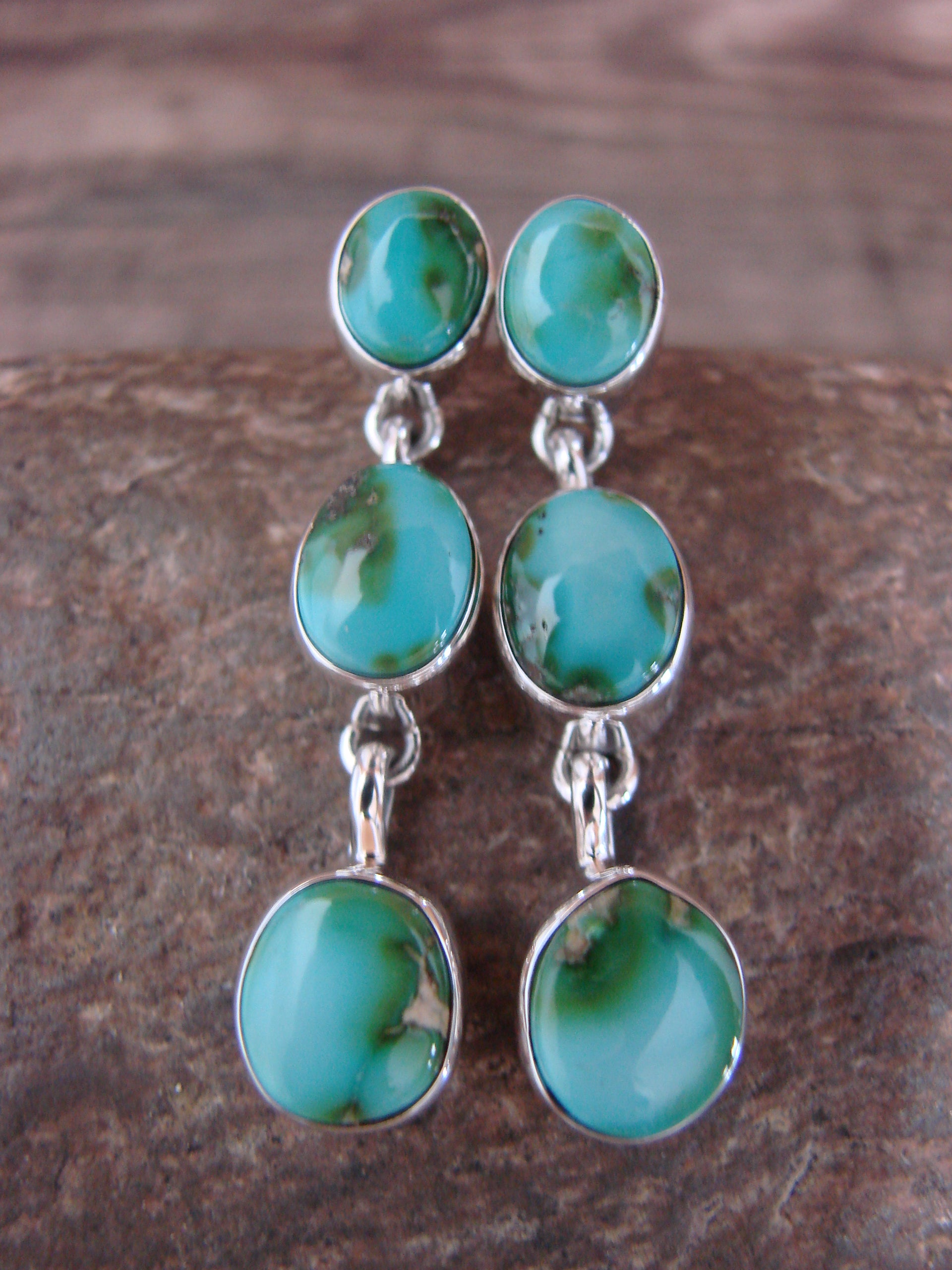 - Native American Sterling Silver Sonoran Turquoise Post Dangle Earrings Signed T