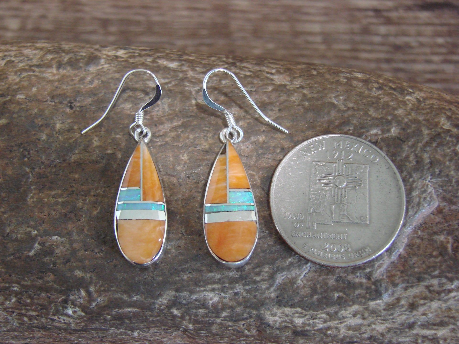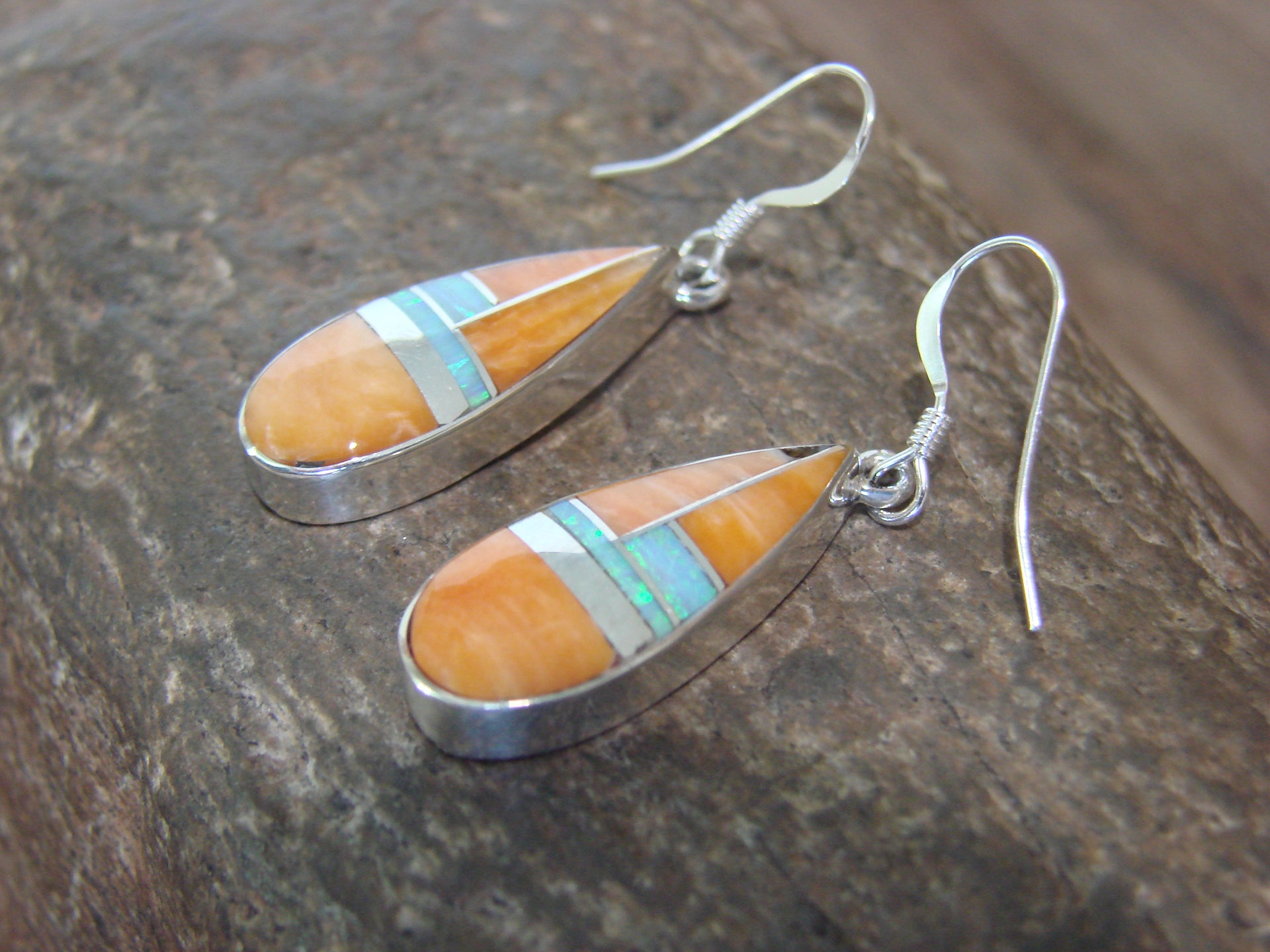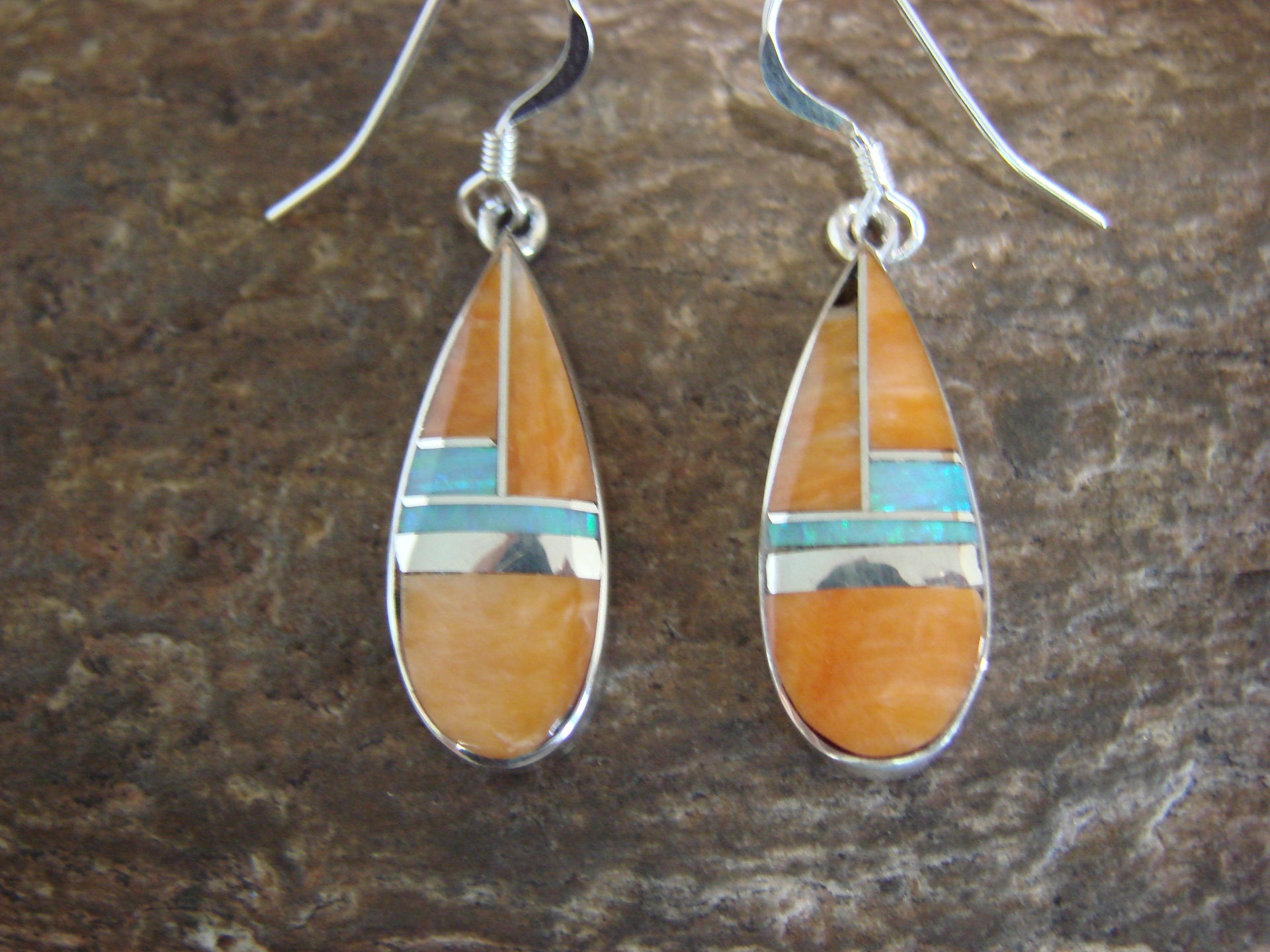- Native American Sterling Silver & Spiny Oyster Inlay Dangle Earrings by Manygoats