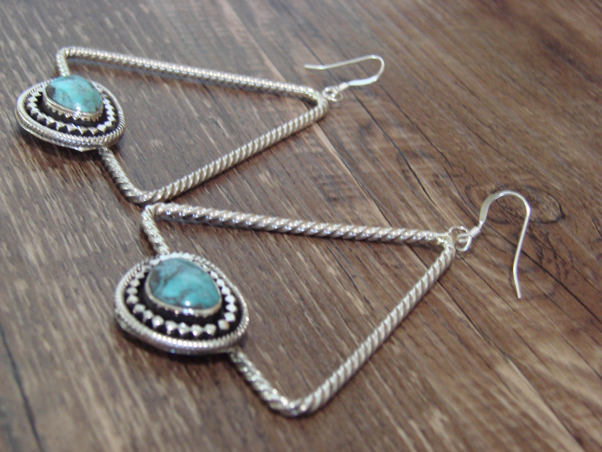 Native American Sterling Silver & Turquoise Dangle Earrings - Jack