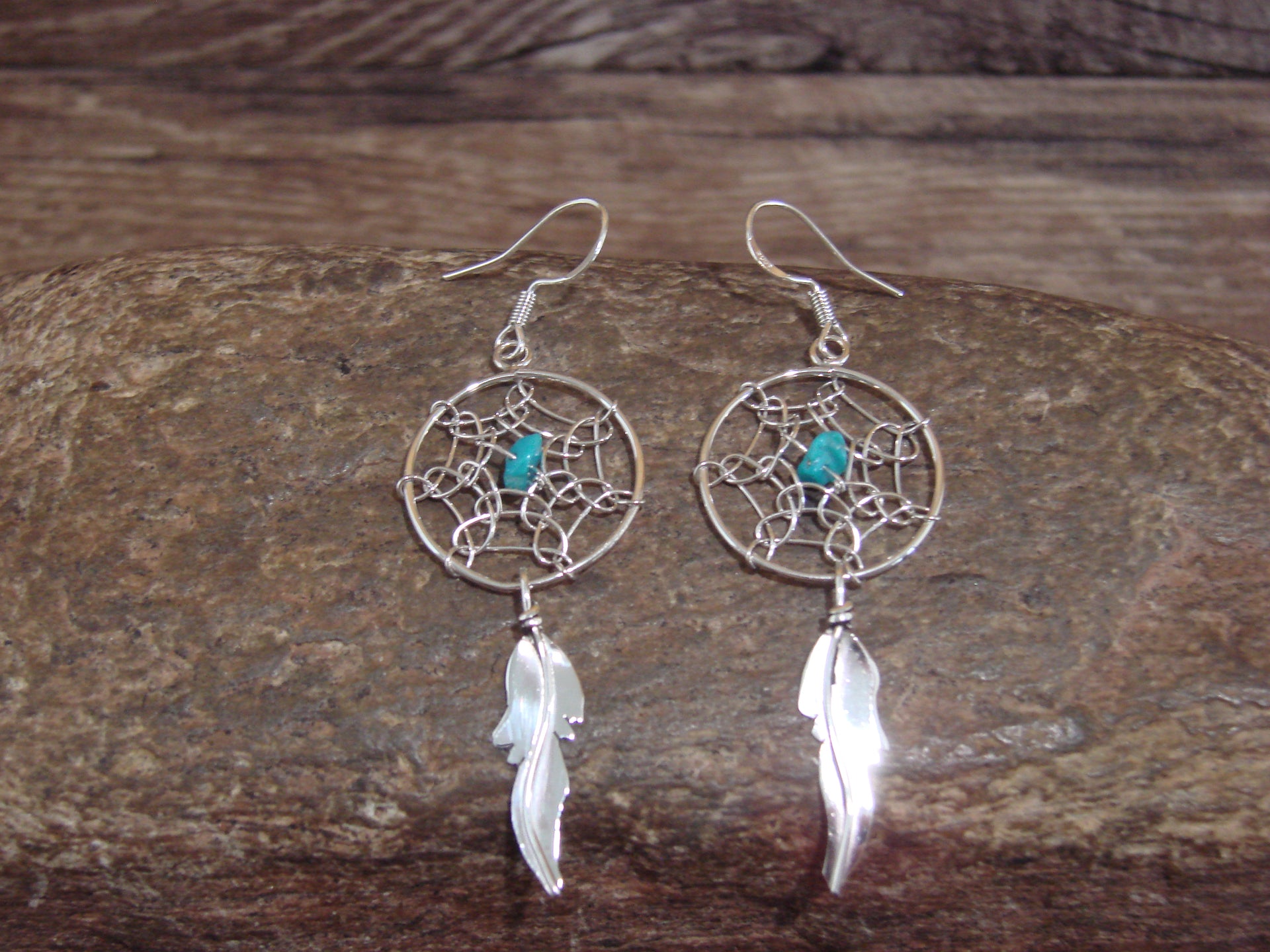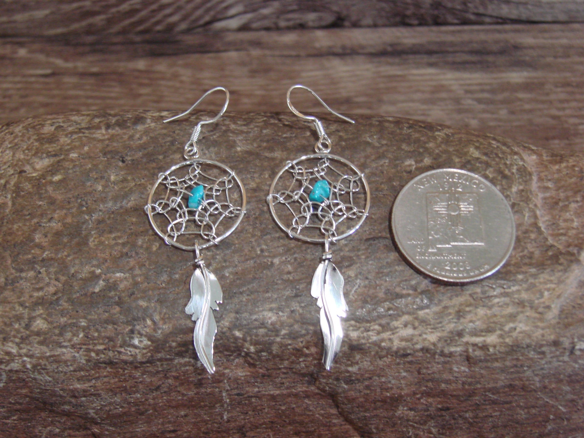 - Native American Sterling Silver & Turquoise Dream Catcher Dangle Earrings - Arviso