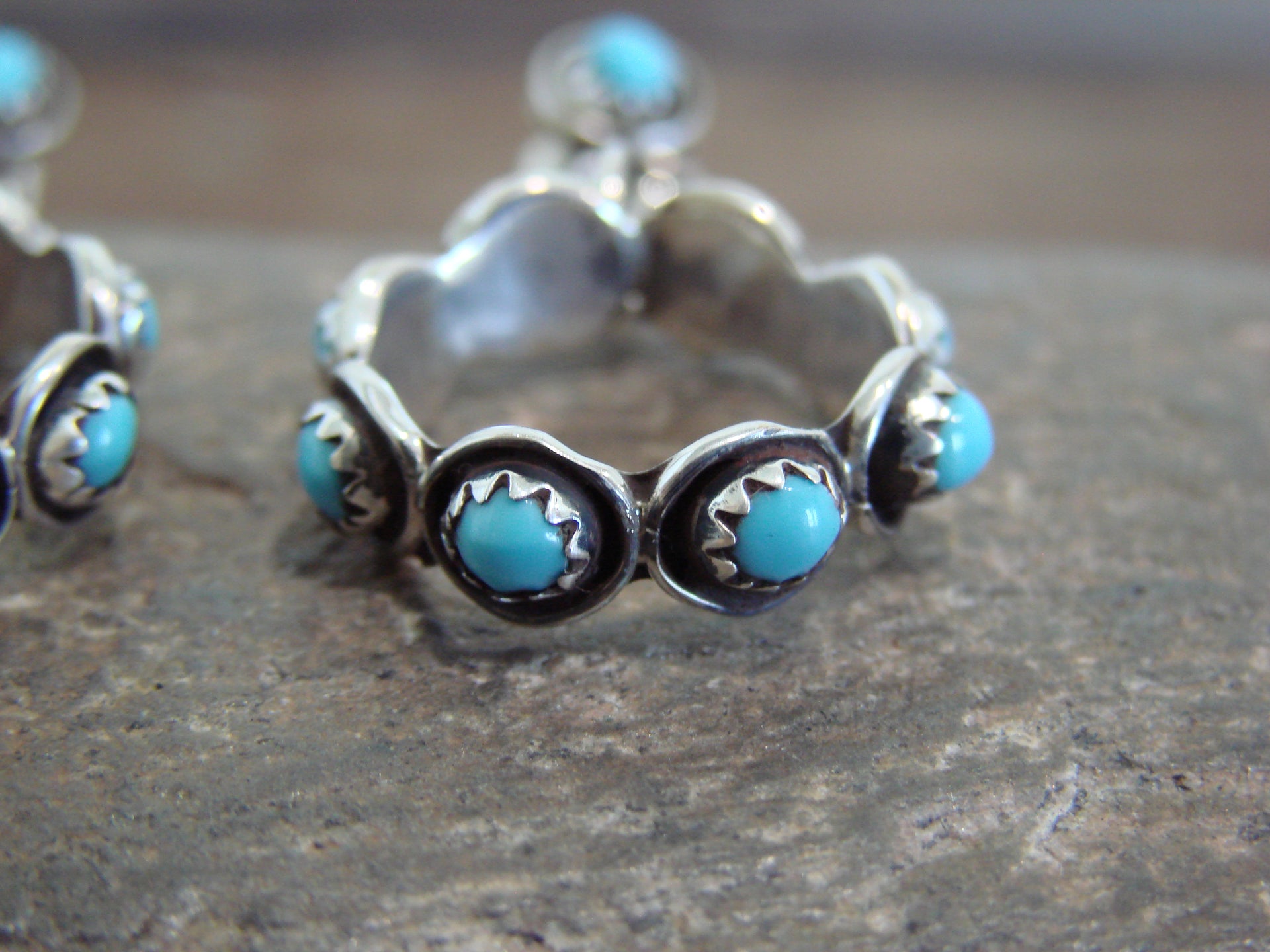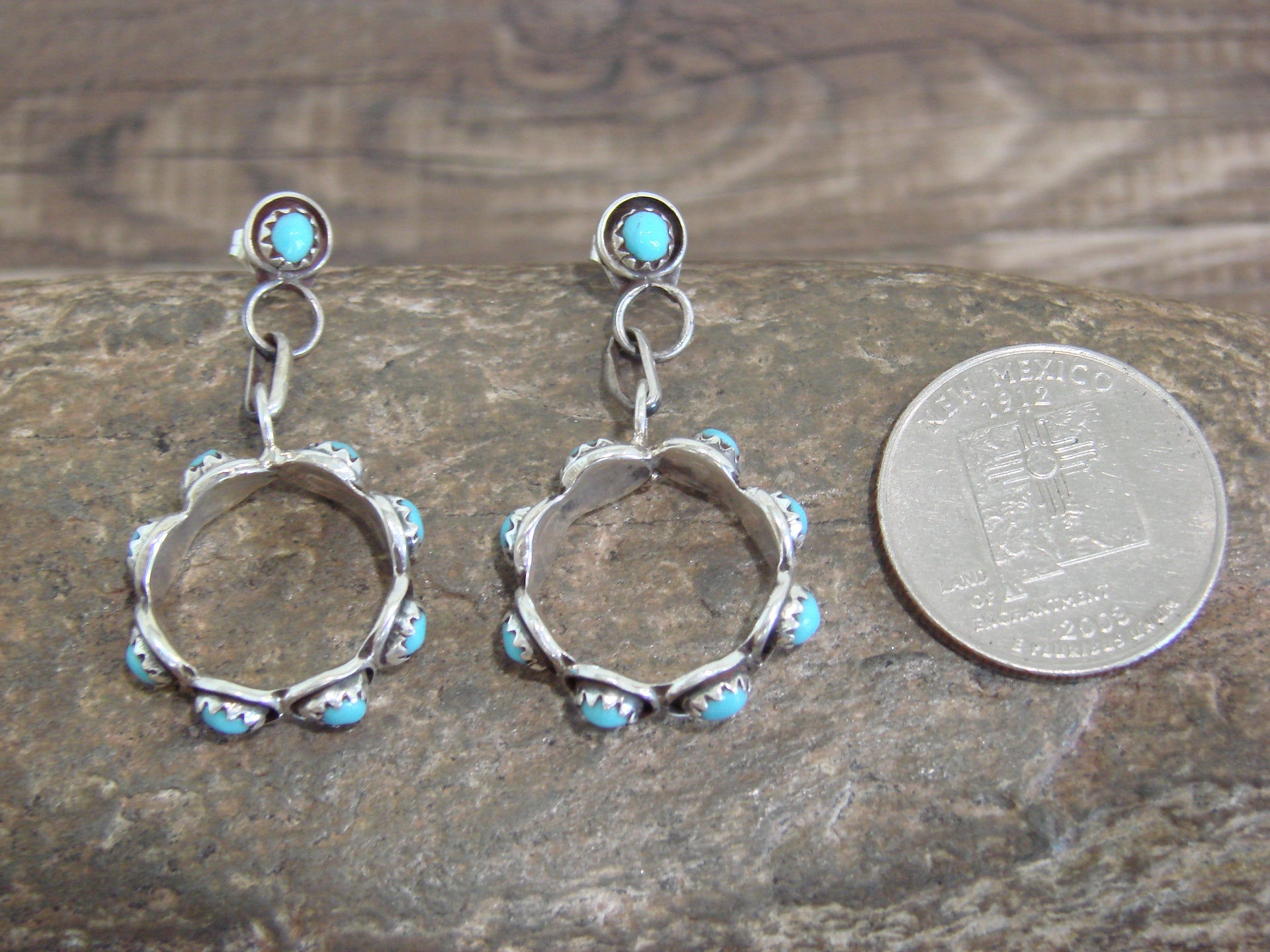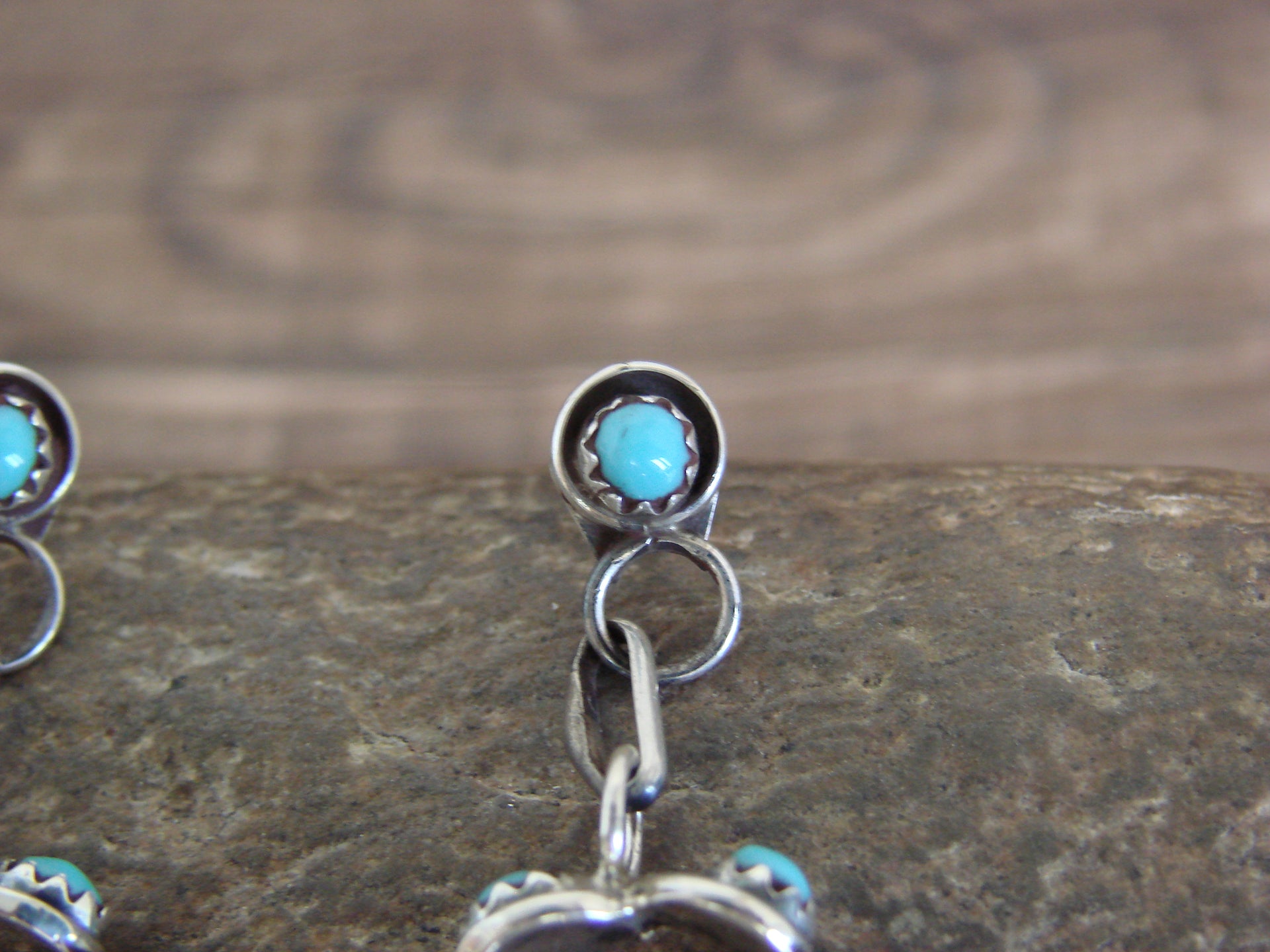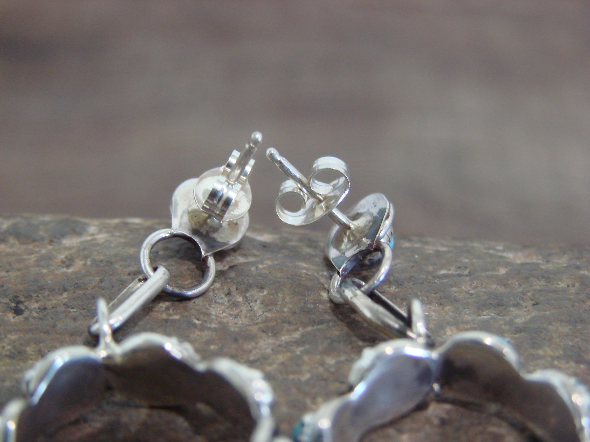 Genuine Native American Zuni Indian Sterling Silver & Turquoise Earrings from Western New Mexico. These Stunning Post Dangle style earrings feature Genuine Turquoise Stones beautifully set into crown sterling silver bezel shadowbox settings. This is a very nice pair of earrings! Zuni Indian handmade by Florenda Lonasee. Unsigned. Free Shipping with a gift box included!