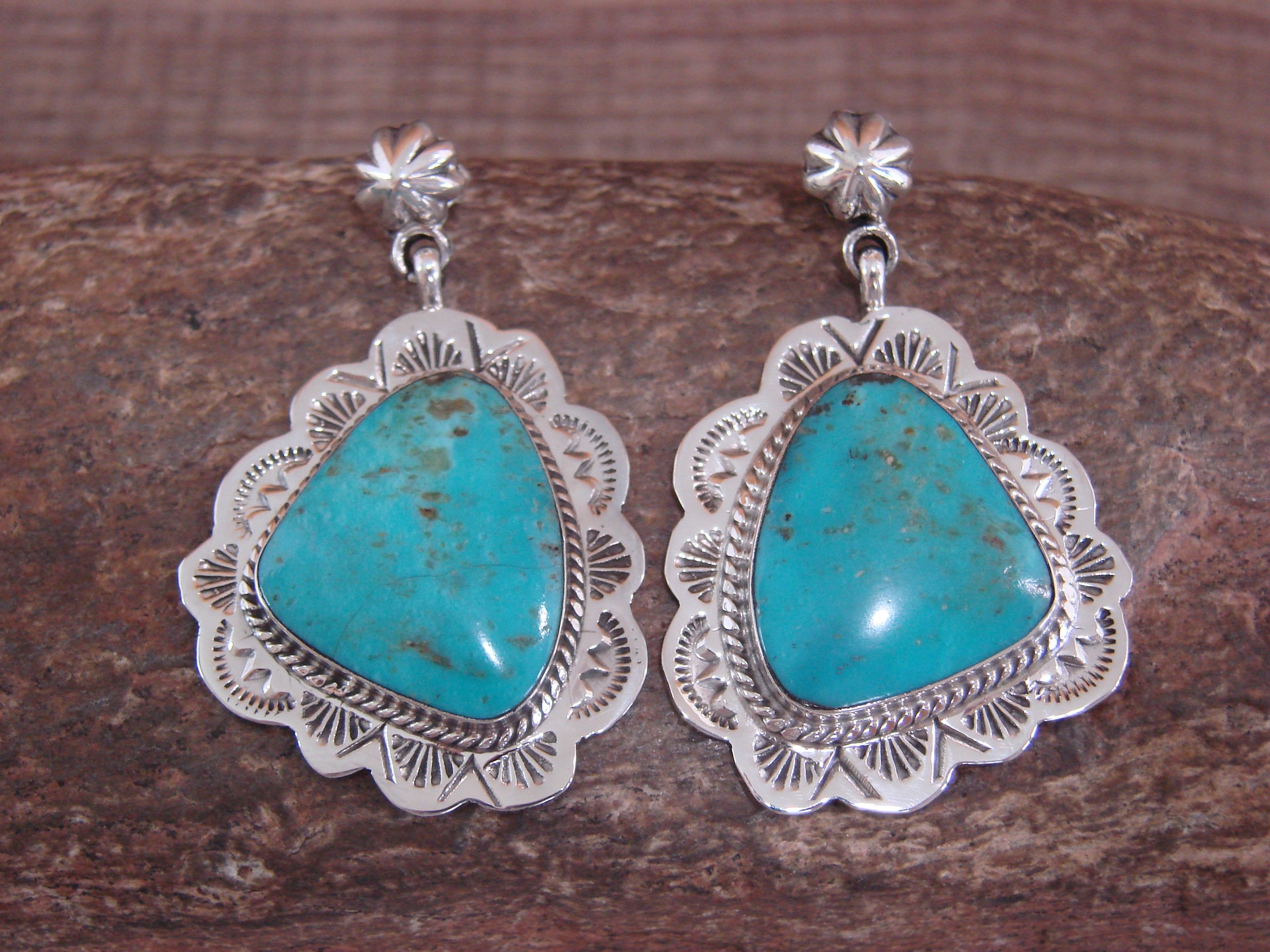 Native American Sterling Silver & Turquoise Post Dangle Earrings - Smith