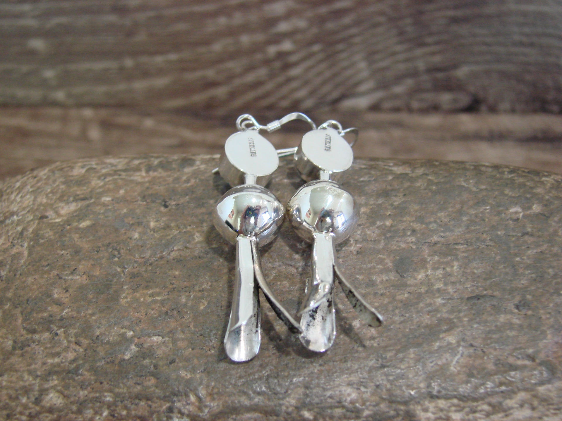 Native American Sterling Silver Turquoise Squash Blossom Dangle Earrings - Tsosie