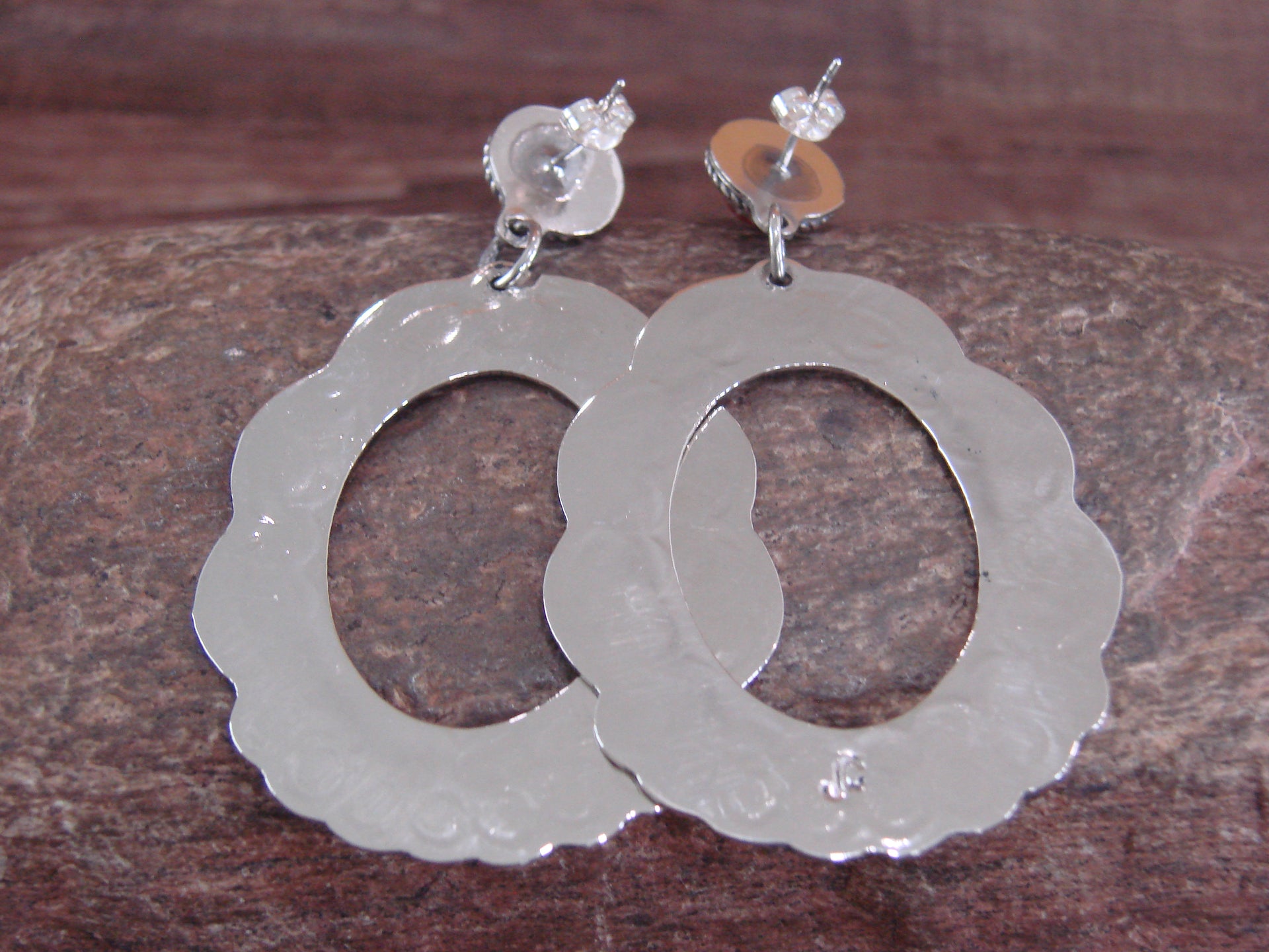 Navajo Indian Nickel Silver & Coral Dangle Post Earrings - Cleveland