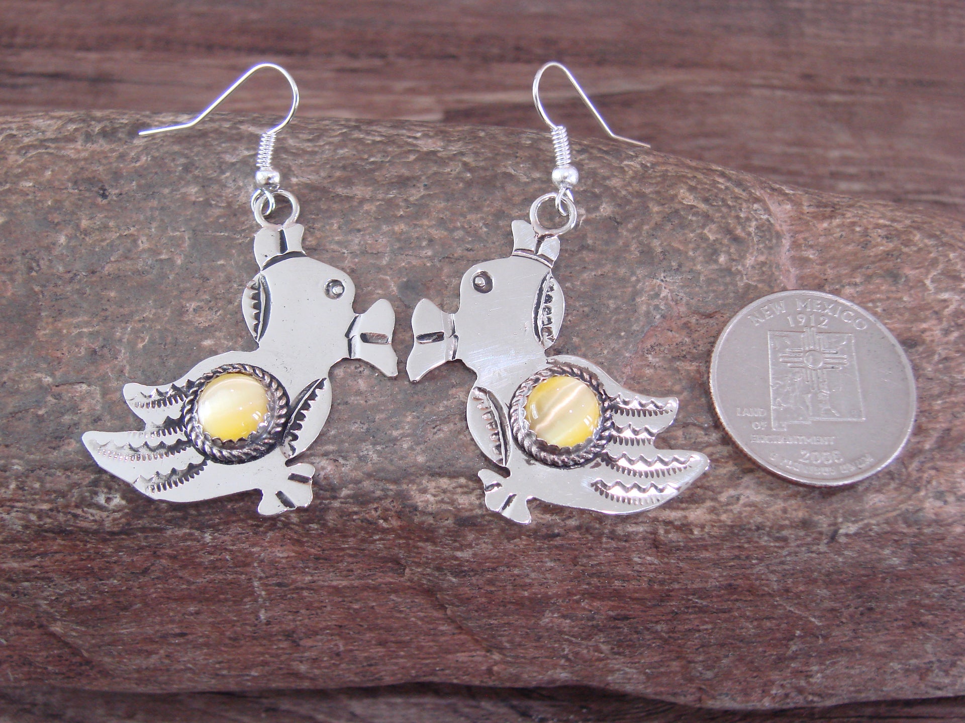 - Navajo Indian Nickel Silver & Yellow Marble Duck Dangle Earrings - Cleveland
