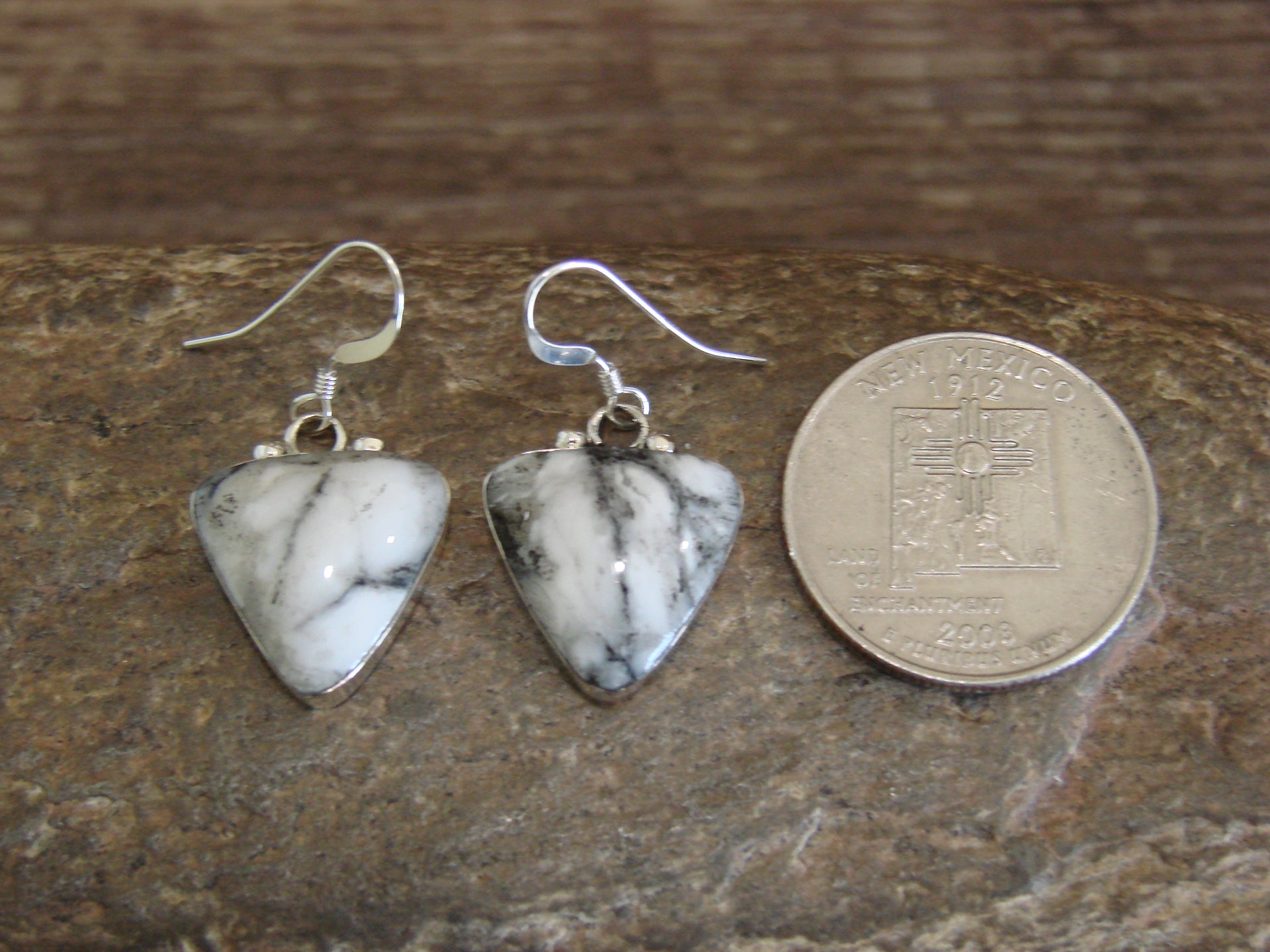 - Navajo Sterling Silver & White Buffalo Turquoise Dangle Earrings by Lopez