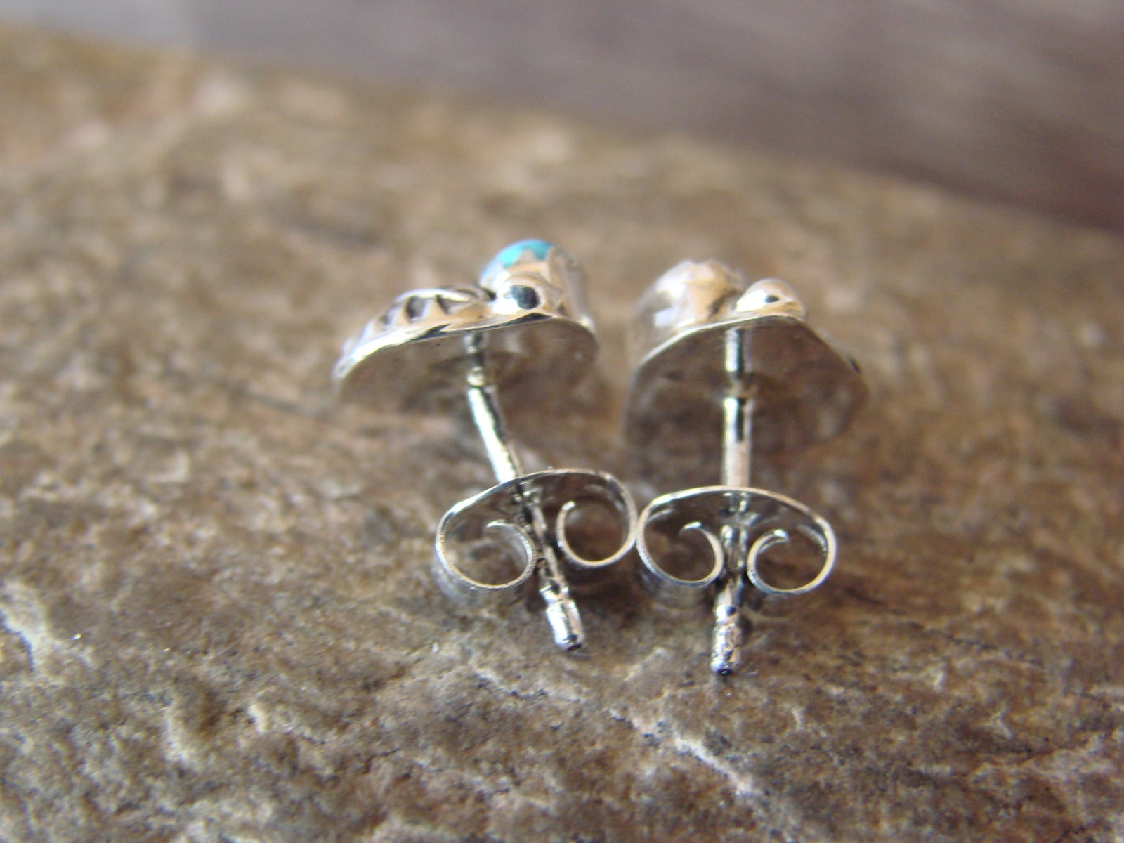 Navajo Sterling Silver Feather Turquoise Post Earrings by Joe
