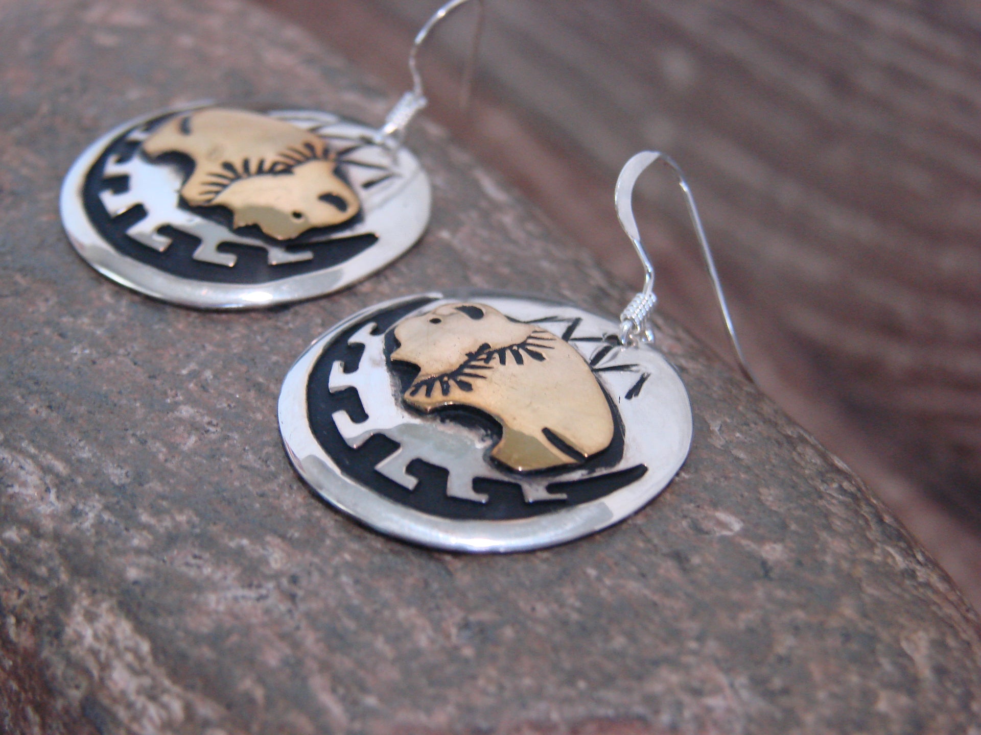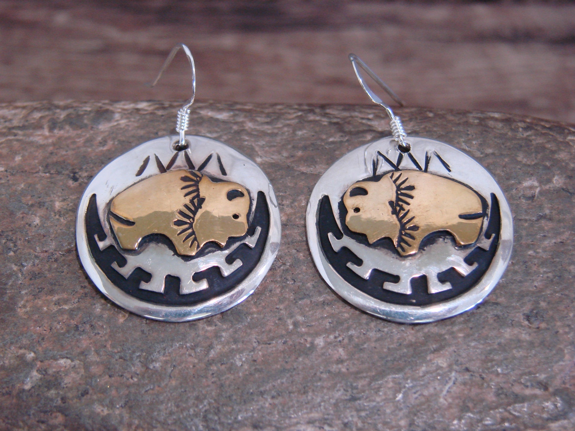 Native American Sterling Silver & Gold Fill Buffalo Dangle Earrings - Singer