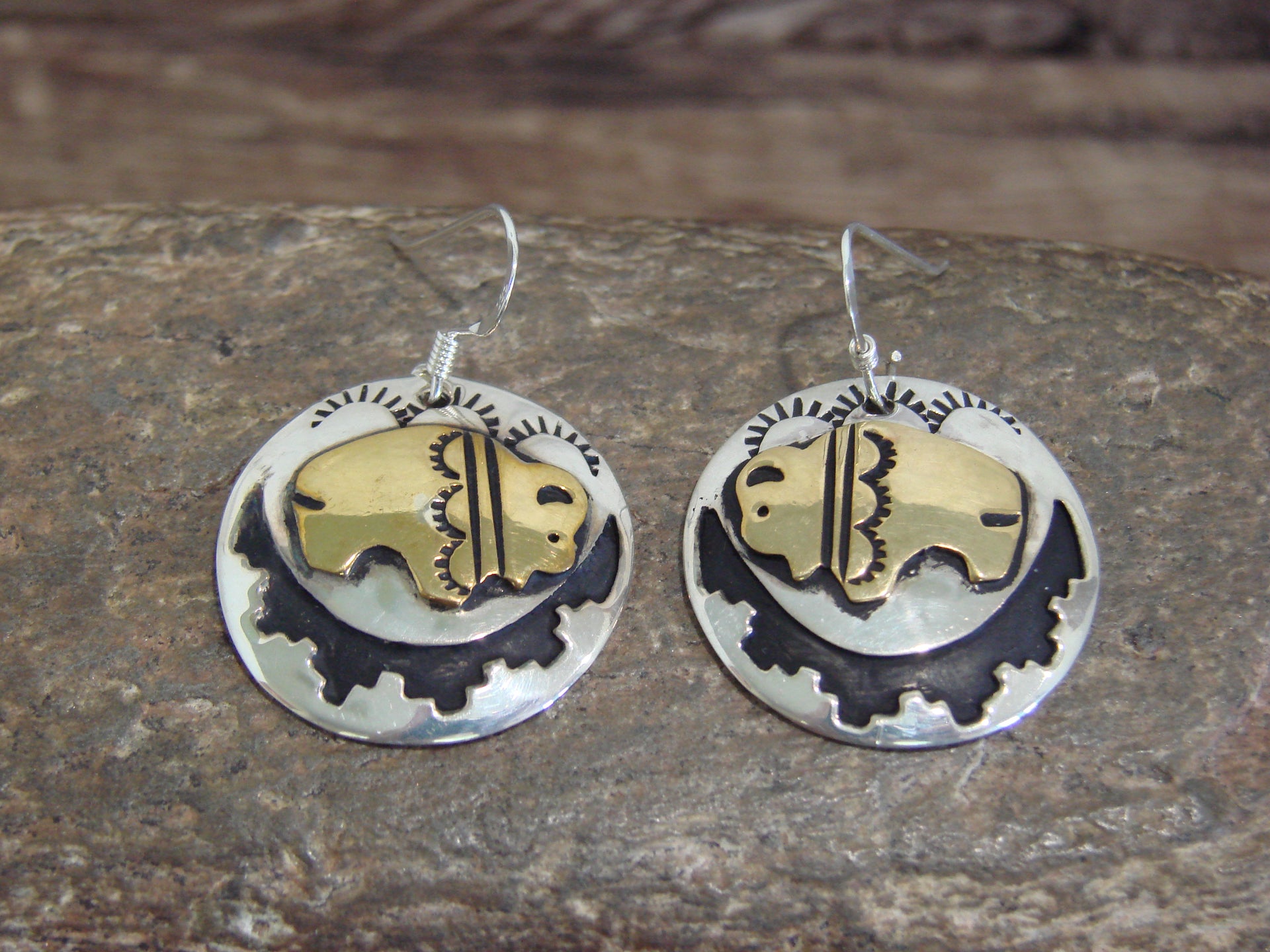 Native American Sterling Silver & Gold Fill Buffalo Dangle Earrings - Singer