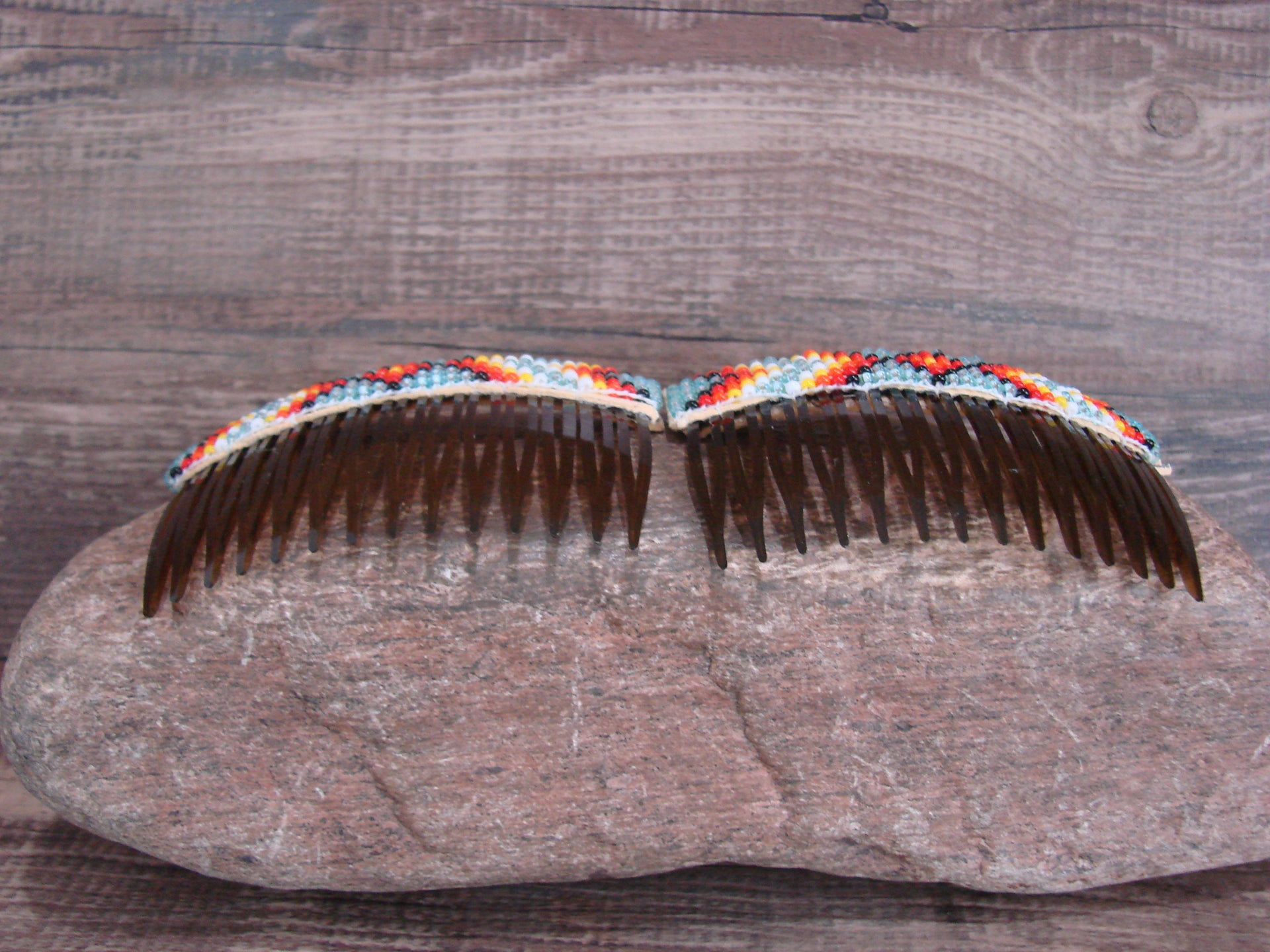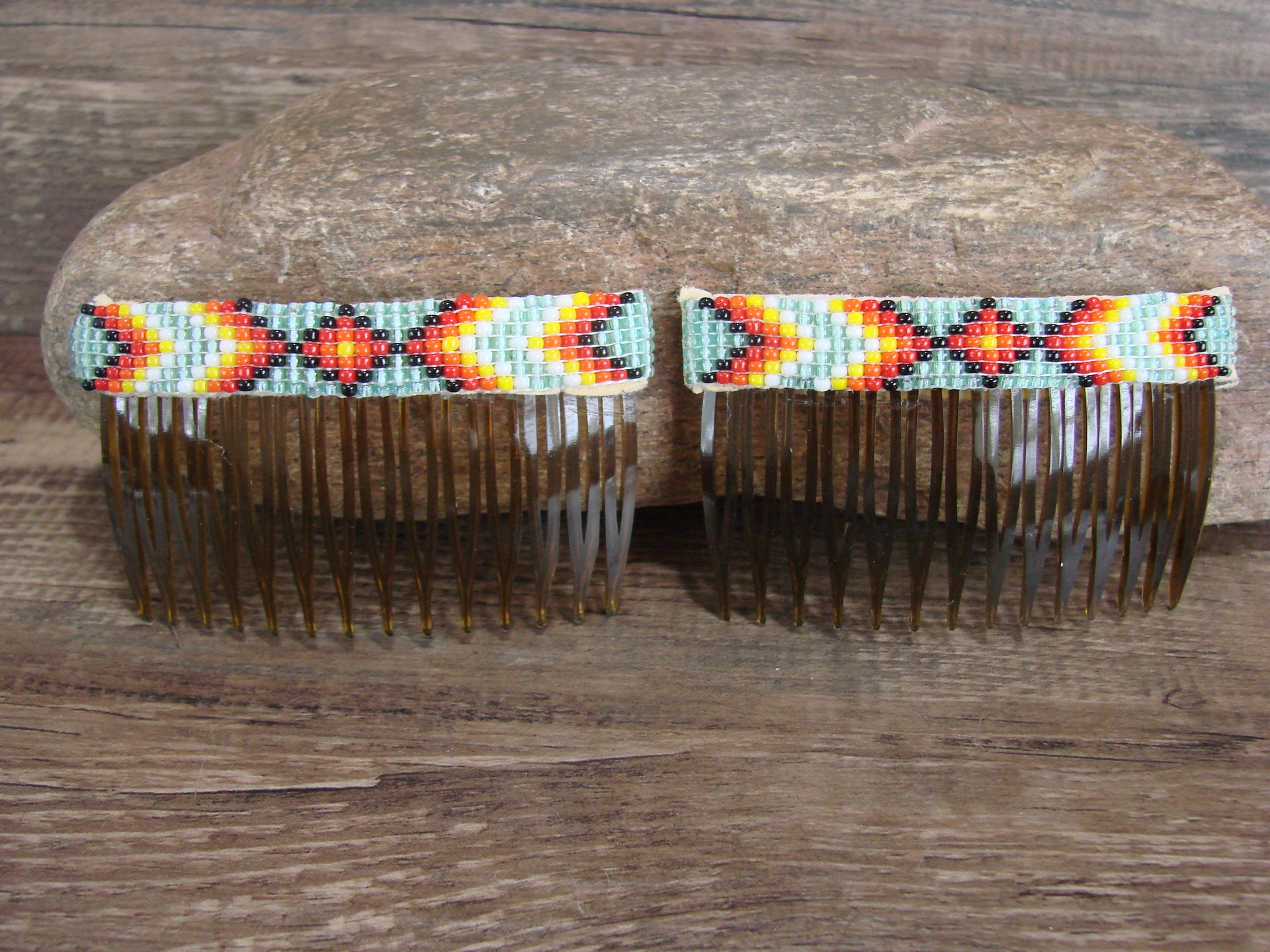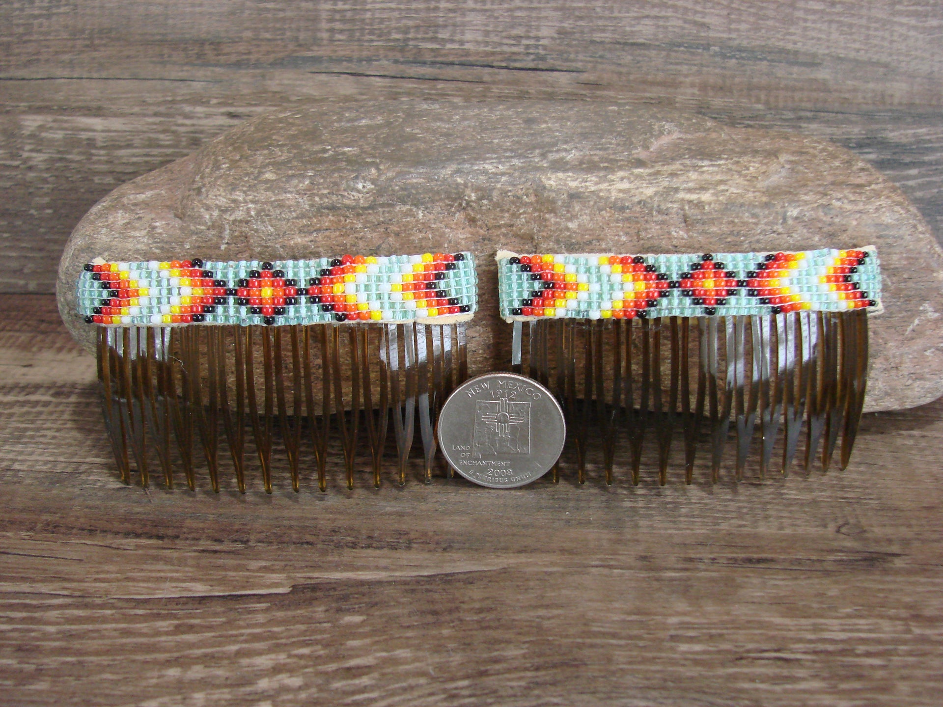 Navajo Indian Hand Beaded Hair Comb Set by Cleveland