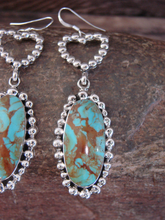 Native American Sterling Silver Turquoise Heart Dangle Earrings by Delgarito