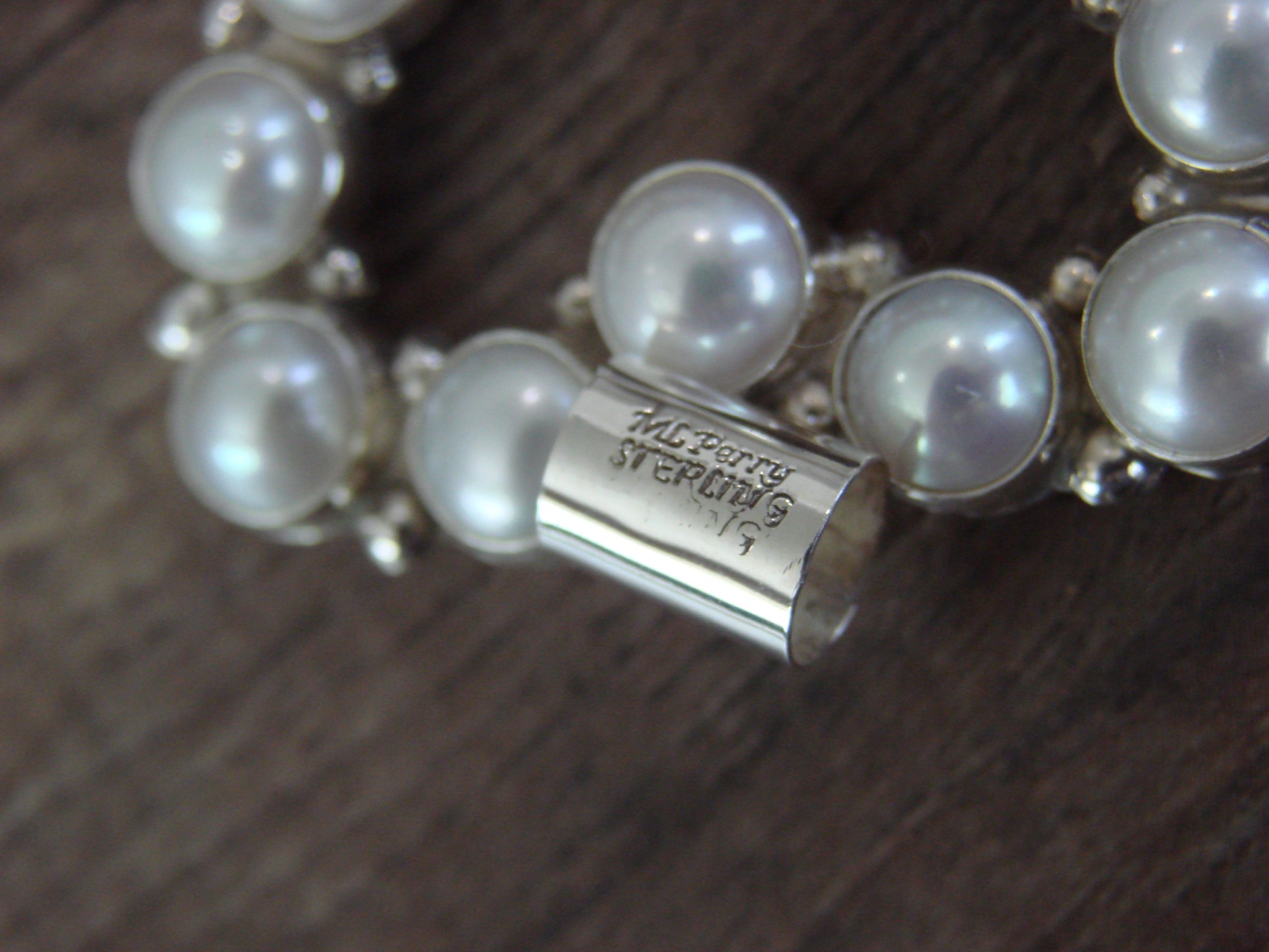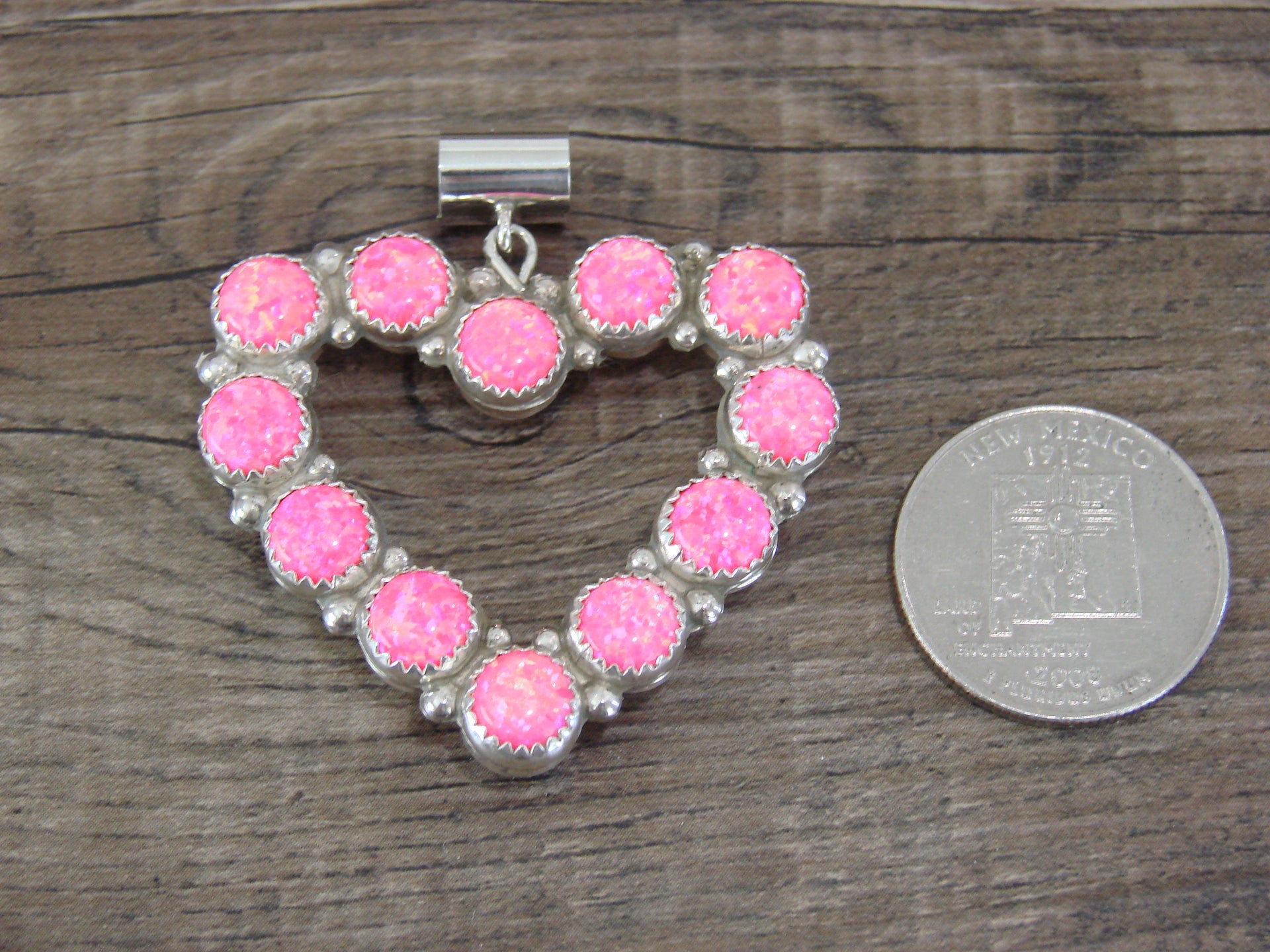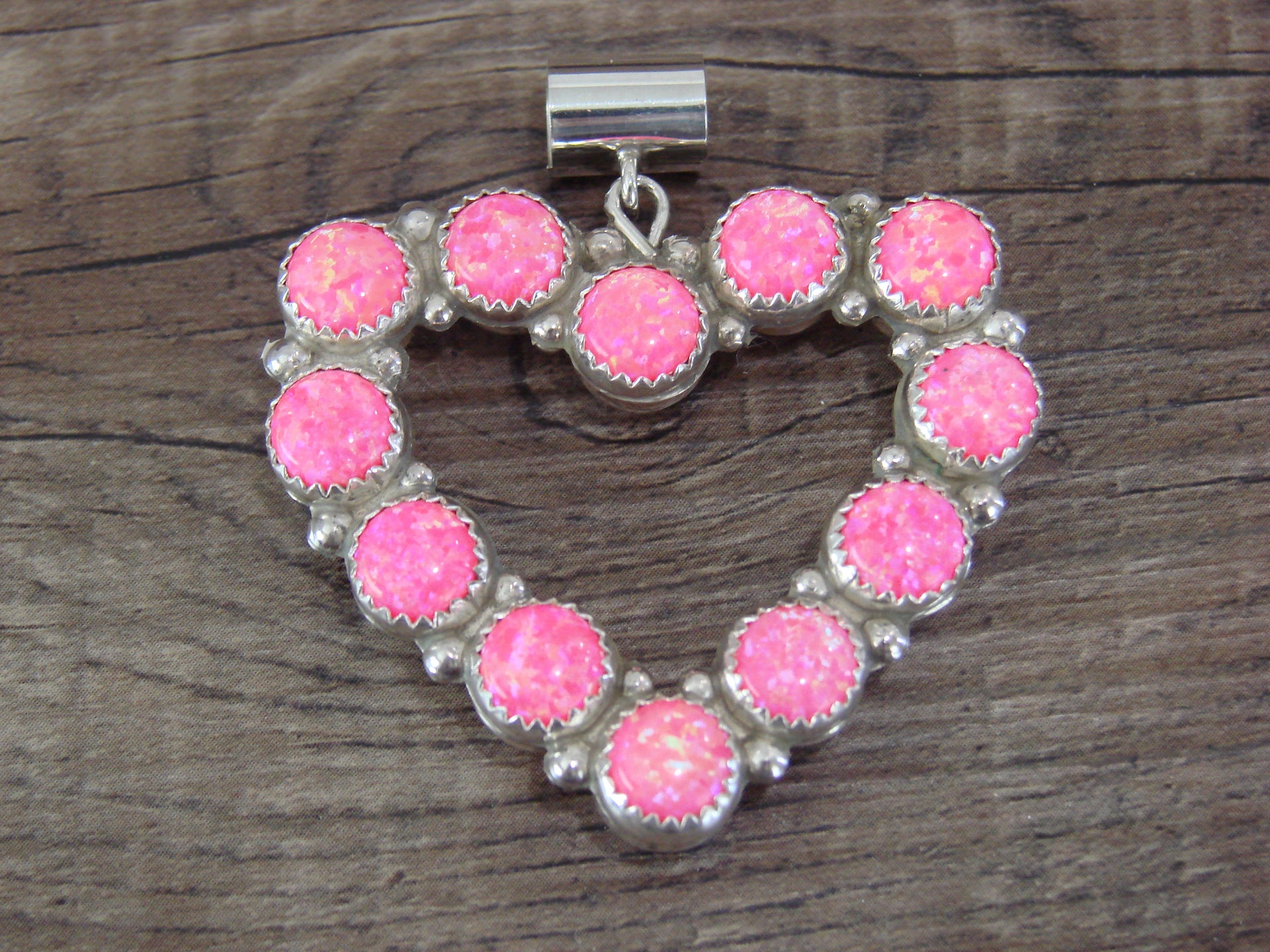 Navajo Indian Sterling Silver Pearl & Pink Opal Reversible Heart Pendant from Western New Mexico. This beautiful Heart features Twelve Pearls on one side and Twelve Pink Opal stones on the other. The Stones are surrounded by details in Sterling and have a stunning look! Navajo Indian handmade by Martin Perry. Signed on the top Bail. Free gift box and shipping included!