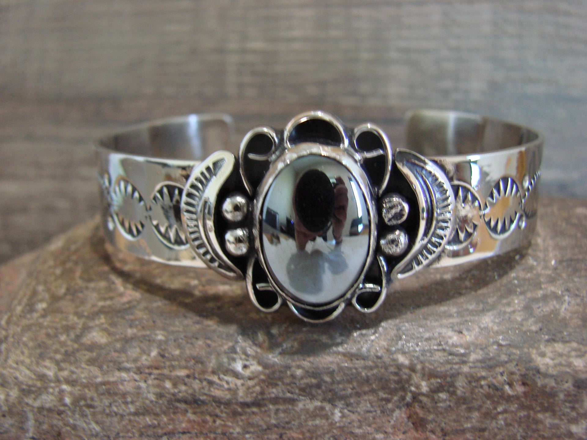 Navajo Indian Nickel Silver & Hematite Bracelet by Cleveland