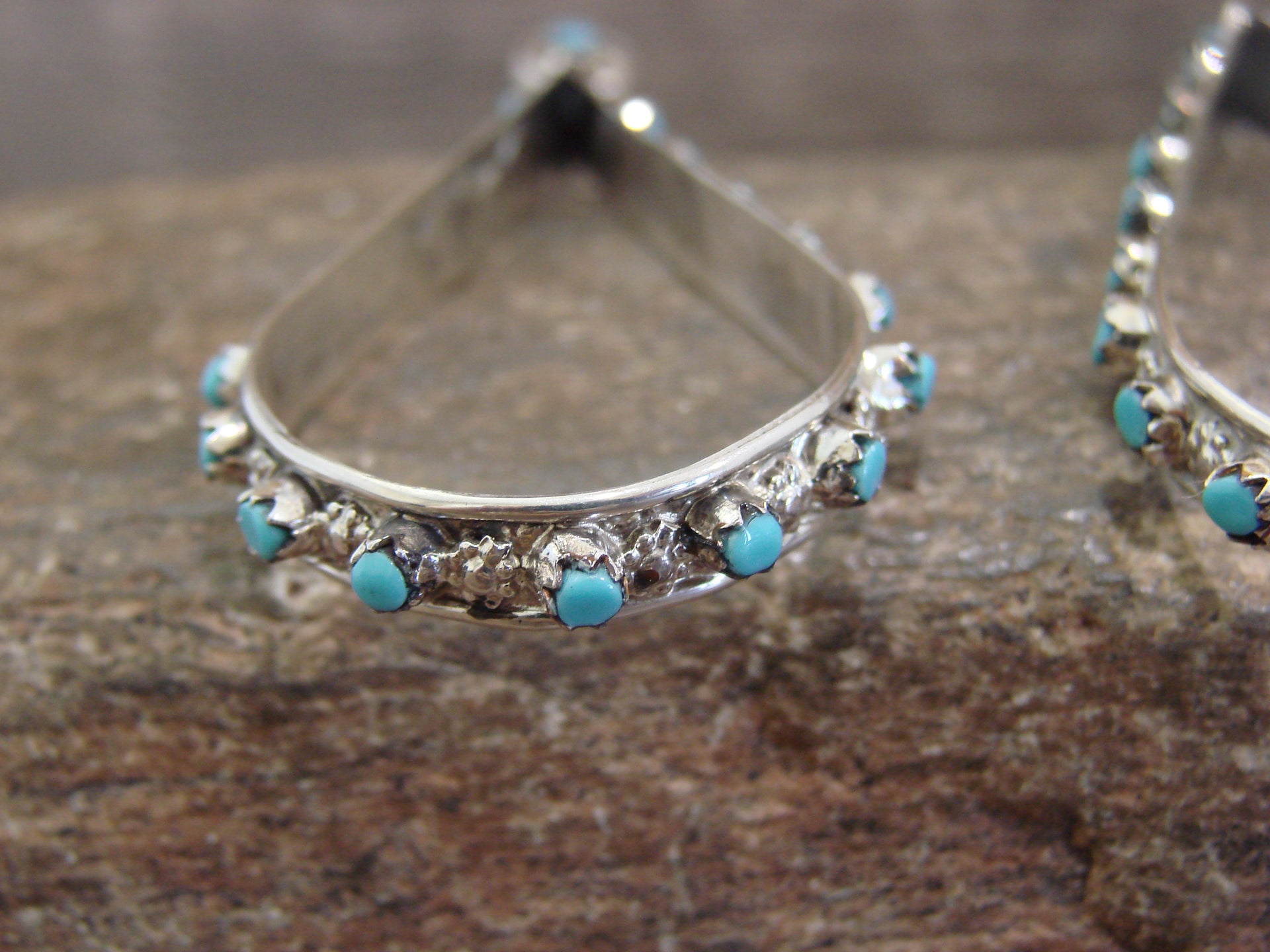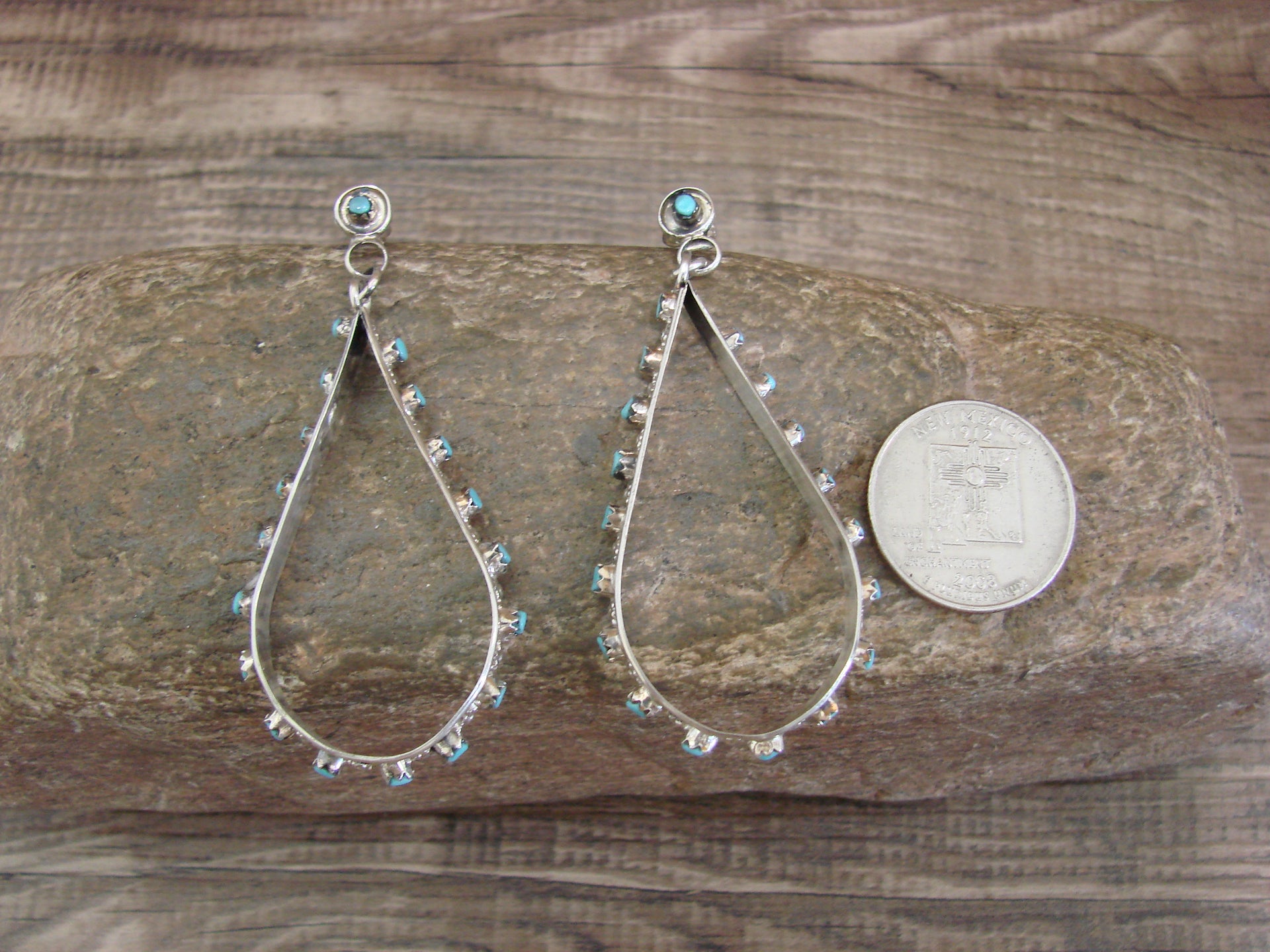 Genuine Native American Zuni Indian Sterling Silver & Turquoise Post Dangle Earrings from Western New Mexico. These post style earrings feature genuine Turquoise stones beautifully set into shadowbox crown sterling silver bezel settings. Beautiful details in Sterling Silver surround the stones. This is a Stunning pair of earrings! Zuni Indian handmade to Perfection by Marlon Quam. Unsigned. Free shipping with a gift box included!