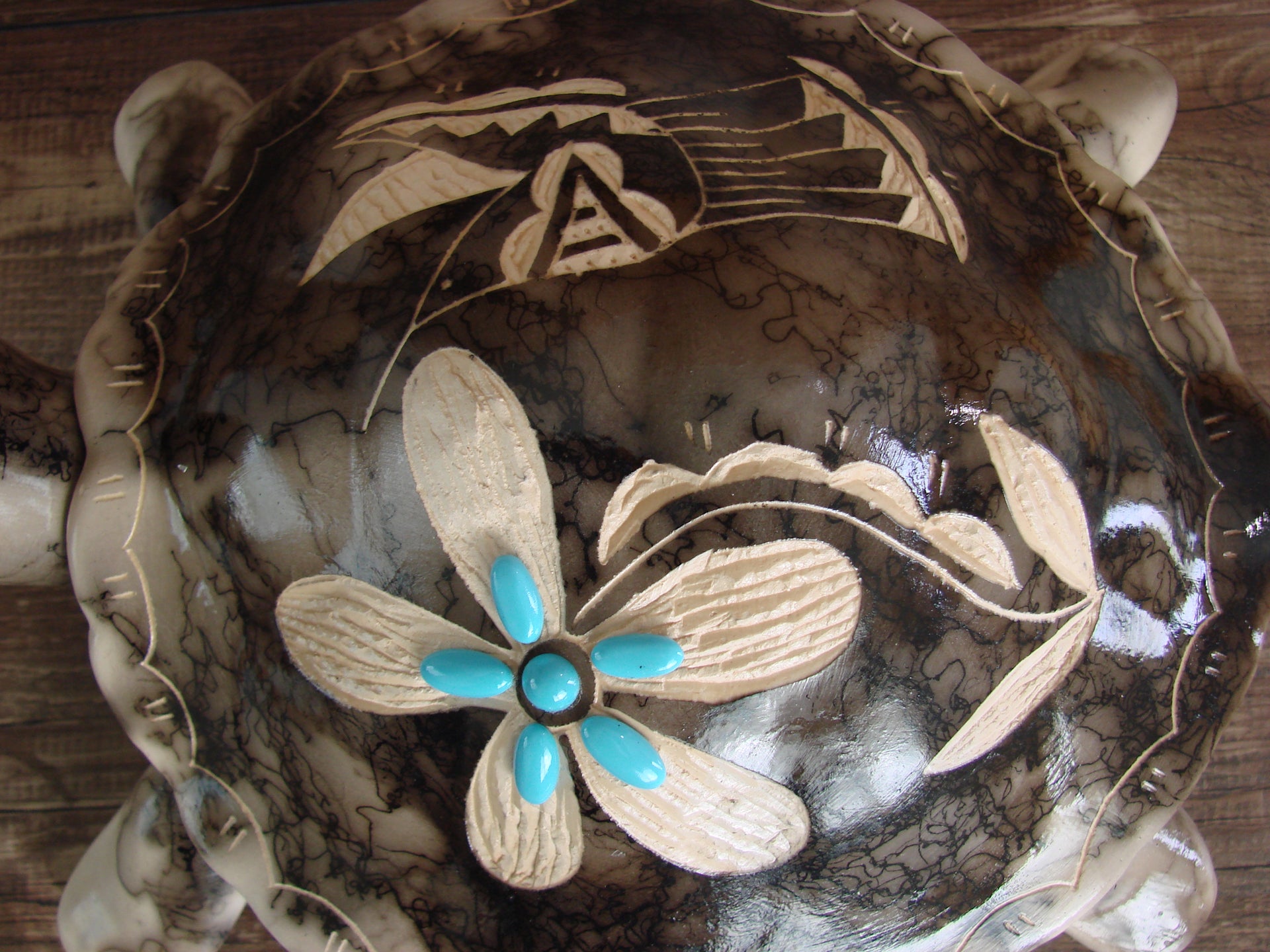 Large Navajo Pottery Horse Hair Turtle Jewelry Trinket Box by Vail