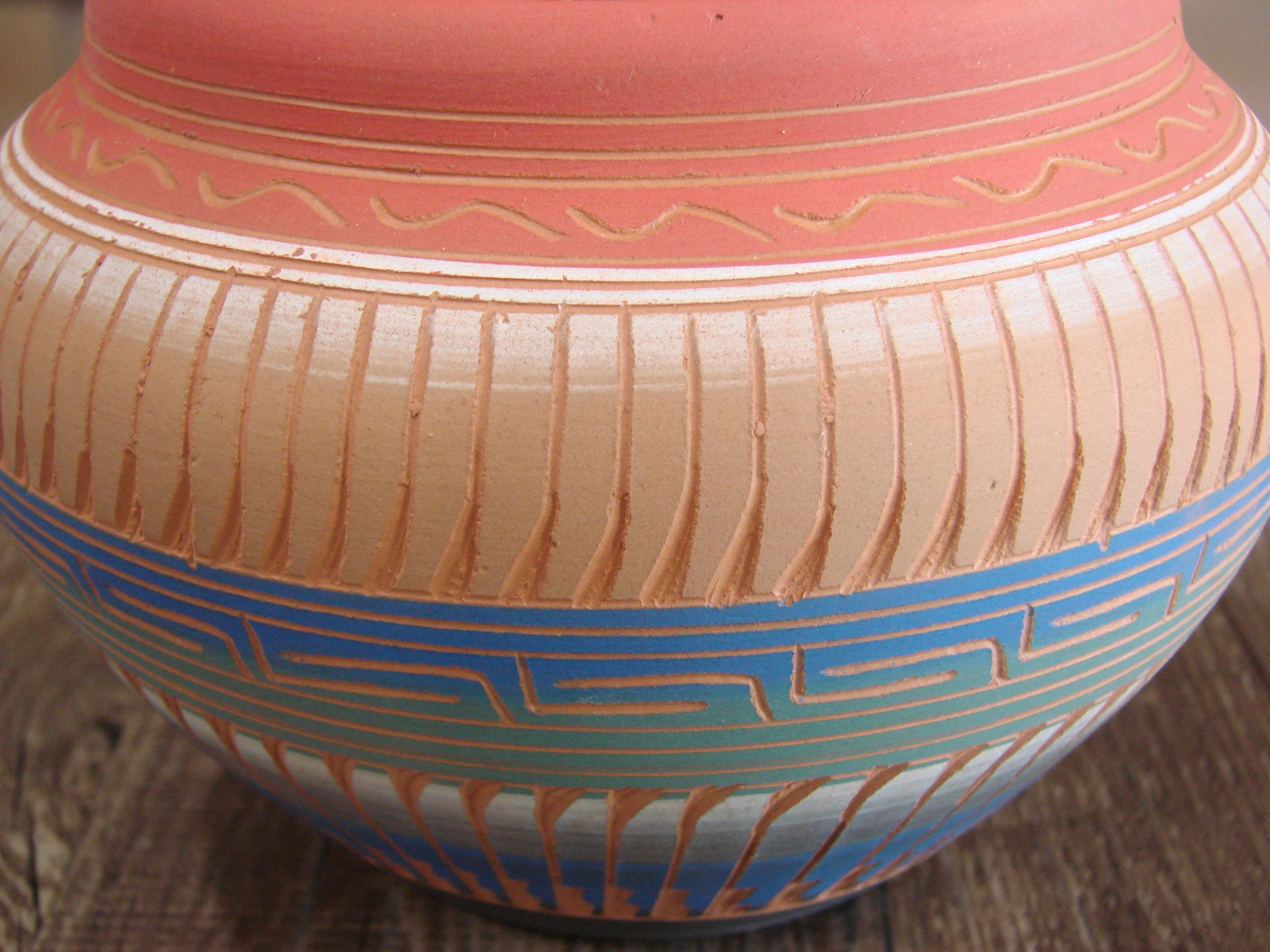 - Native American Navajo Indian Hand Etched & Hand Painted Pottery - M. Charlie