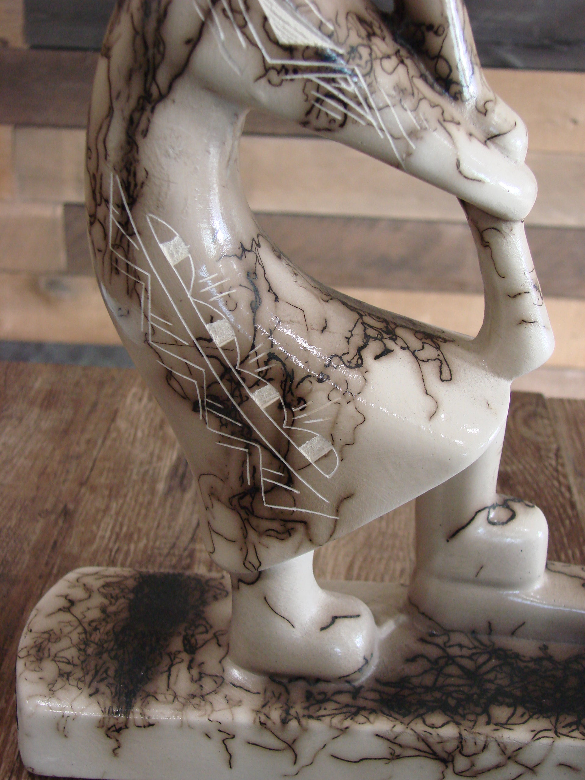 Native American Navajo Indian Horse Hair Kokopelli Sculpture from Western New Mexico. This Kokopelli sculpture features beautiful horse hair and hand etching throughout. The Horse hair is laid over this piece during firing, the result is a beautiful one of a kind look! Hand etched by Navajo artist Vail. Signed on the bottom. Free shipping included!
