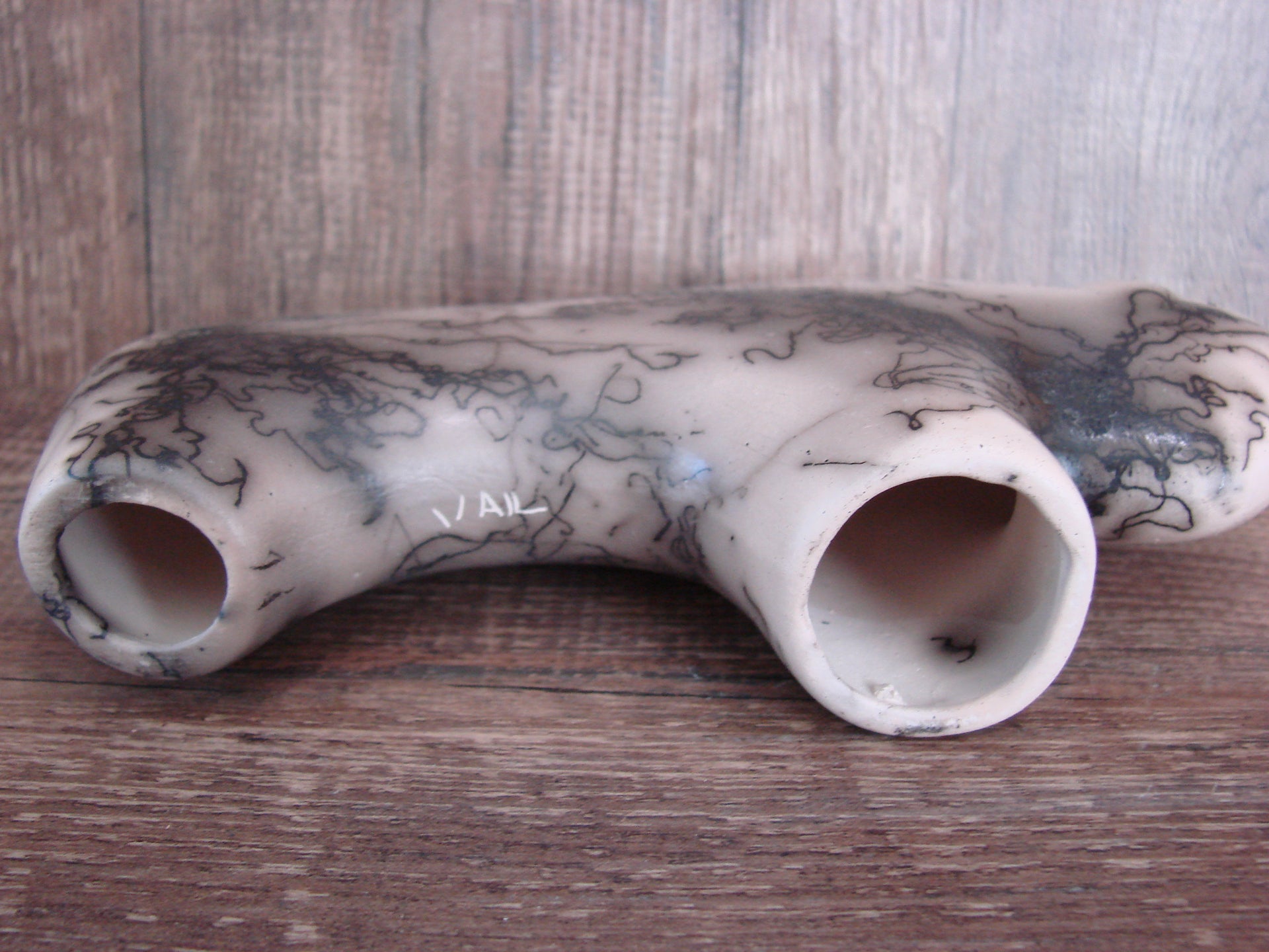 Native American Navajo Indian Horse Hair Buffalo Sculpture from Western New Mexico. This sculpture features beautiful horse hair and hand etching throughout. The Horse hair is laid over this piece during firing. The result is a unique one of a kind look. Hand etched by Navajo artist M Vail. Signed on the bottom. Free Shipping included!