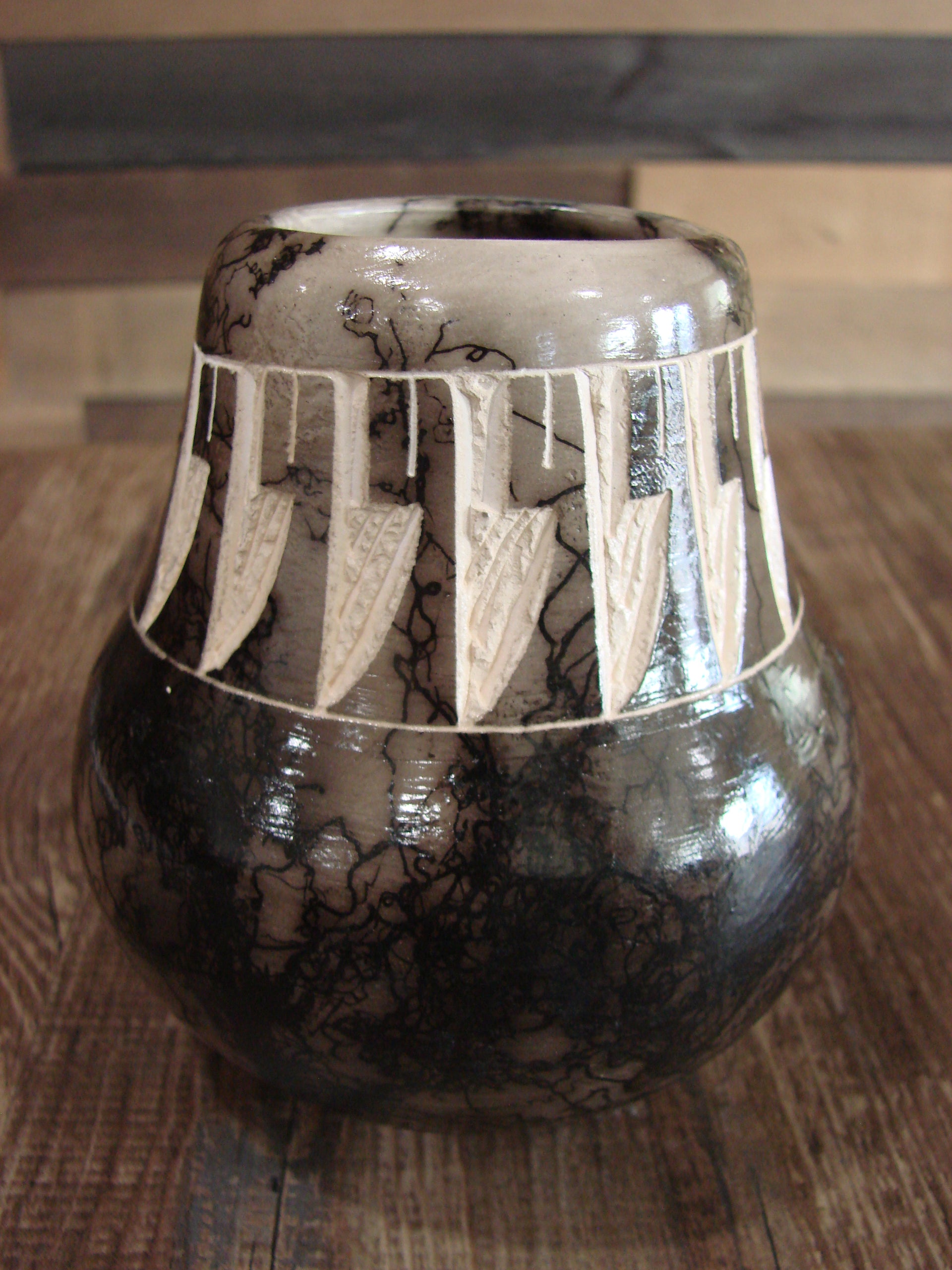 Small Native American Navajo Indian Horse Hair Pottery by Vail