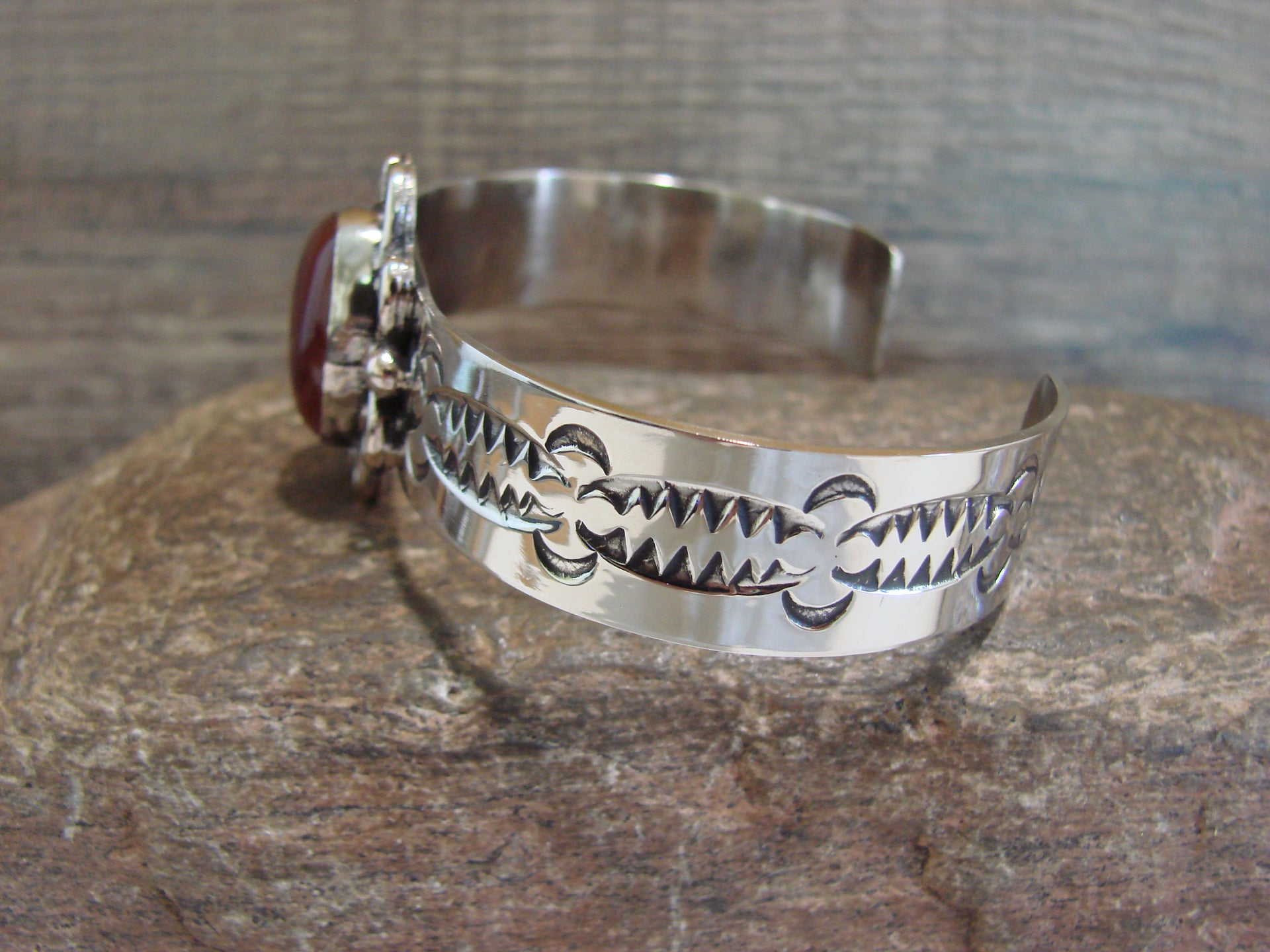 Navajo Indian Nickel Silver & Red Howlite Bracelet by Cleveland