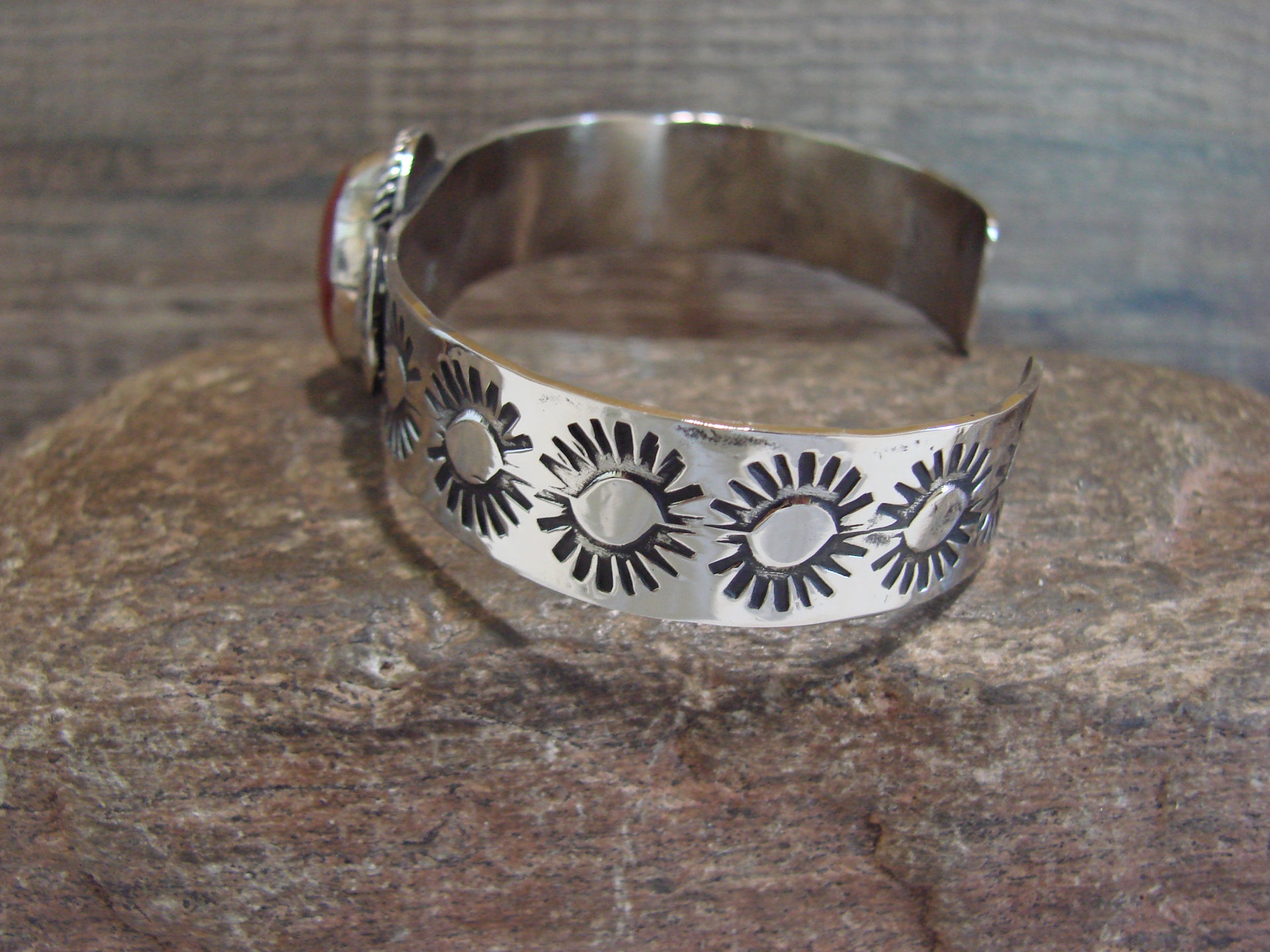 Navajo Indian Nickel Silver & Red Howlite Bracelet by Cleveland