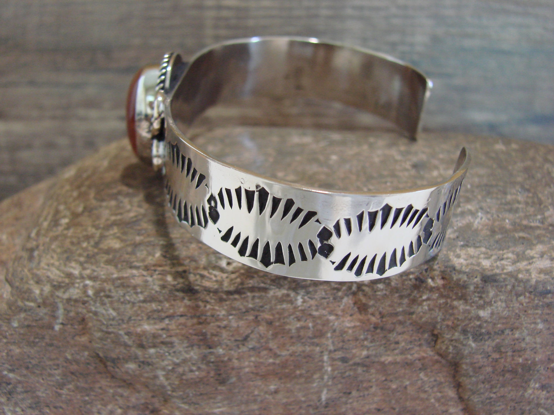 Navajo Indian Nickel Silver & Red Howlite Bracelet by Cleveland