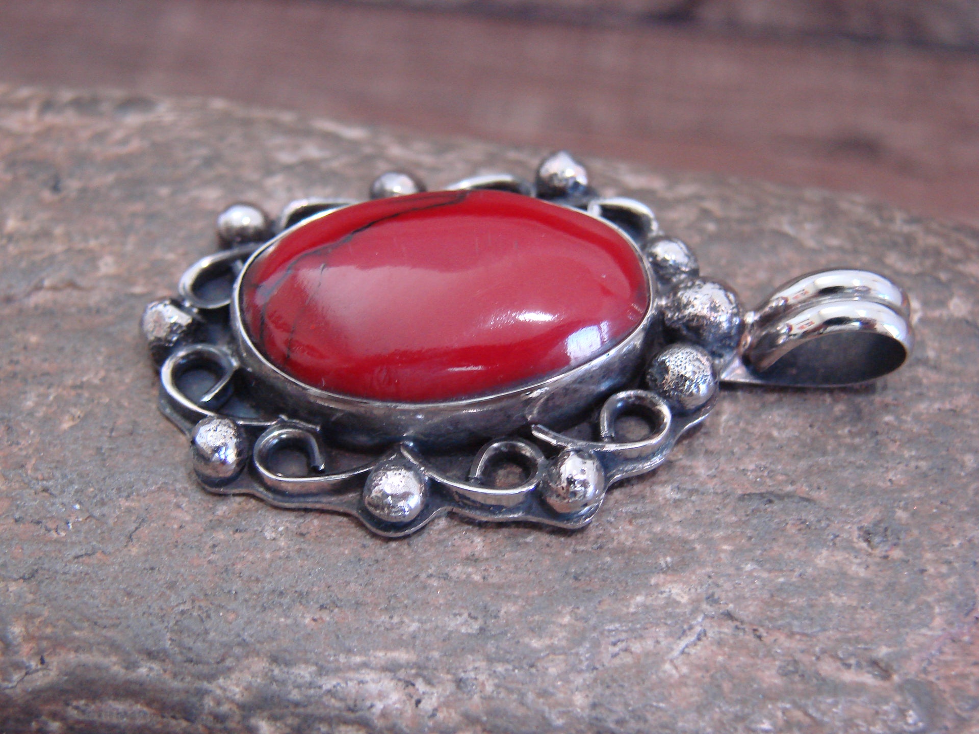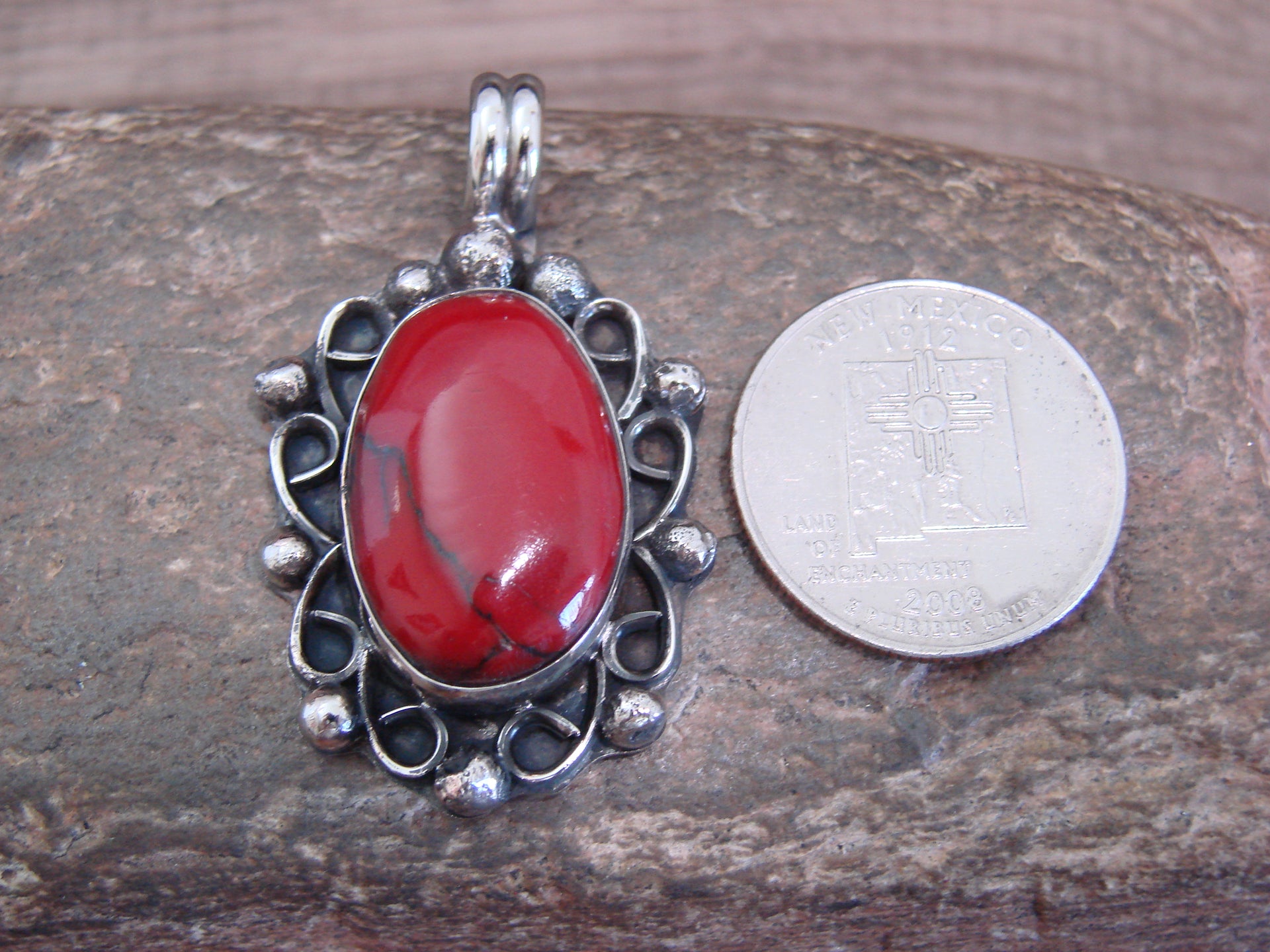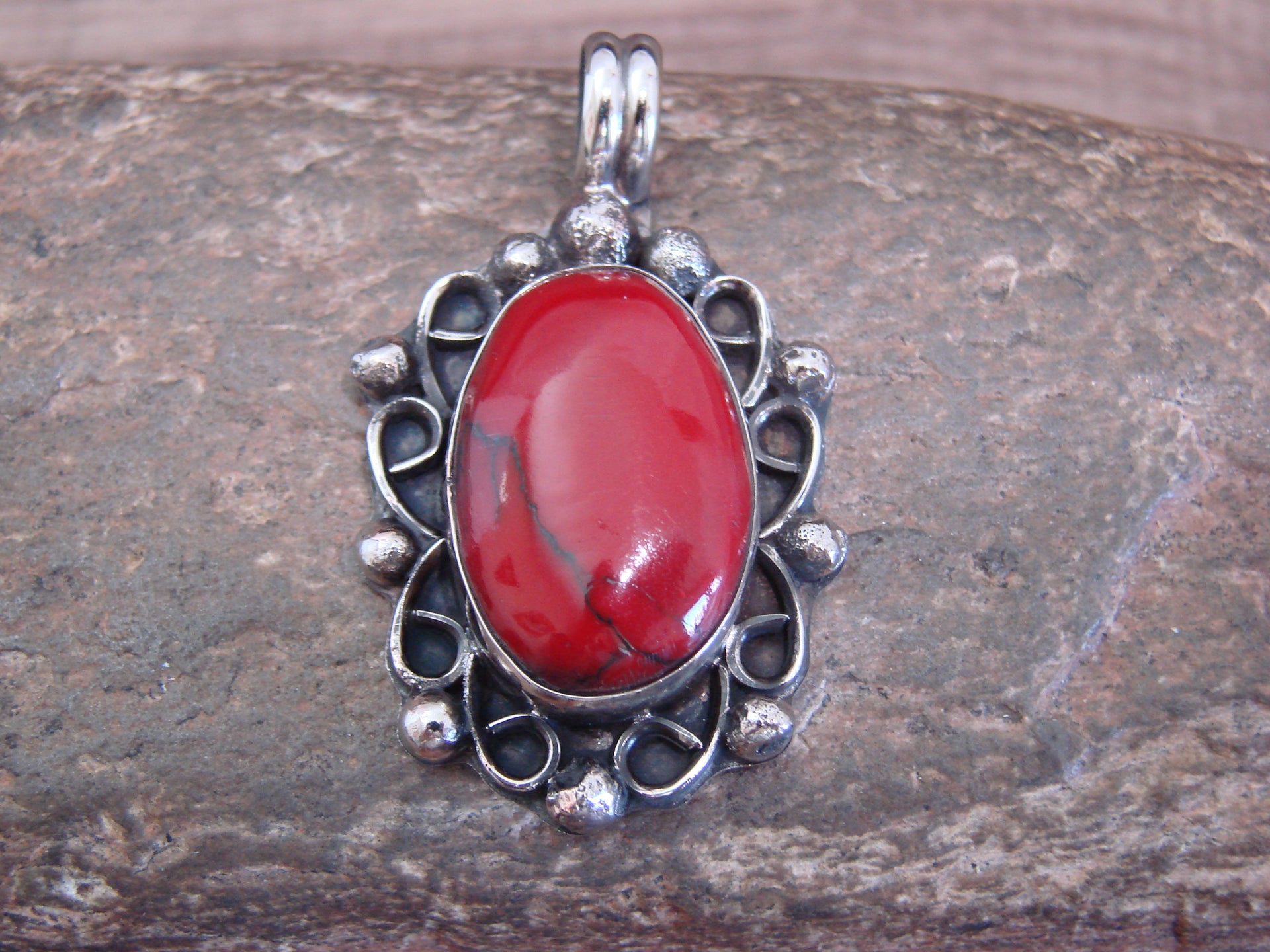 Native American Nickel Silver & Red Howlite Pendant - Cleveland