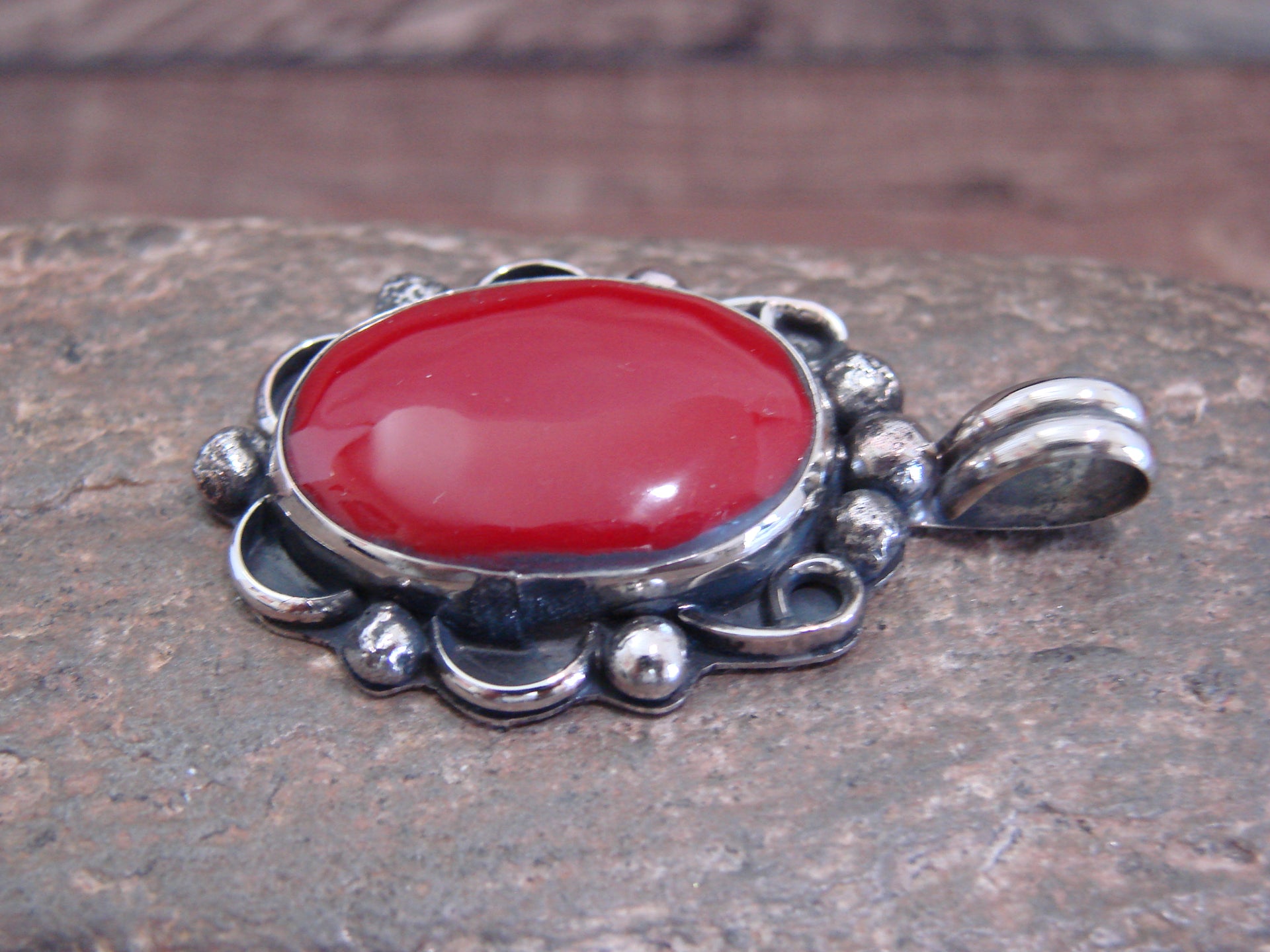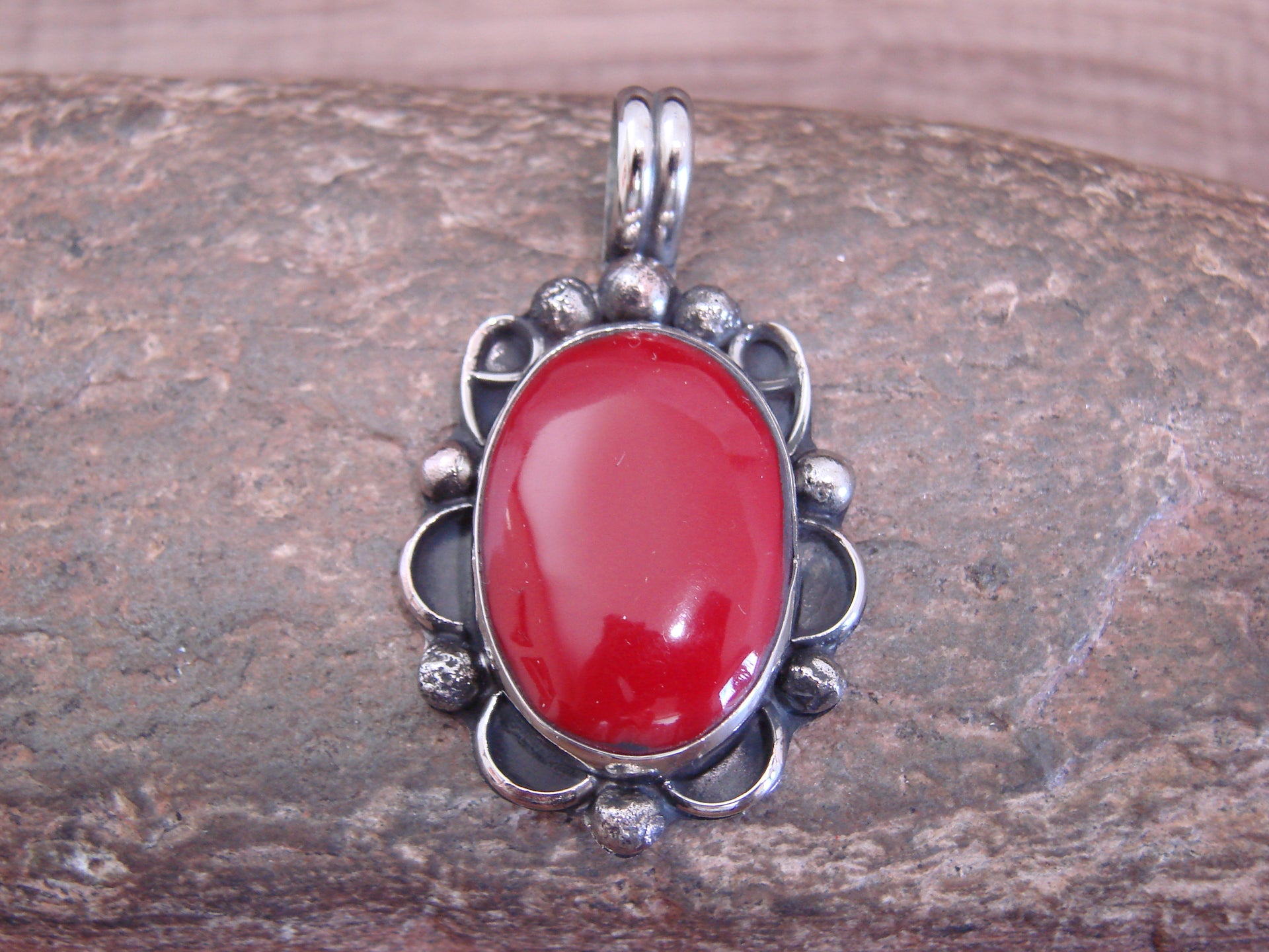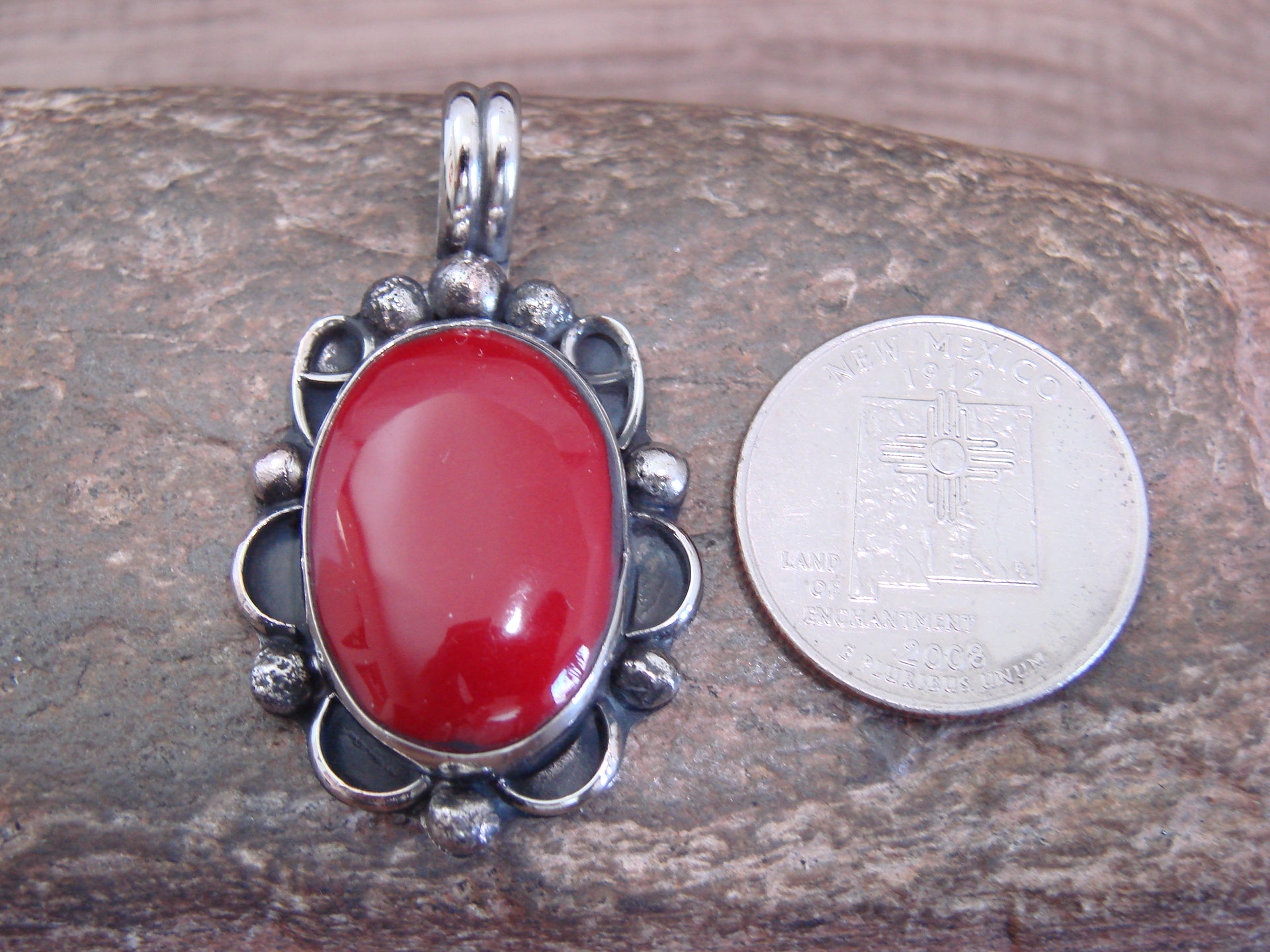 Native American Nickel Silver & Red Howlite Pendant - Cleveland
