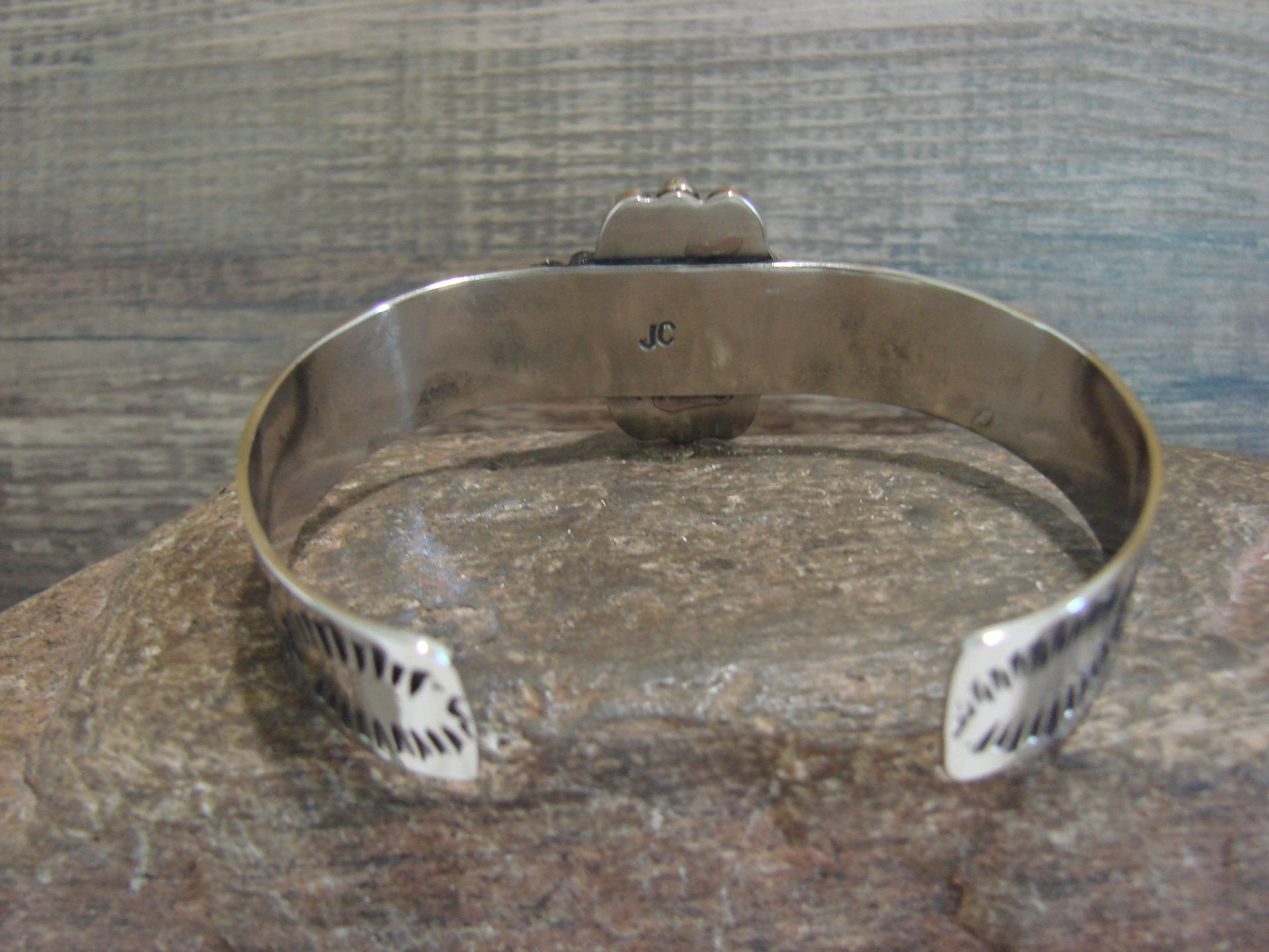 Measurements - 1" Tallest point, 1/2" Cuff, 6" Inside Circumference + 1 1/4" Opening, 7 1/4" Wrist