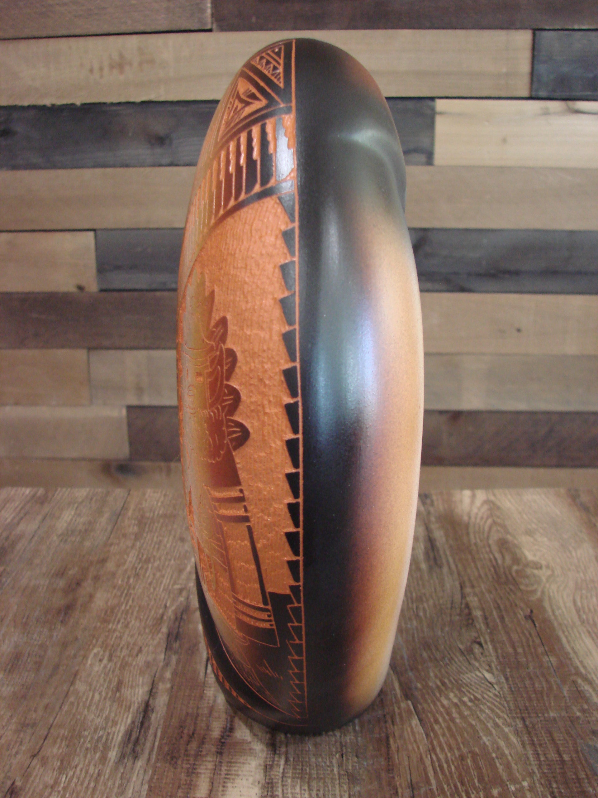 Genuine Native American Laguna Pueblo Indian Hand Etched and Painted Pot from Western New Mexico. This stunning piece of pottery features beautifully hand painted and hand etched traditional Pueblo patterns throughout. This is a Gorgeous piece of Pottery! Hand etched and painted by Laguna Artist Diane Aragon. Signed on the bottom. Free shipping included!