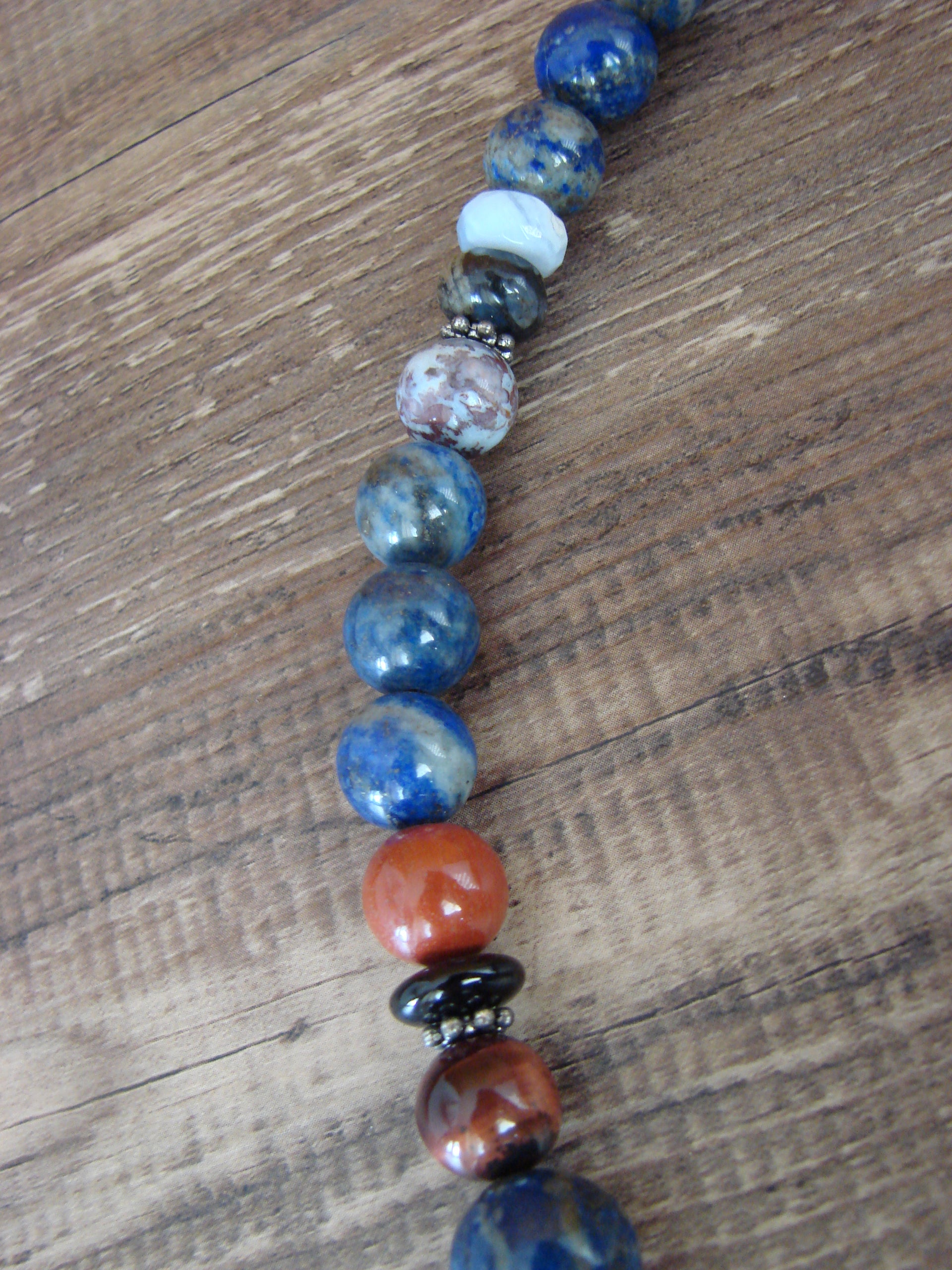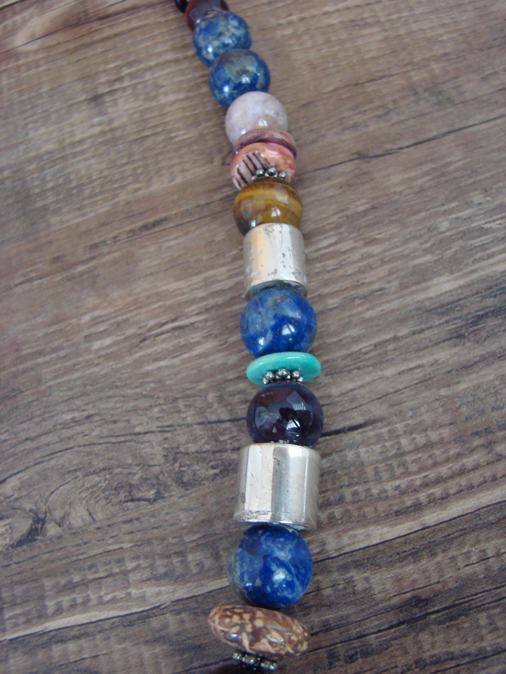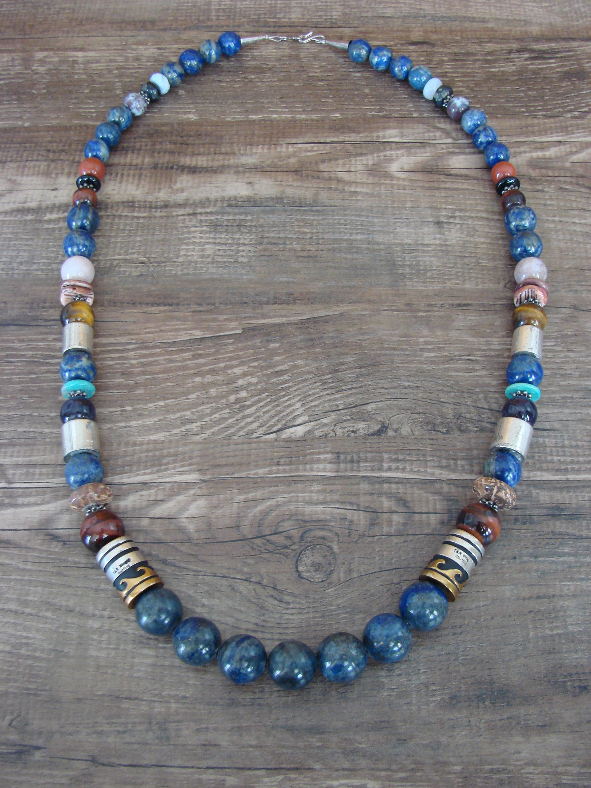 Genuine Native American Navajo Indian Lapis Gemstone Beaded Necklace from Western New Mexico. This Stunning necklace features Beautiful Lapis Stones accented with sterling silver and Multiple Gemstones. Finished with a sterling silver hook and eye closure this is a great necklace. These are high quality stones. This gorgeous piece is a handmade masterpiece! Hand strung by Rosita Singer, wife of the late Tommy Singer. This necklace is signed "T&R Singer Sterling". Free shipping in a gift box included!