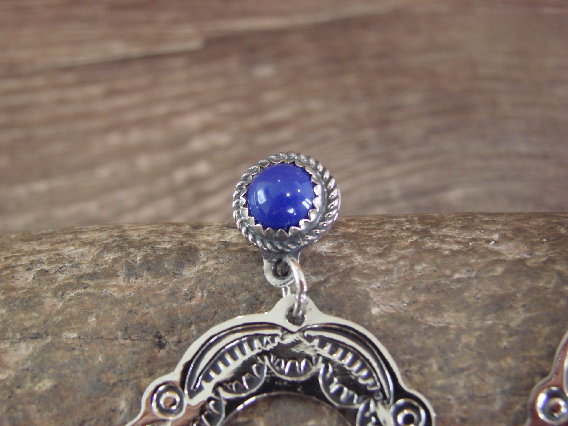 Navajo Indian Nickel Silver & Blue Lapis Dangle Post Earrings - Cleveland